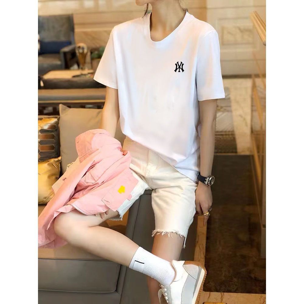Белая весенняя летняя хлопковая футболка с круглым воротником, короткий рукав, оверсайз