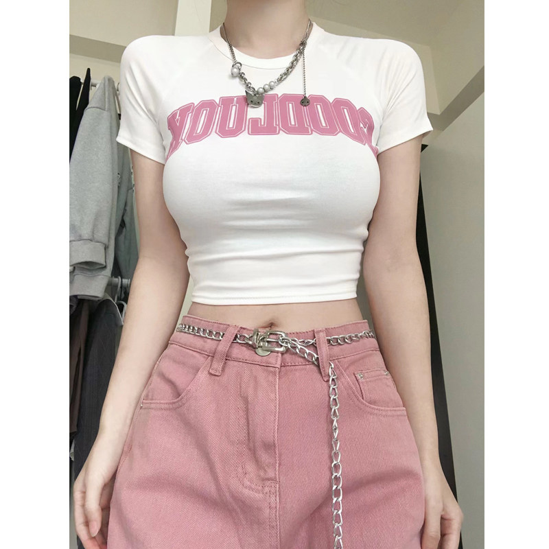 Белая летняя короткая футболка с коротким рукавом, облегающий крой