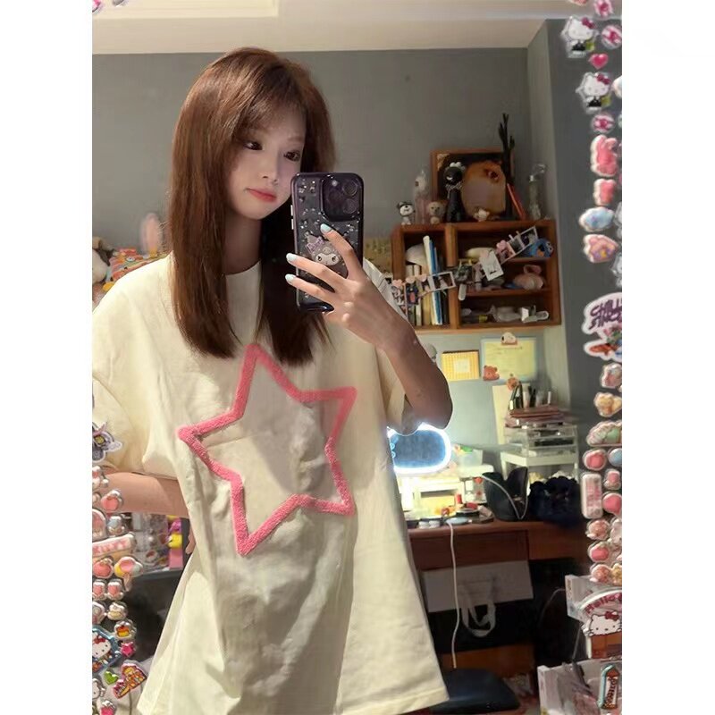 Ретро небольшая дизайнерская летняя футболка с коротким рукавом, в американском стиле, тренд сезона, оверсайз, этнический стиль