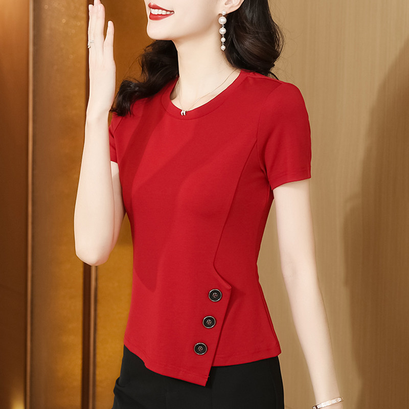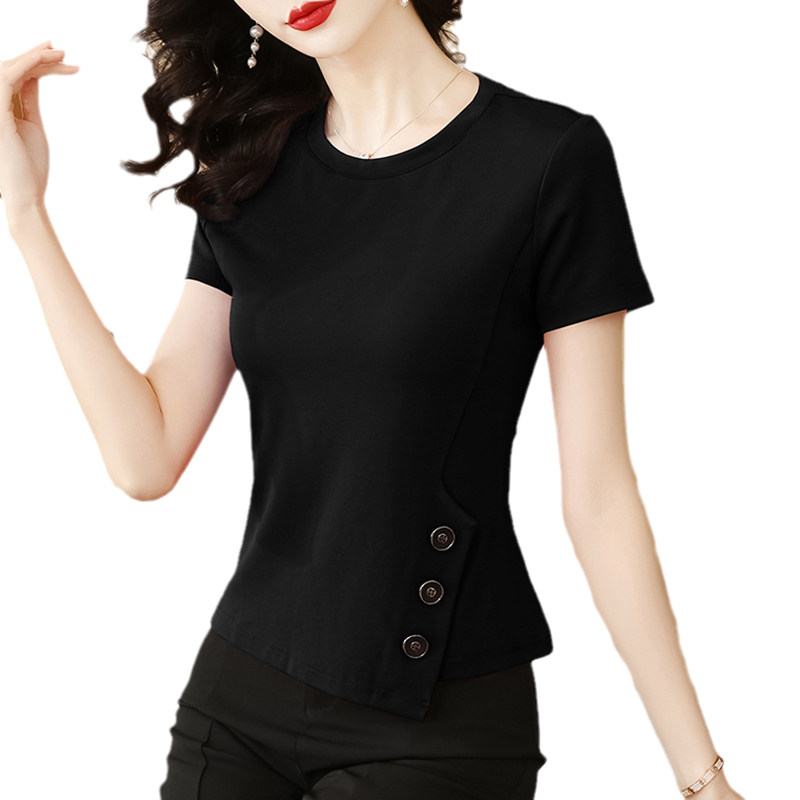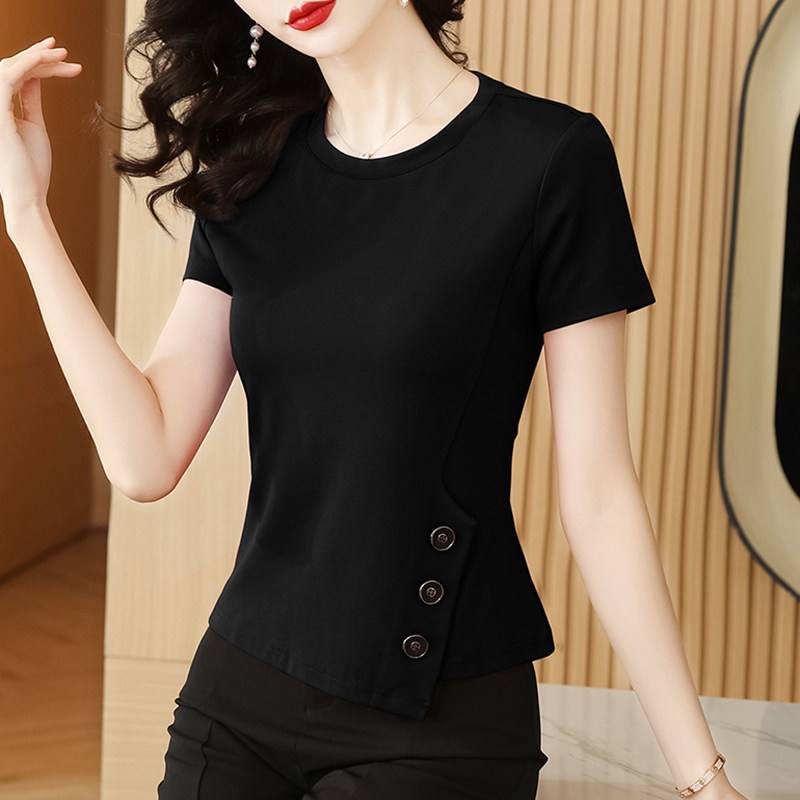 Хлопковая летняя осенняя футболка, короткий рукав, 2025 года, в западном стиле, облегающий крой