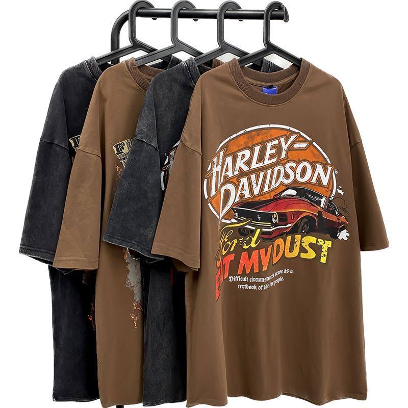 Хлопковая модная большая футболка с коротким рукавом подходит для мужчин и женщин в стиле хип-хоп, США