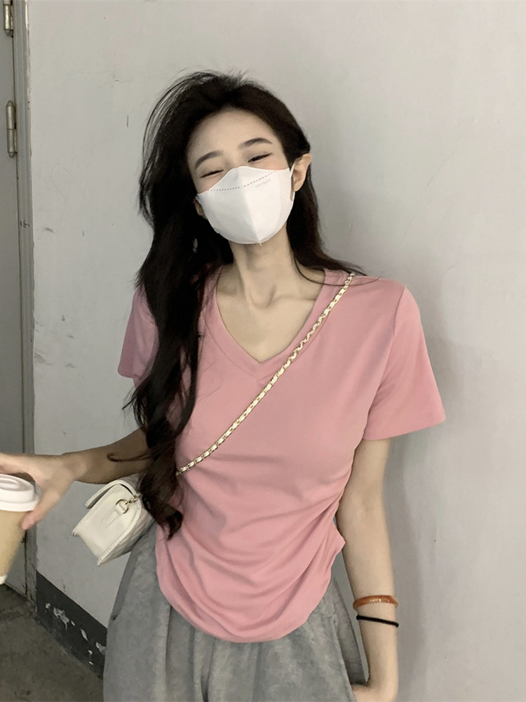 Летняя короткая розовая сексуальная футболка с коротким рукавом, по фигуре, изысканный стиль