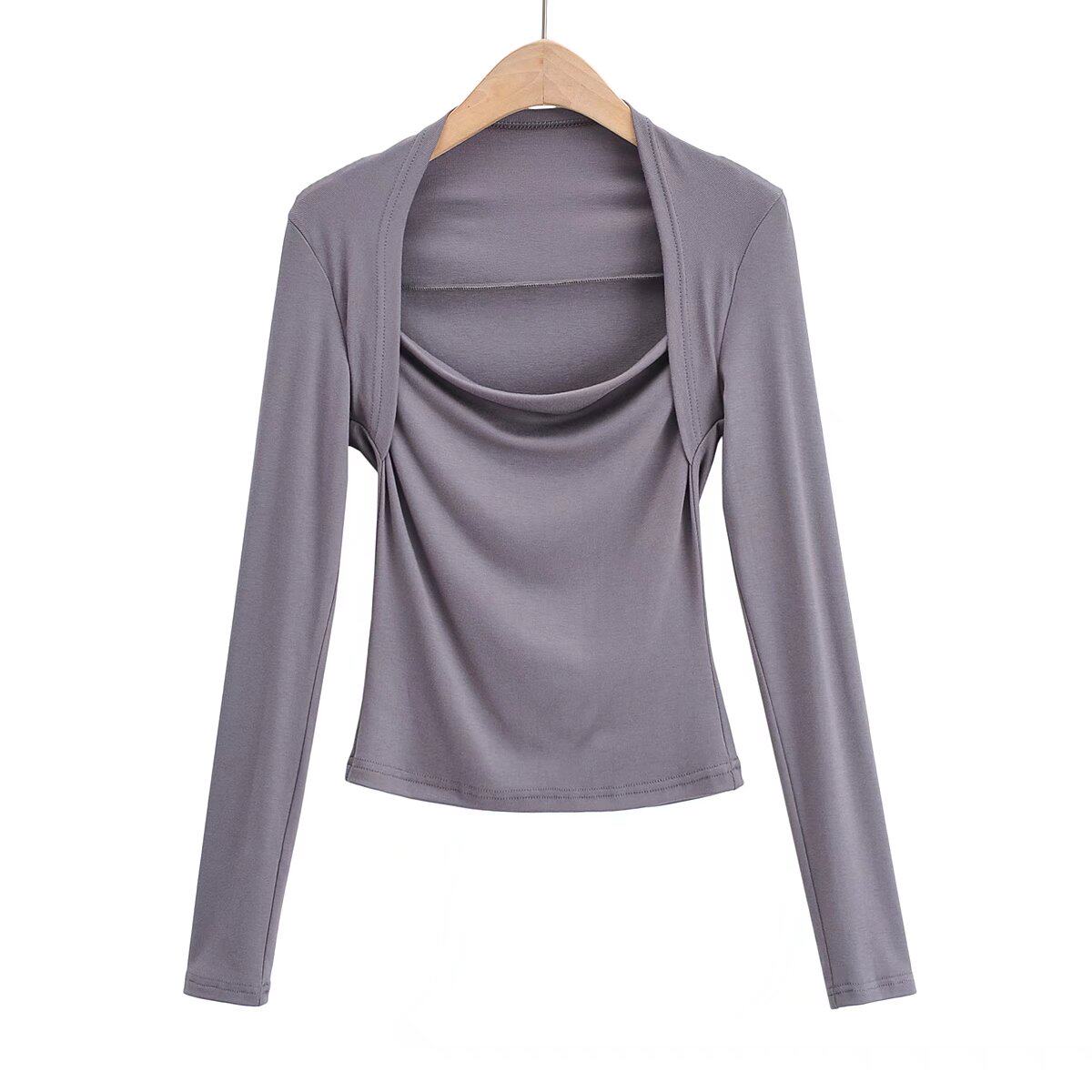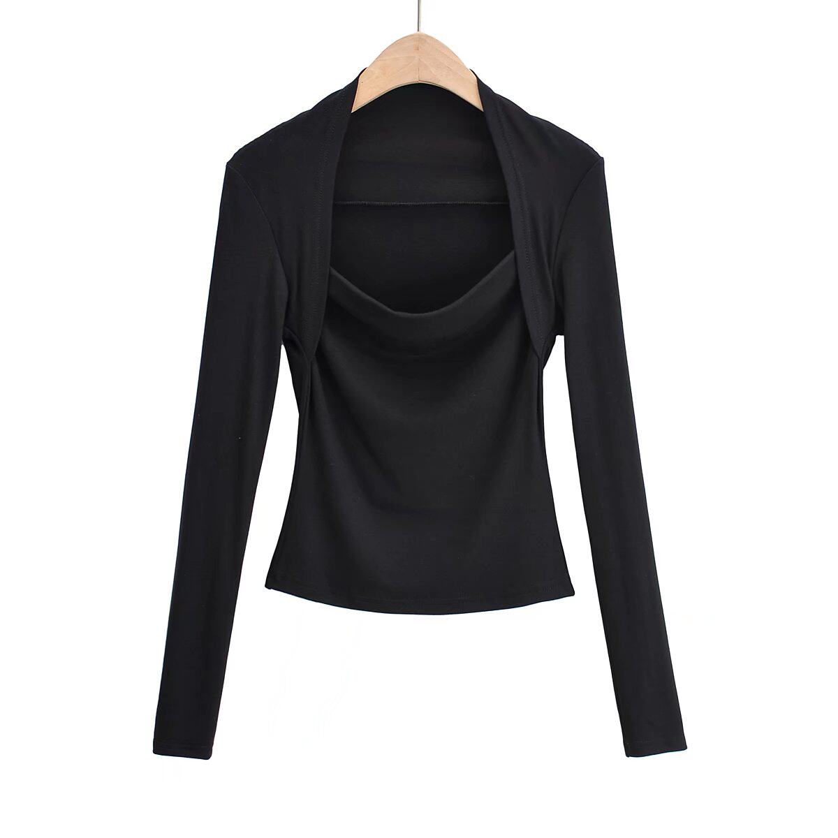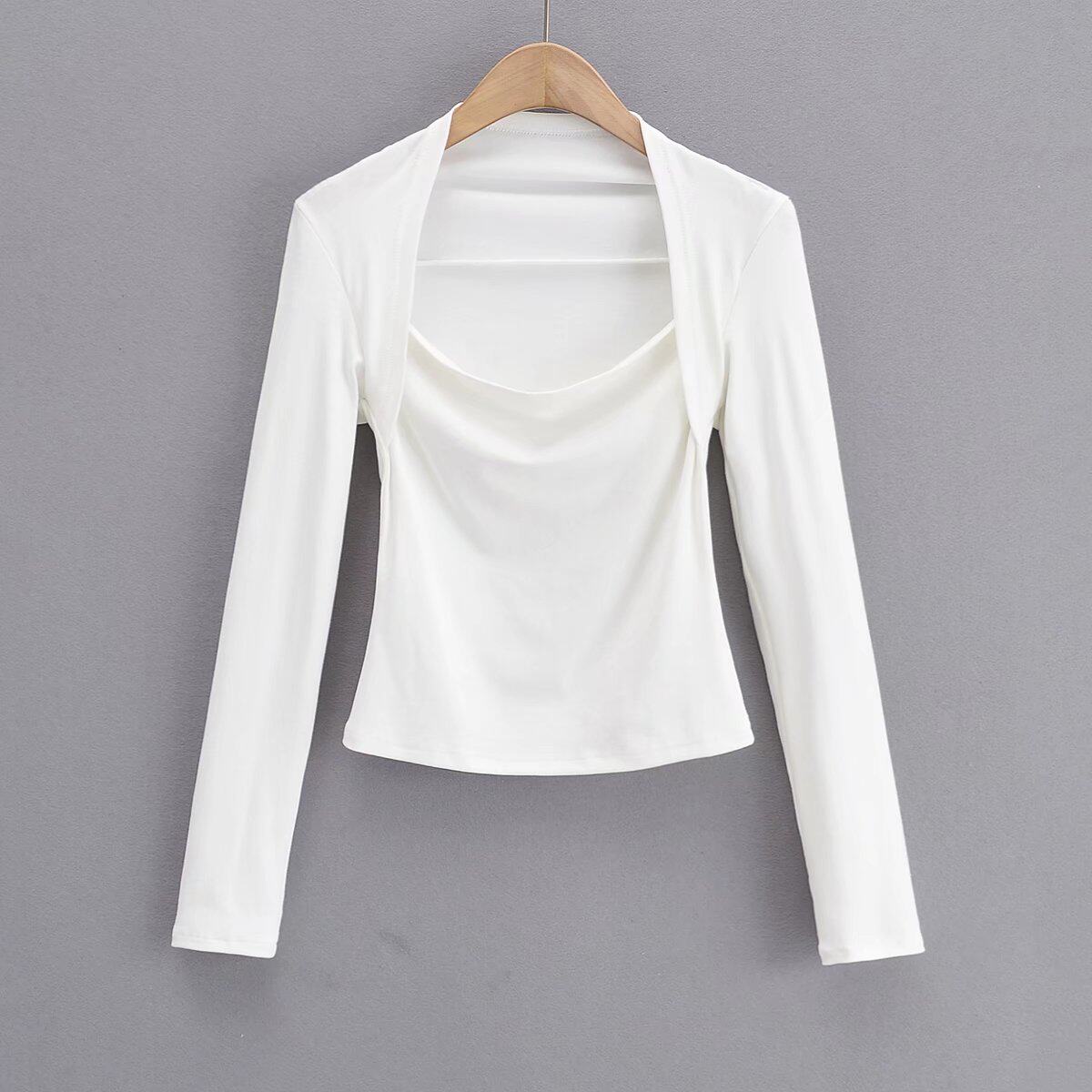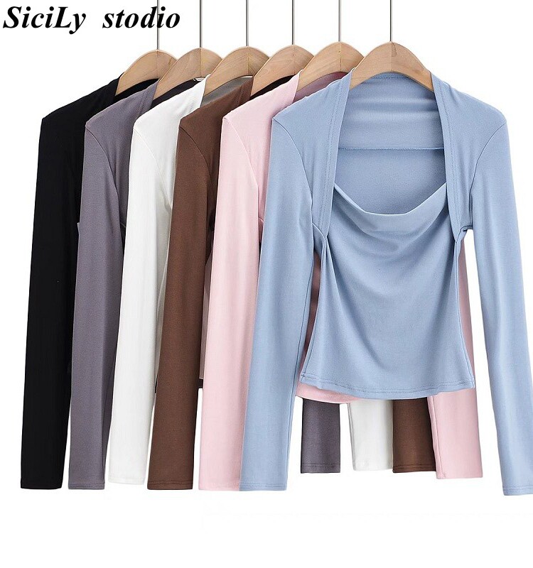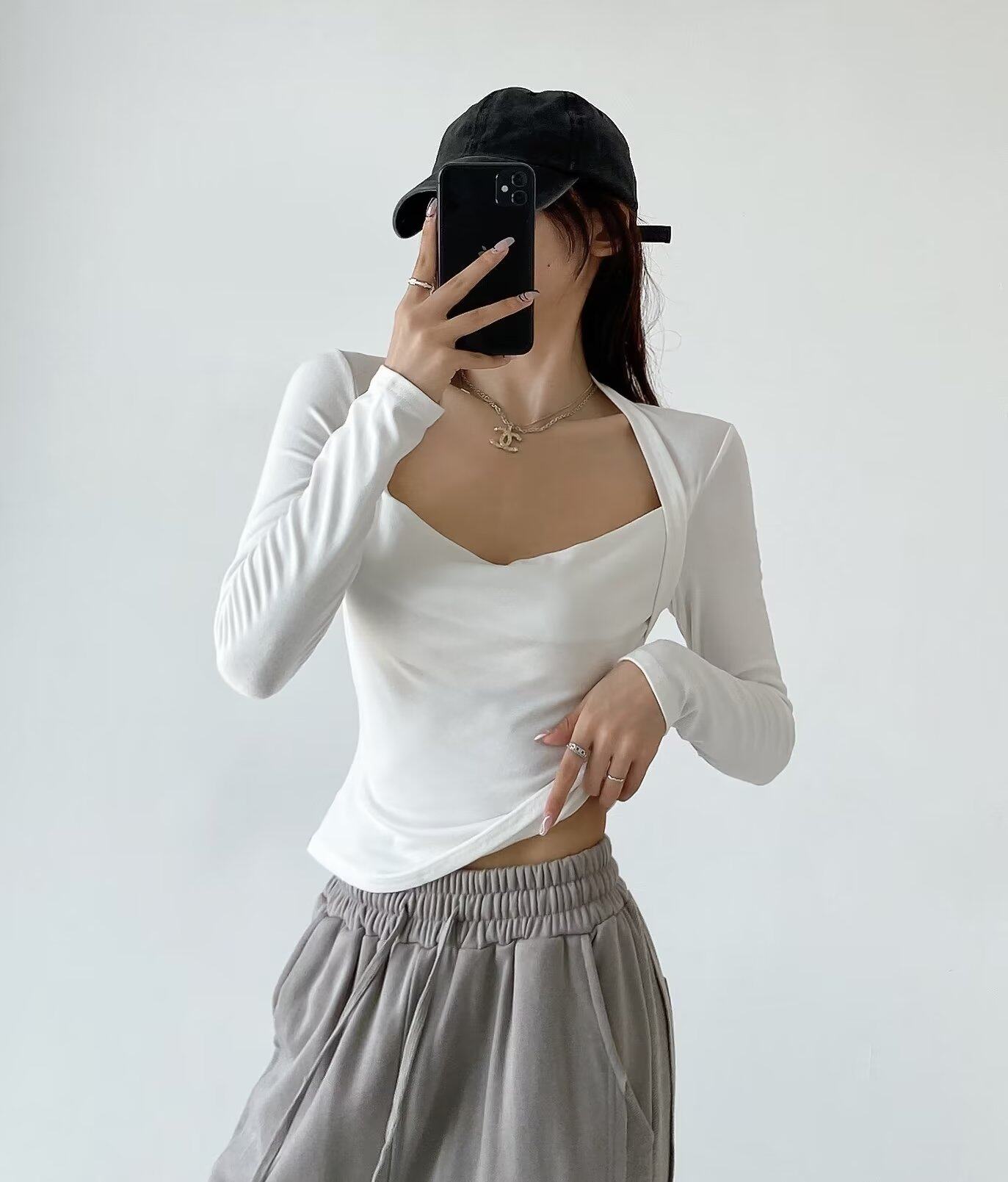 Модный лонгслив, наклейки, европейский стиль, облегающий крой, в западном стиле
