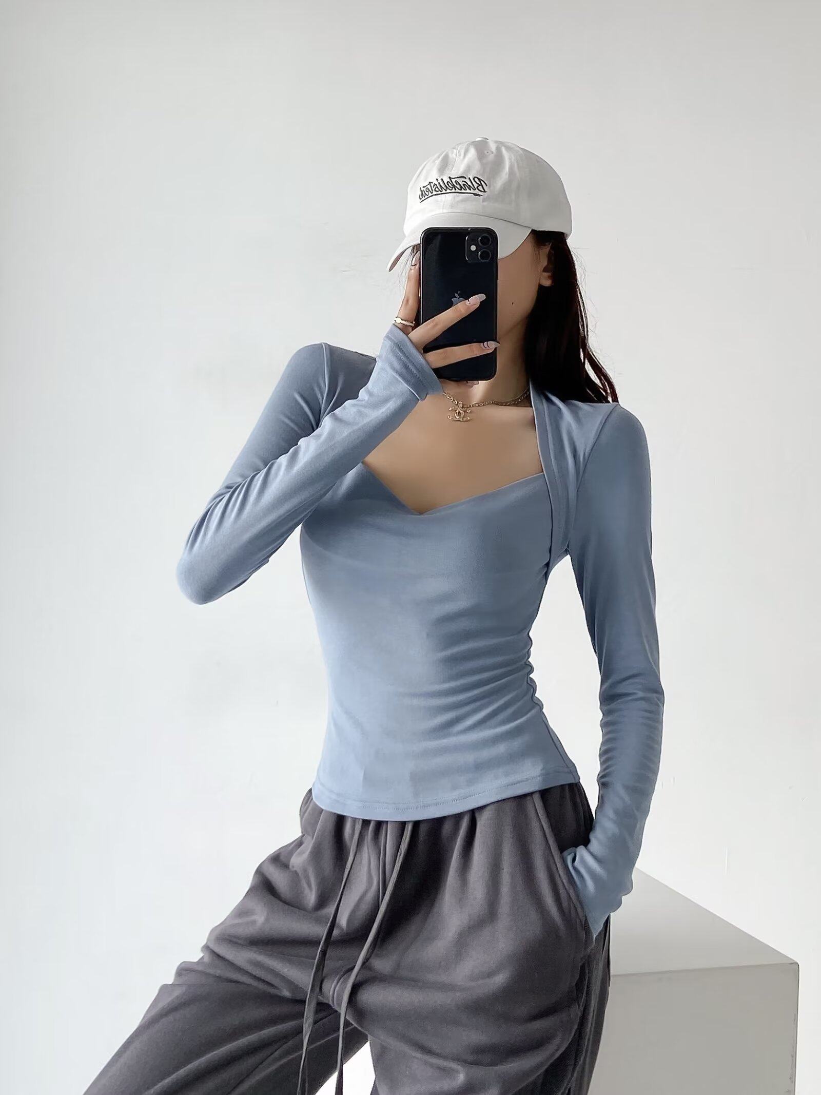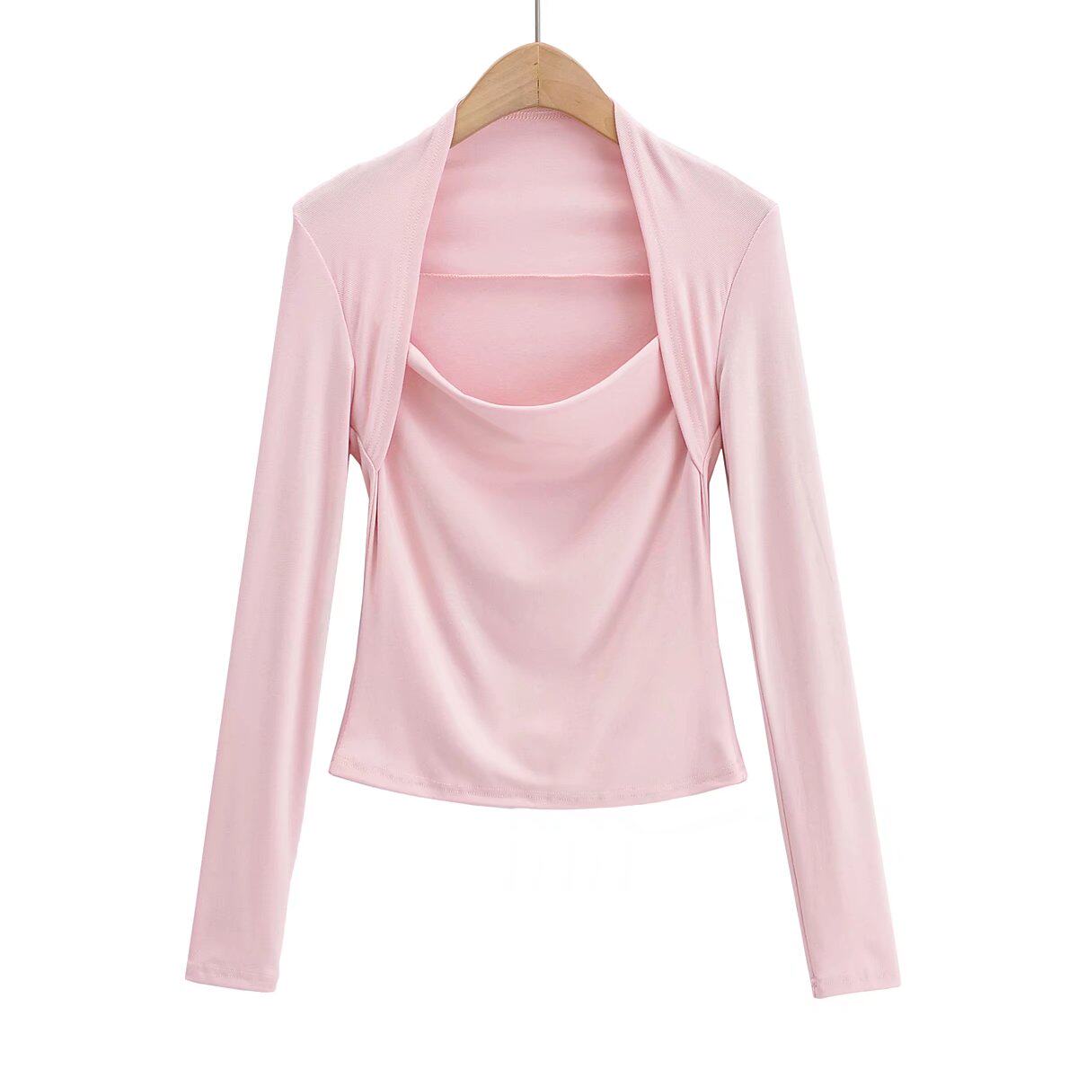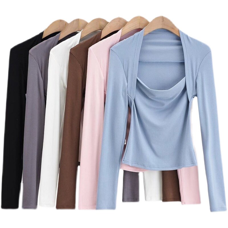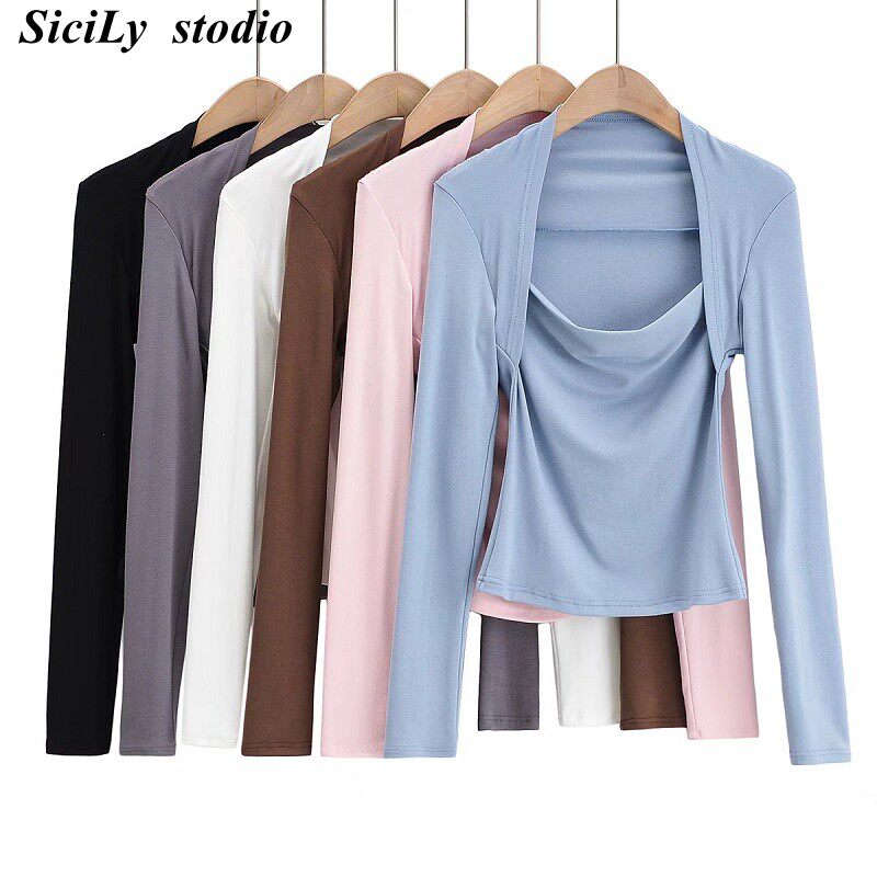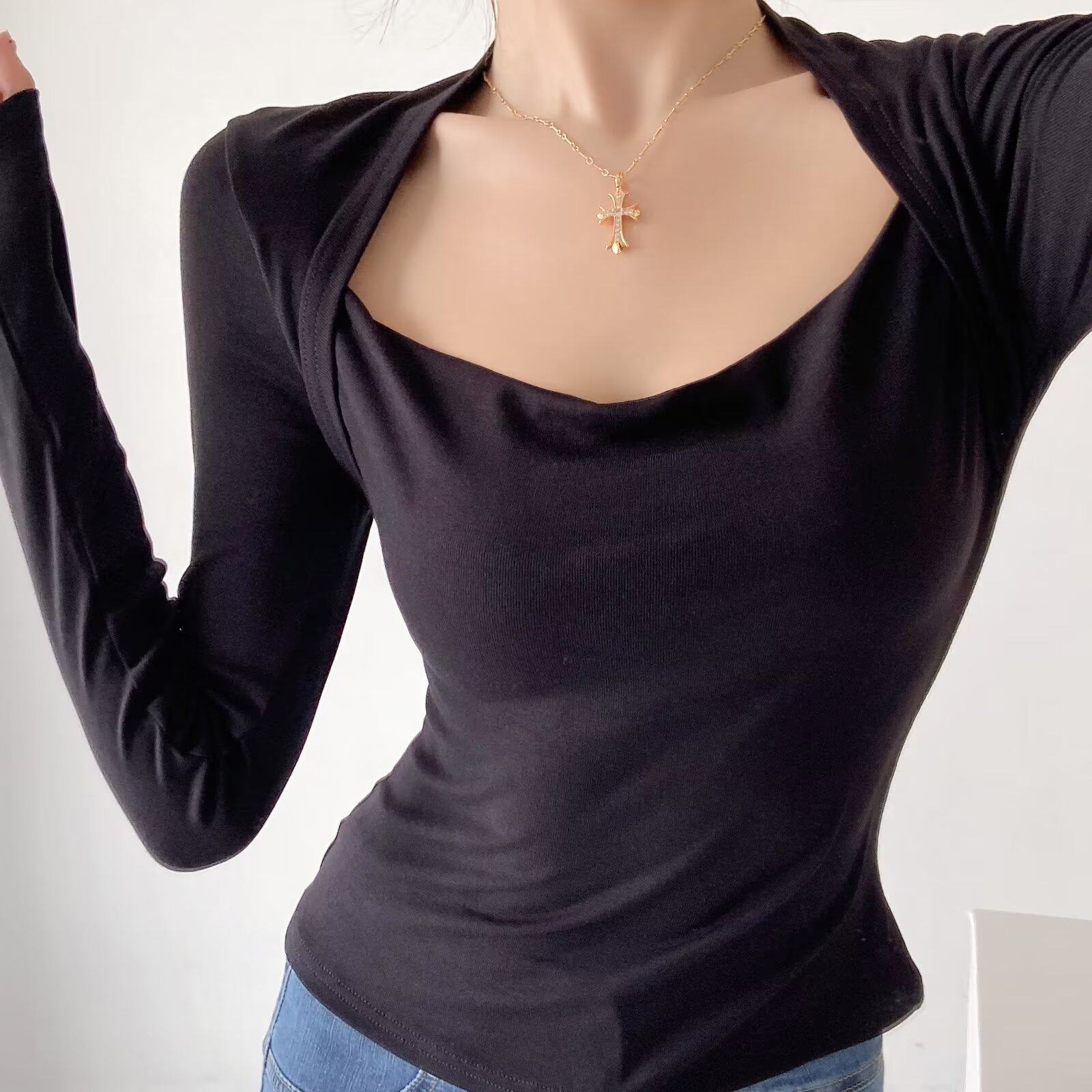Модный лонгслив, наклейки, европейский стиль, облегающий крой, в западном стиле