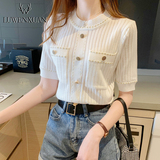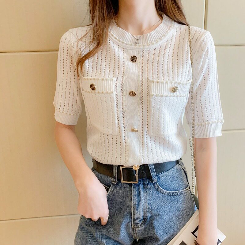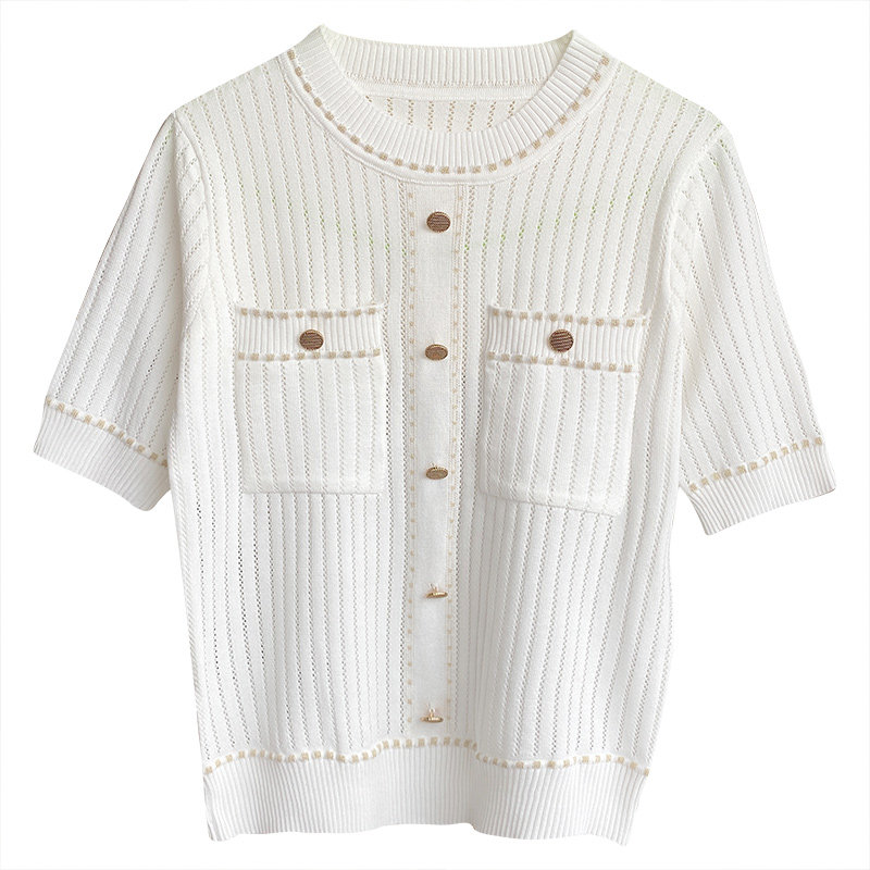 Трикотажная футболка, модная летняя одежда, в стиле Шанель, коллекция 2023, в западном стиле, изысканный стиль, яркий броский стиль, короткий рукав