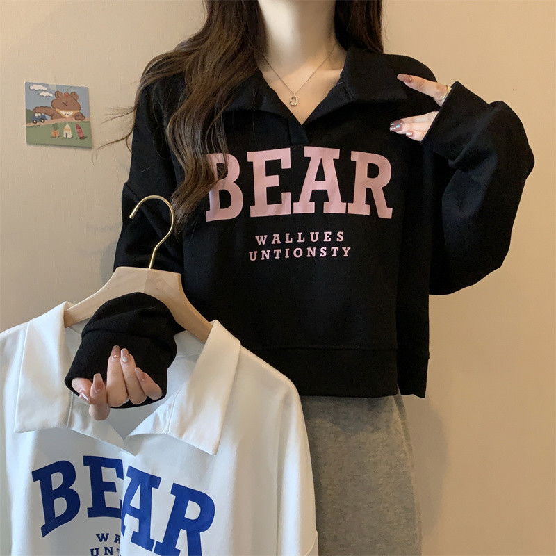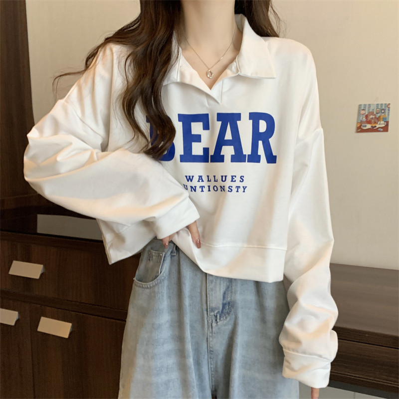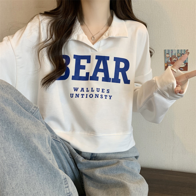 Ретро свитшот, осенняя футболка, в американском стиле, воротник поло, большой размер, 2023