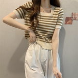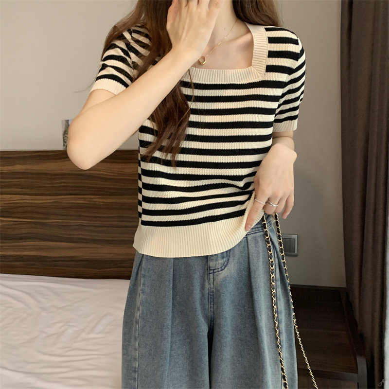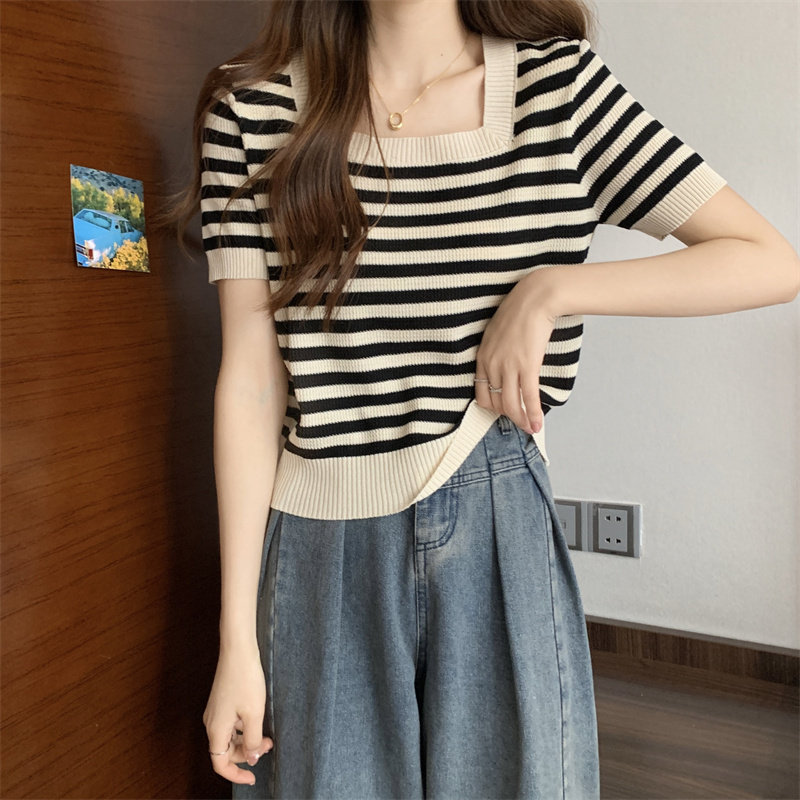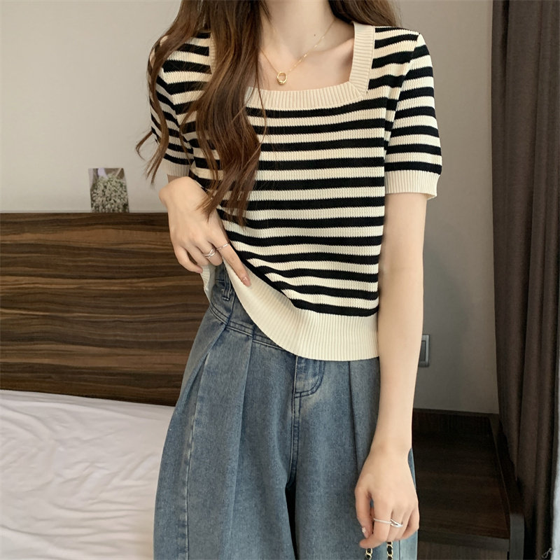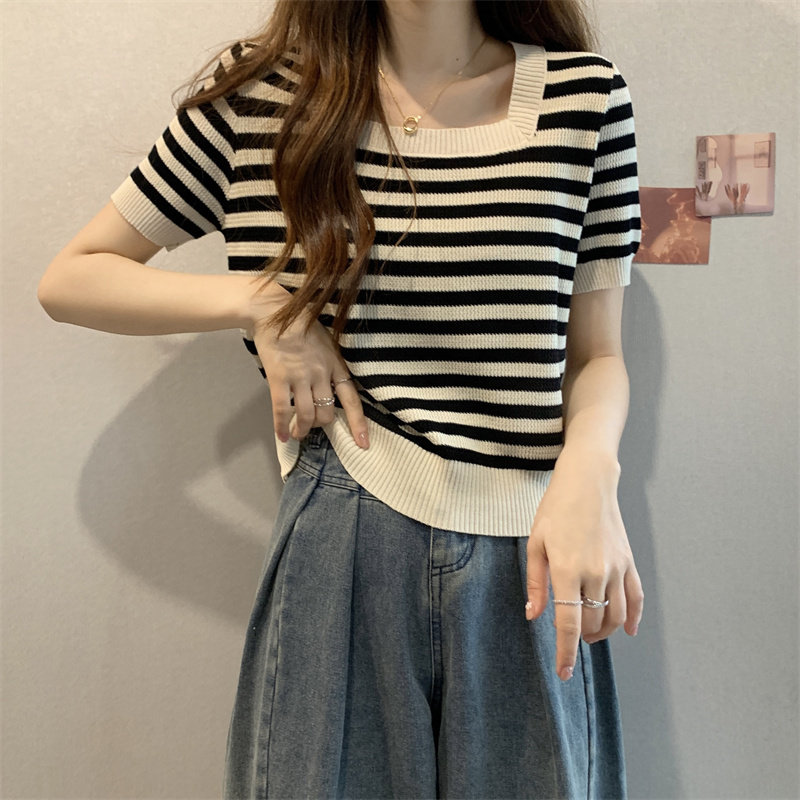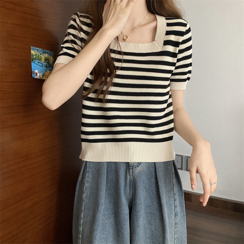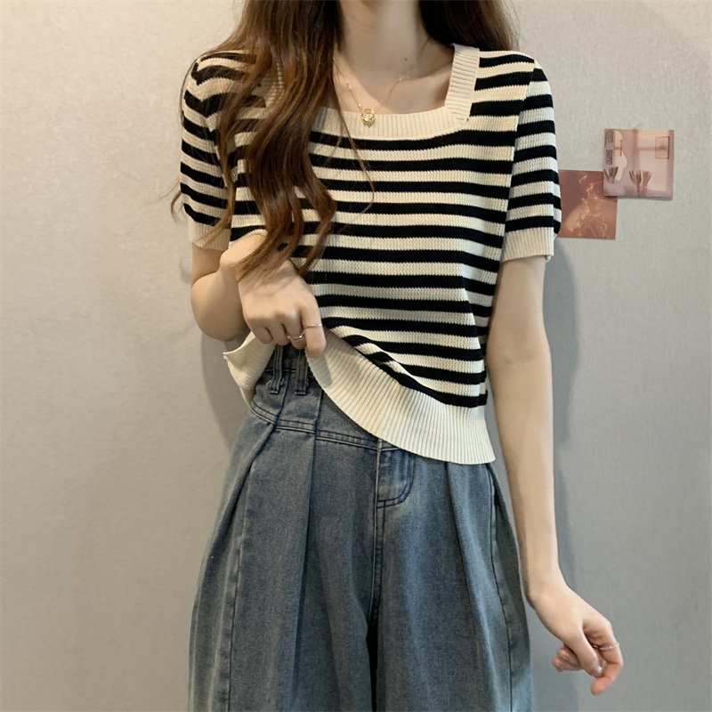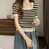 | Цвет: | Черные полосы [Гонконг со вкусом чикат ретро корейский вдохновение], Модная дизайнерская футболка, городской стиль, тренд сезона |