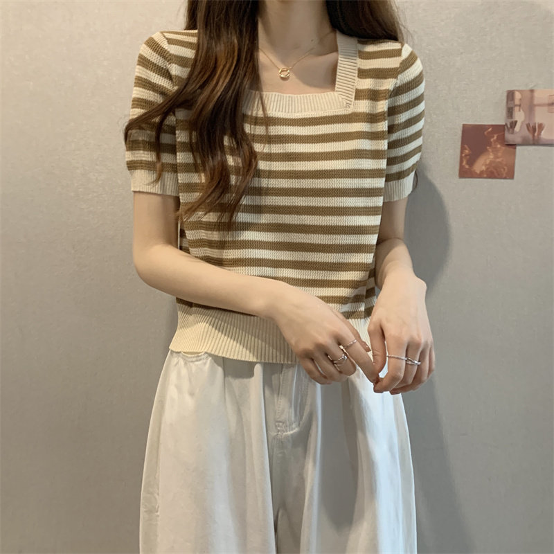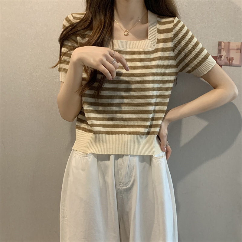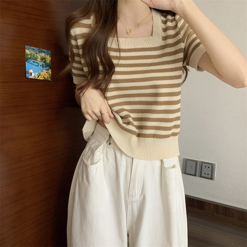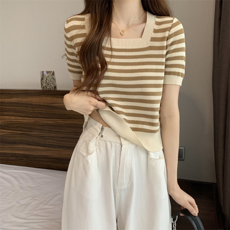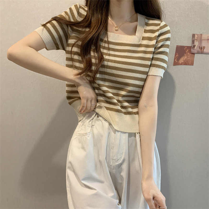 Шелковая летняя футболка с коротким рукавом, трикотажный свитер, большой размер, квадратный вырез