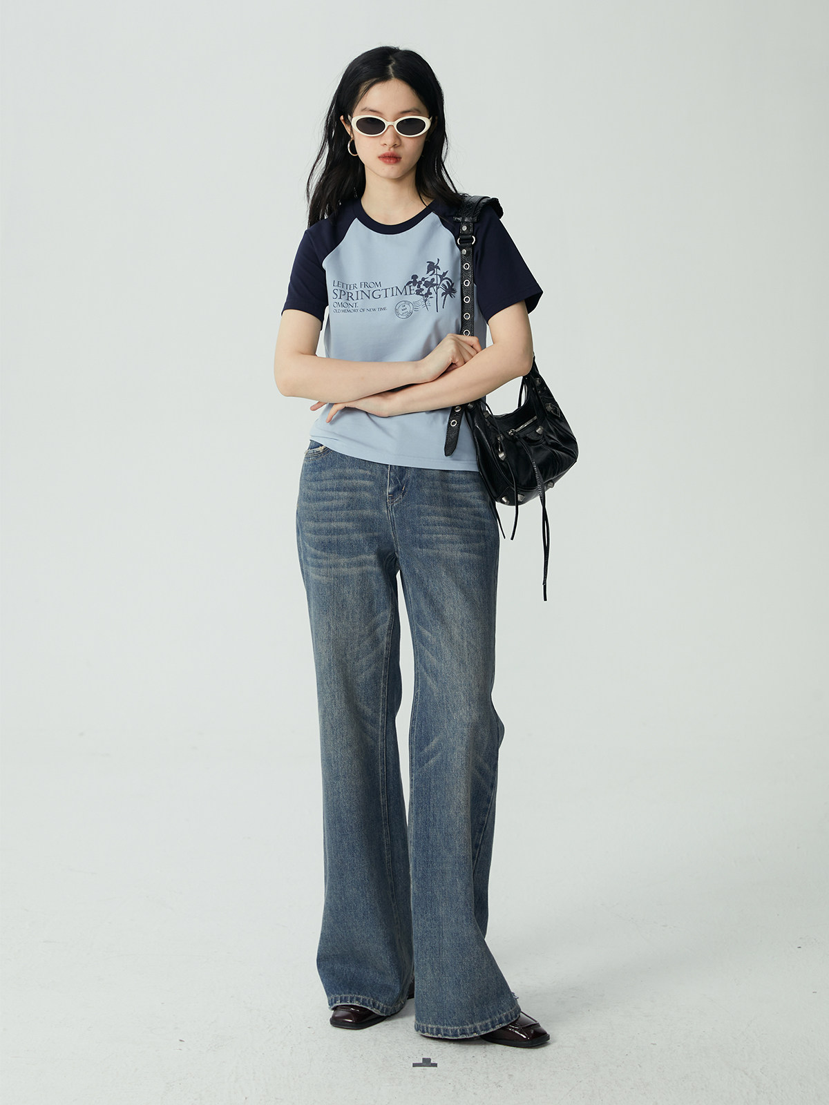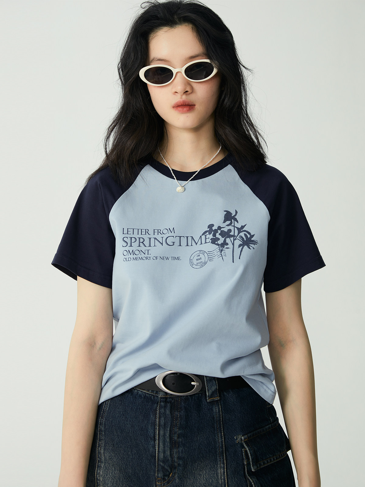 omont Летняя ретро приталенная футболка с круглым воротником, короткий рукав