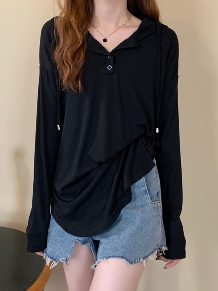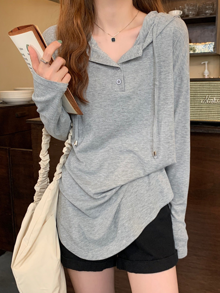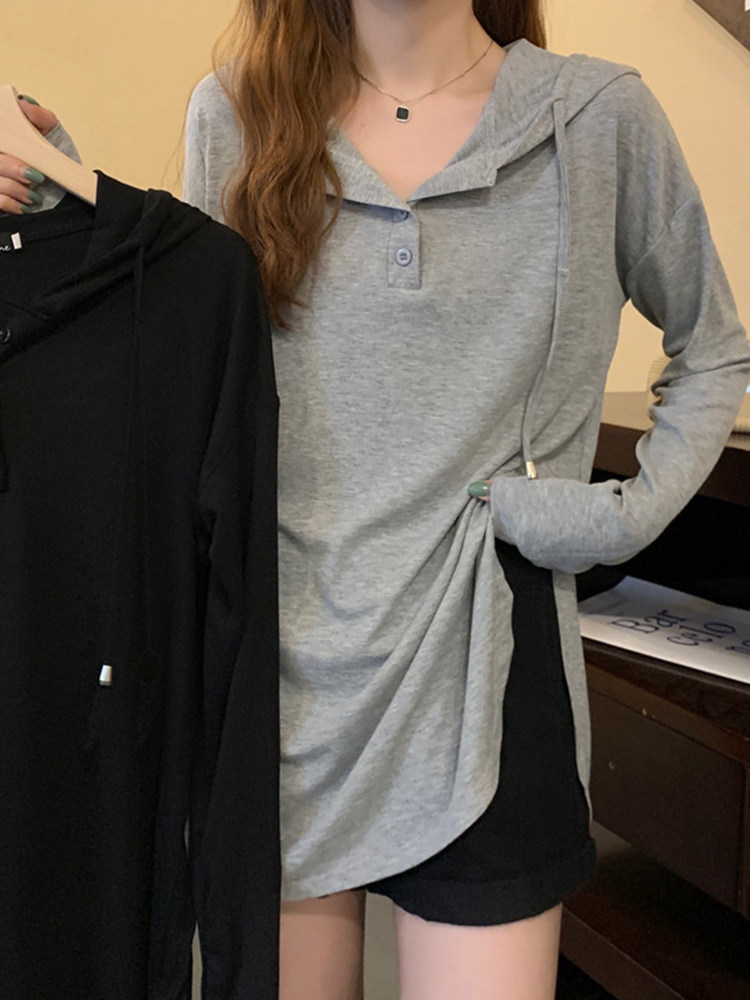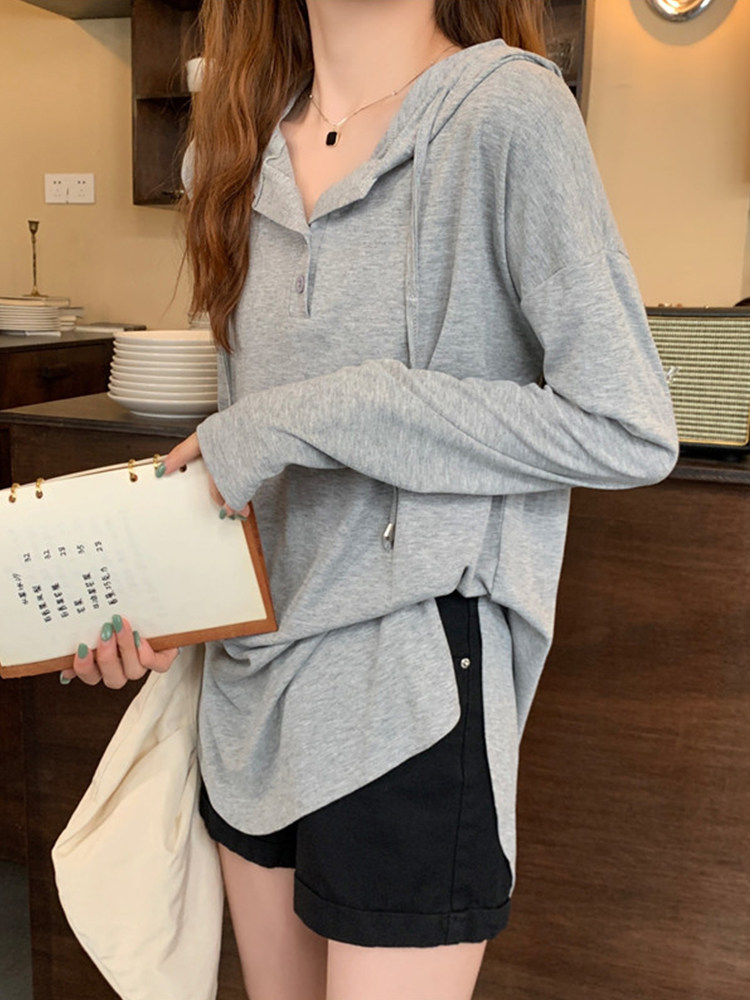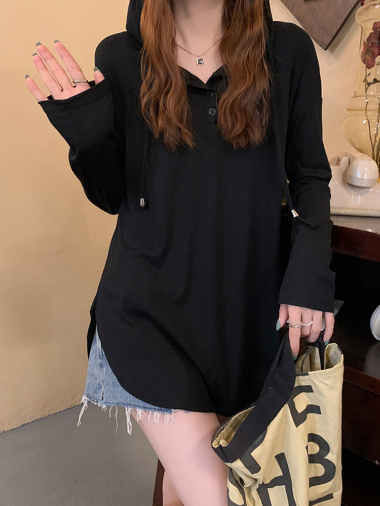 Осенняя длинная толстовка с капюшоном, лонгслив, большой размер, средней длины