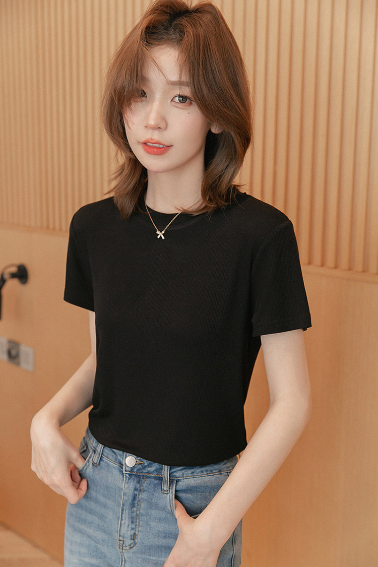 Черная летняя базовая футболка, короткий рукав, подходит для подростков, по фигуре