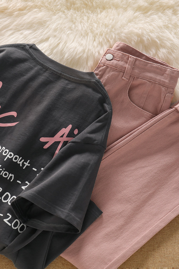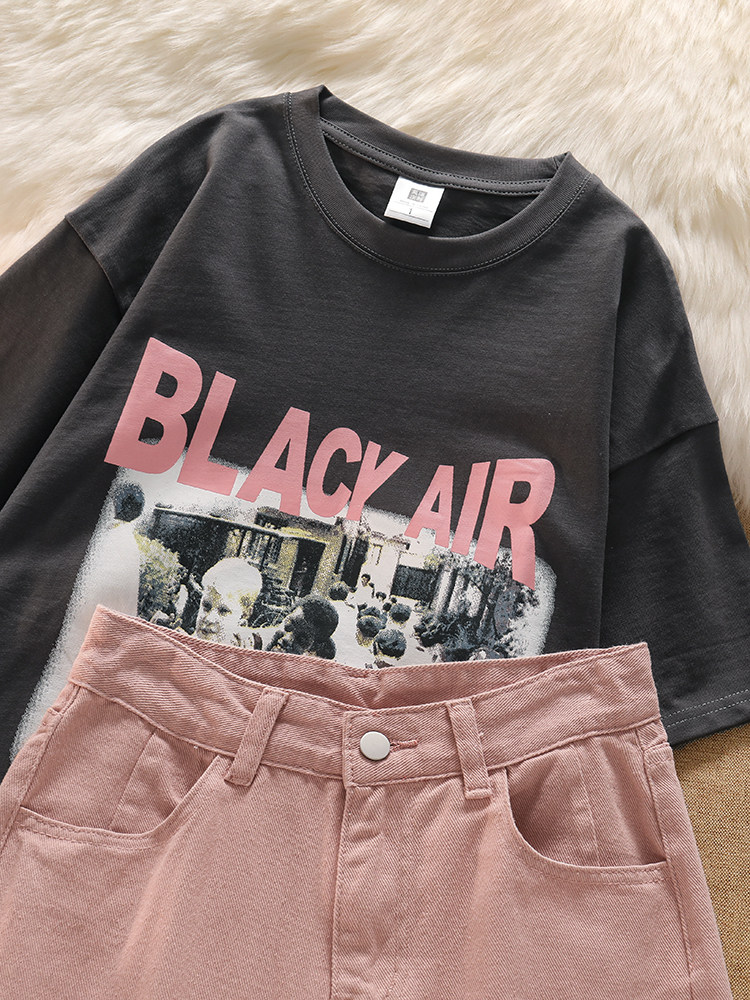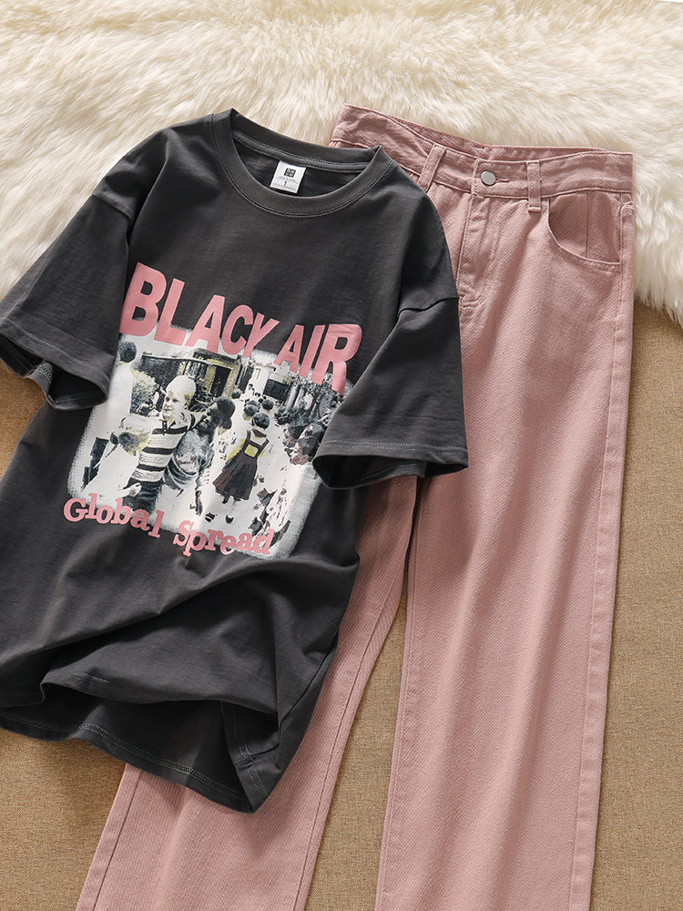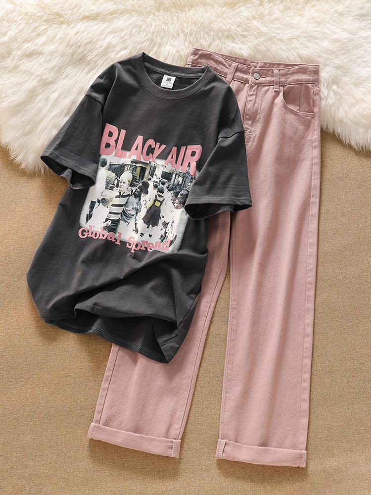 Ретро футболка с коротким рукавом, джинсы, штаны, свободный крой