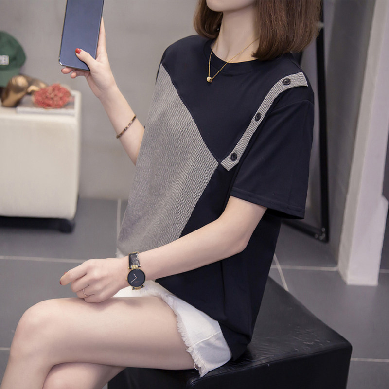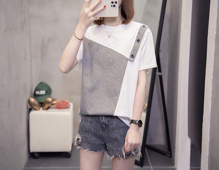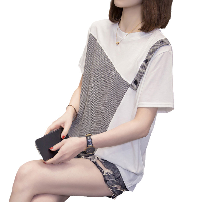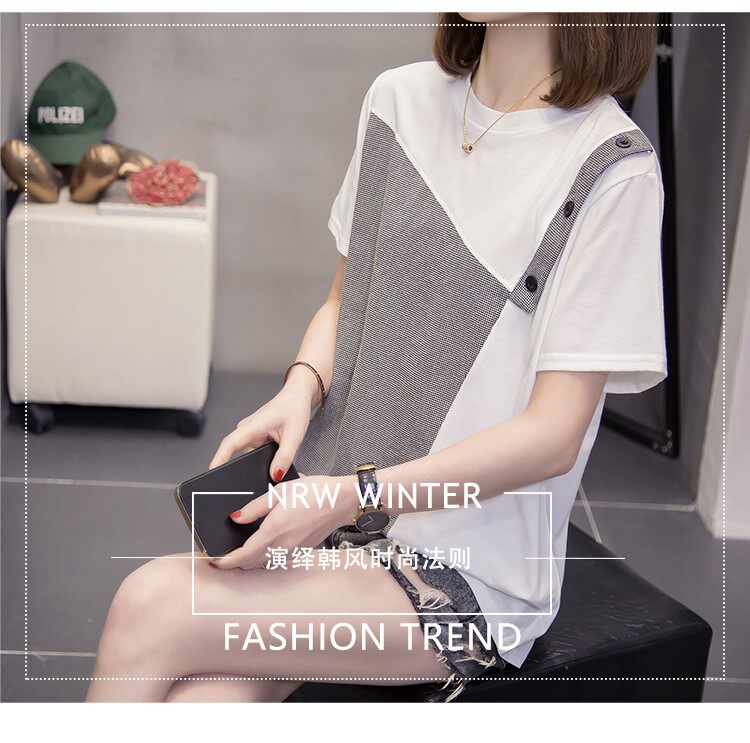 Летняя осенняя модная футболка с коротким рукавом, большой размер, в западном стиле, свободный крой