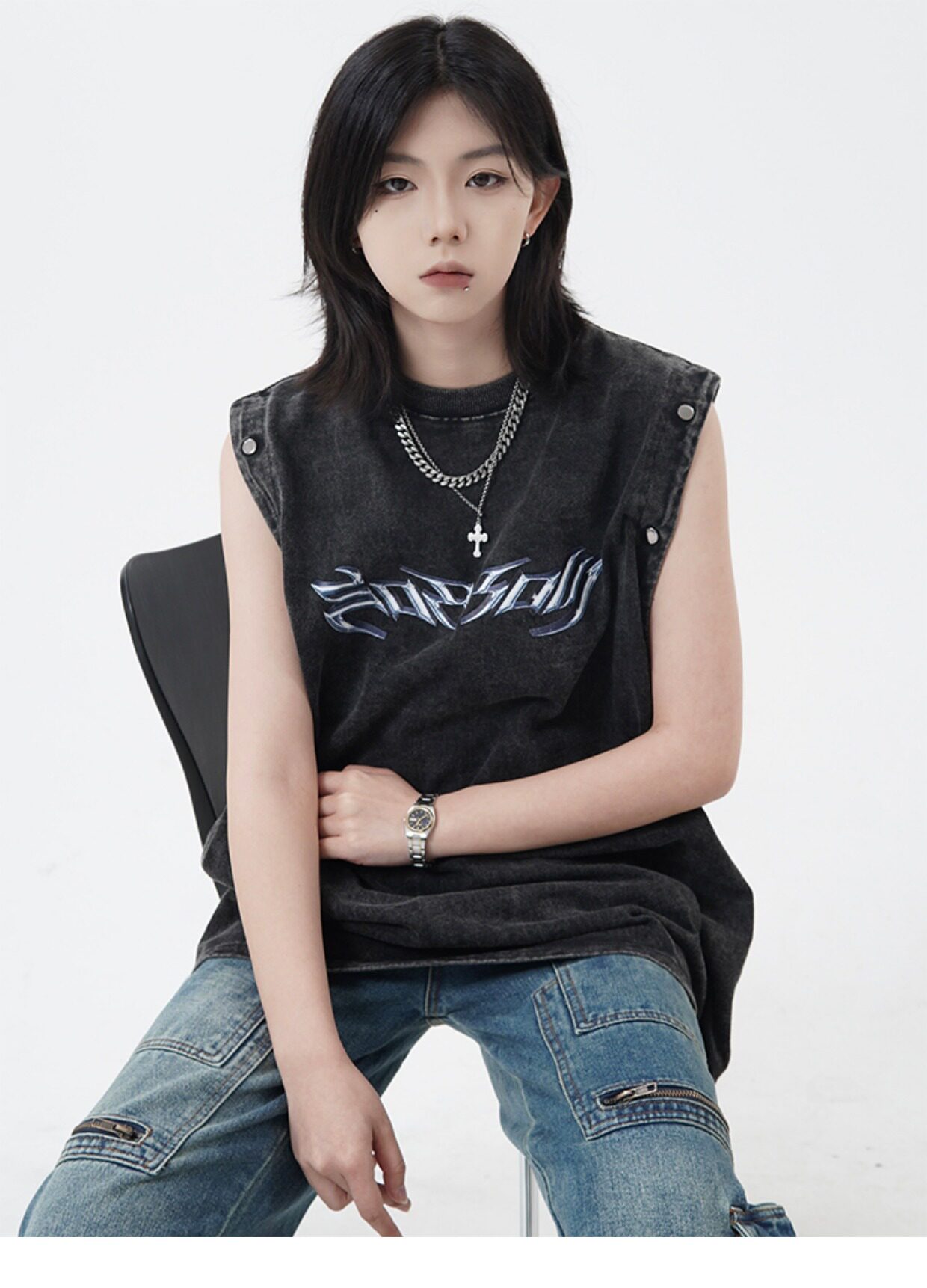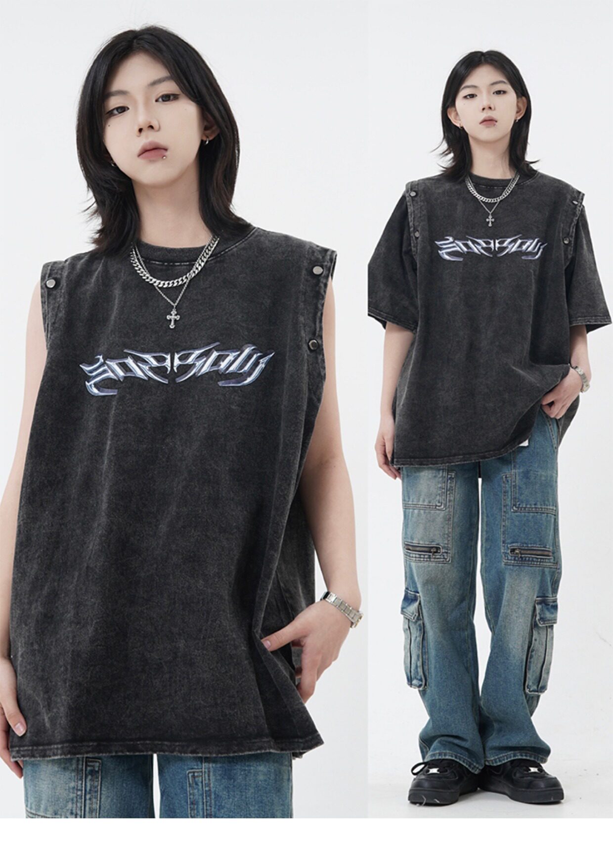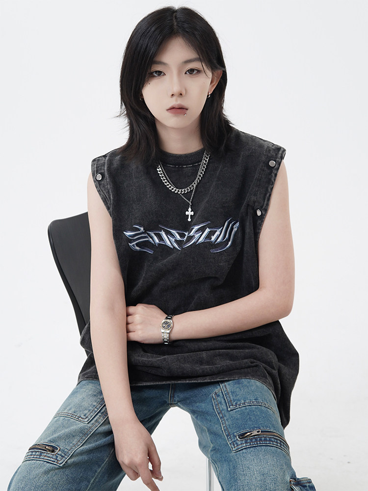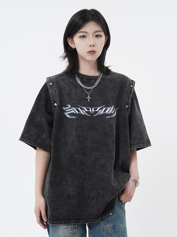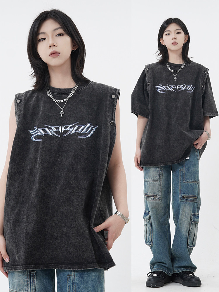 Оригинальная дизайнерская съемная футболка с коротким рукавом, жилет без рукавов, в американском стиле, свободный крой