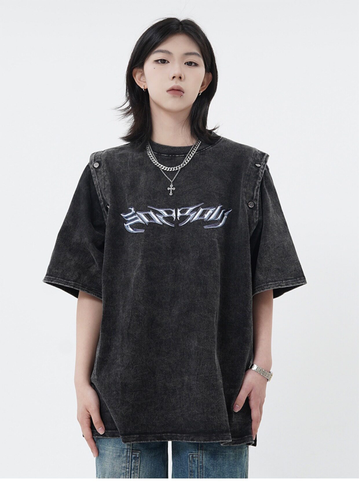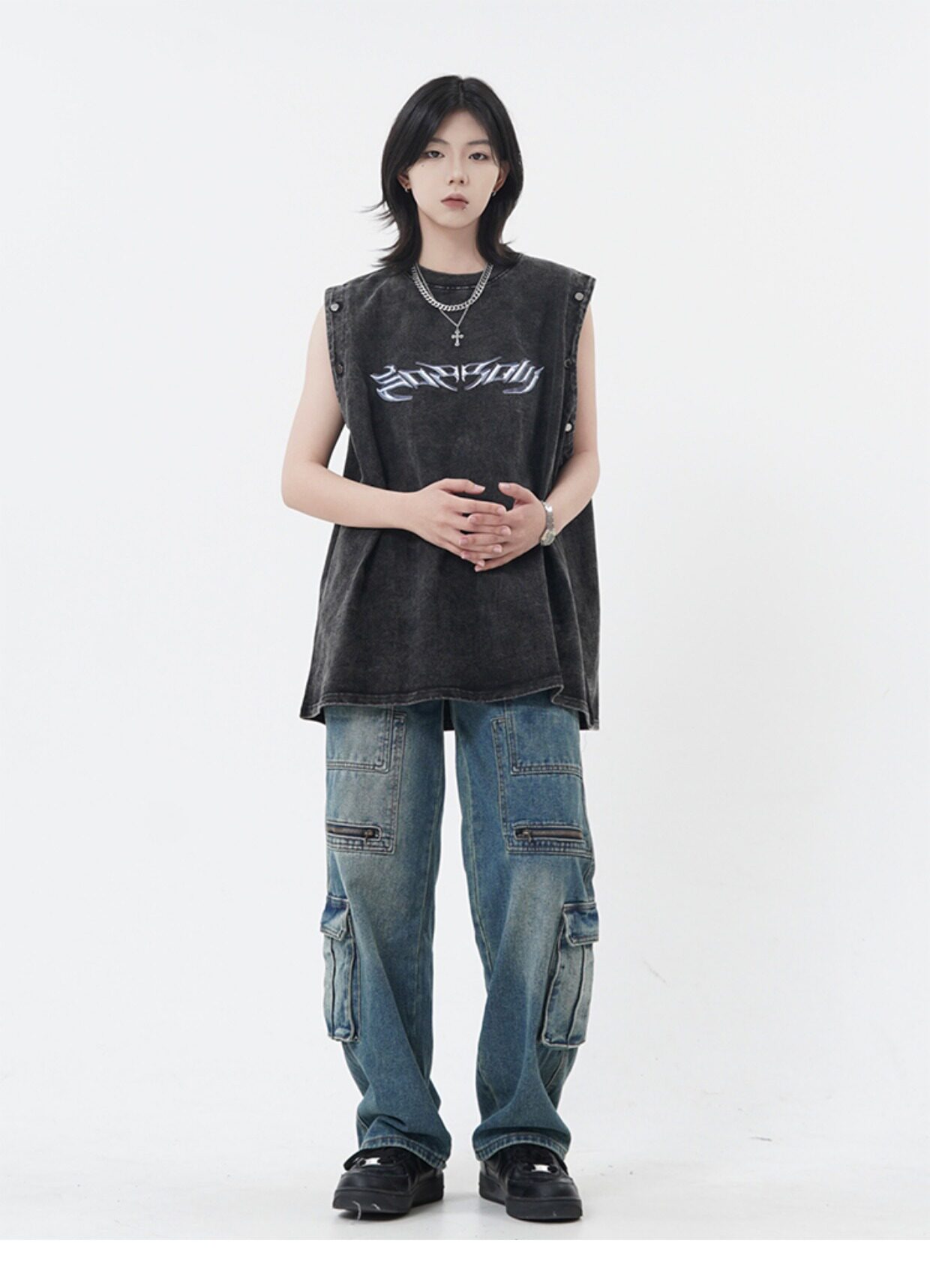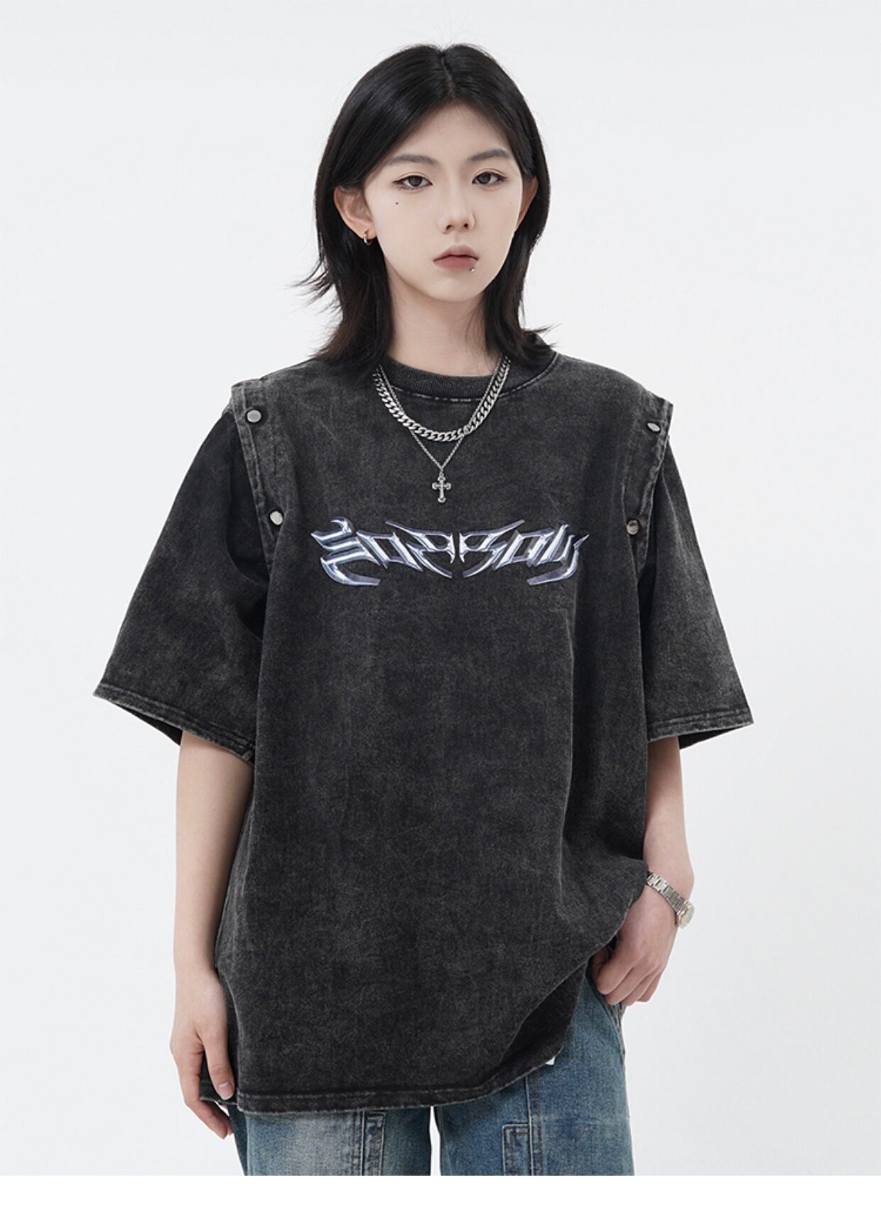 Оригинальная дизайнерская съемная футболка с коротким рукавом, жилет без рукавов, в американском стиле, свободный крой