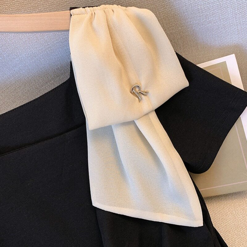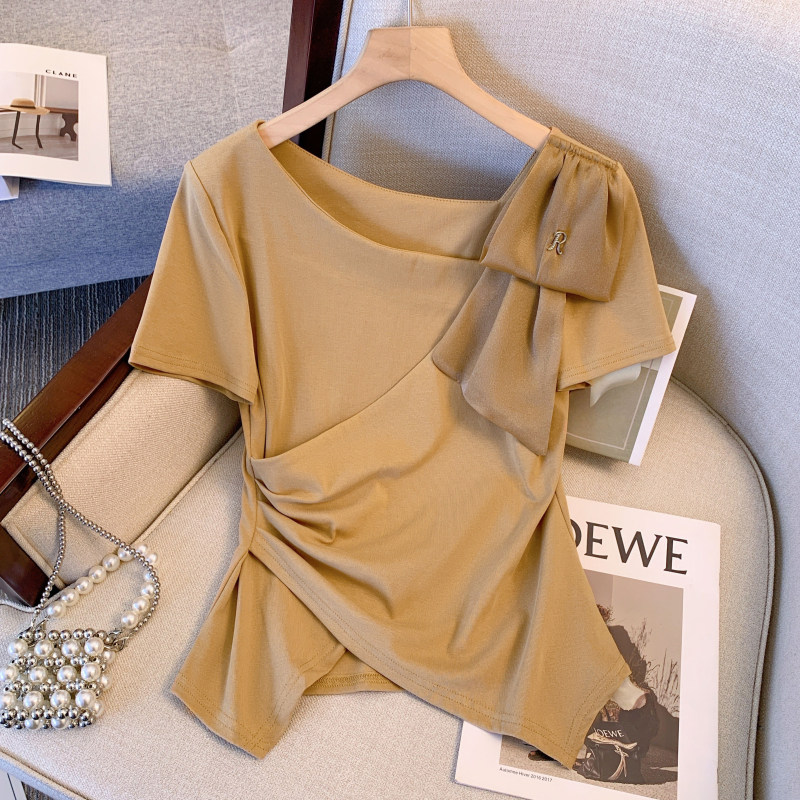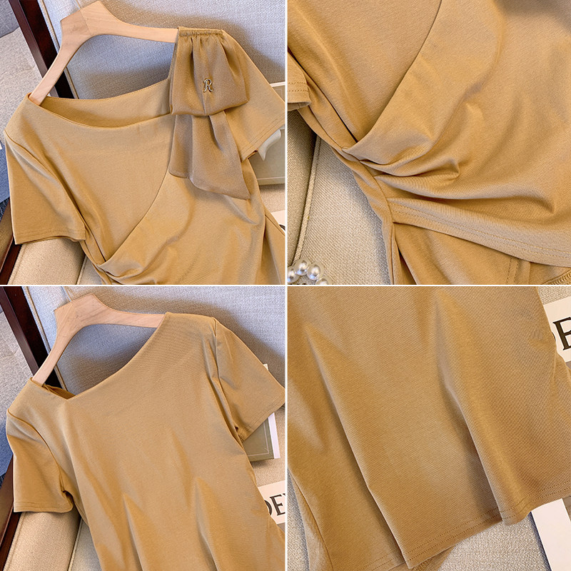 Летняя футболка, V-образный вырез, большой размер, изысканный стиль