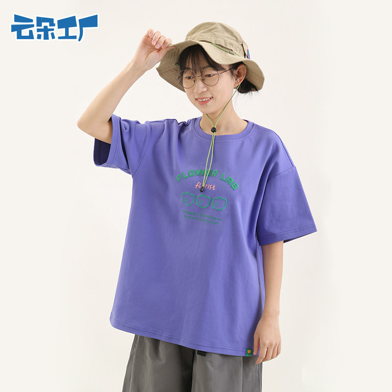 Весенняя летняя сиреневая футболка для отдыха с круглым воротником, короткий рукав, оверсайз