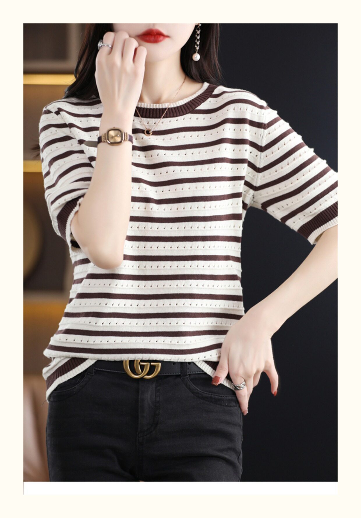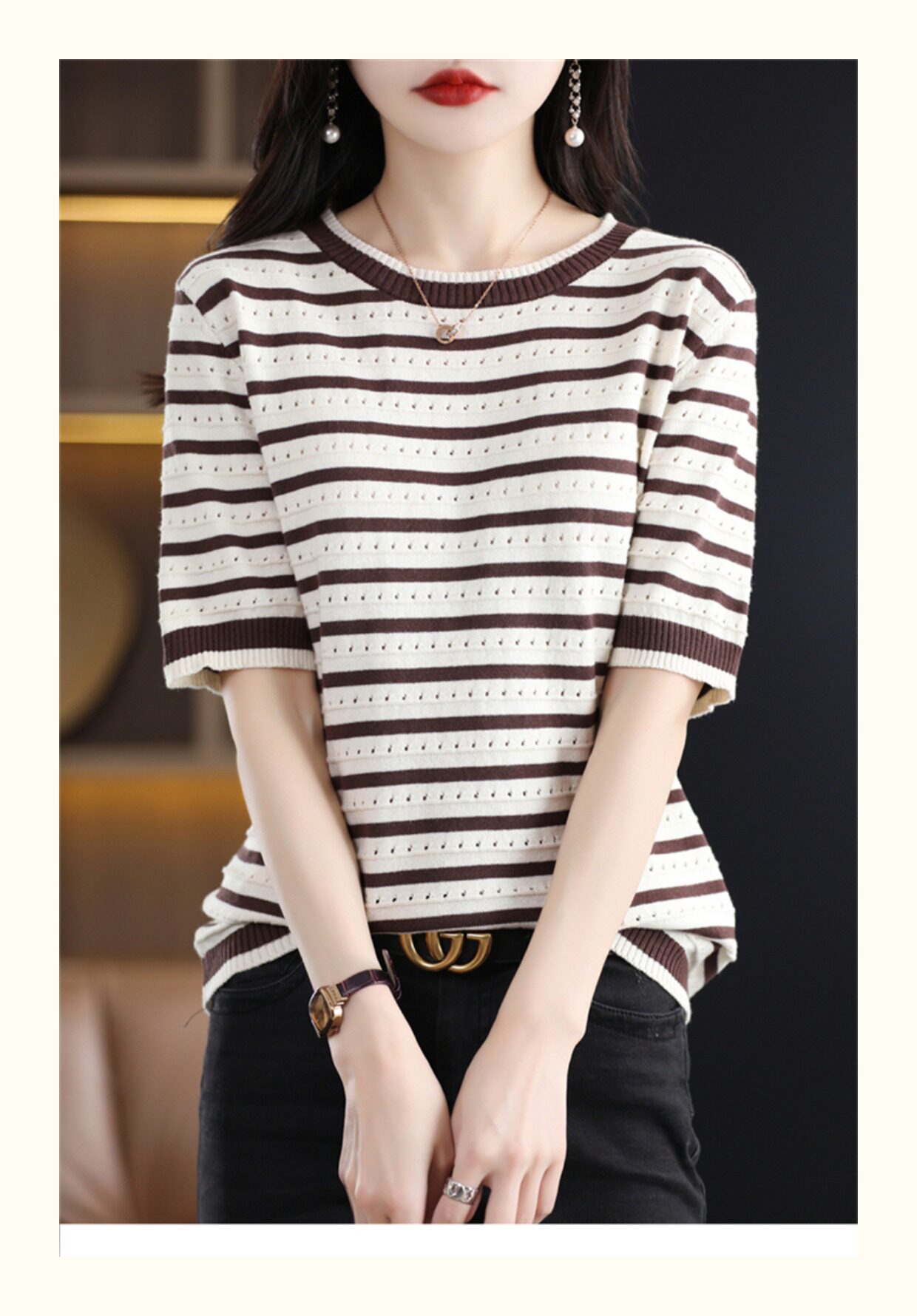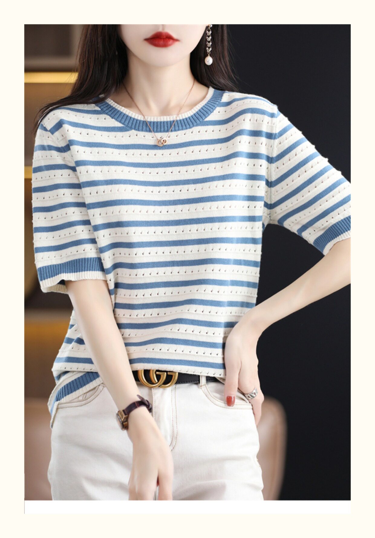 Хлопковые трикотажные нарукавники с круглым воротником, футболка, короткий рукав, свободный крой