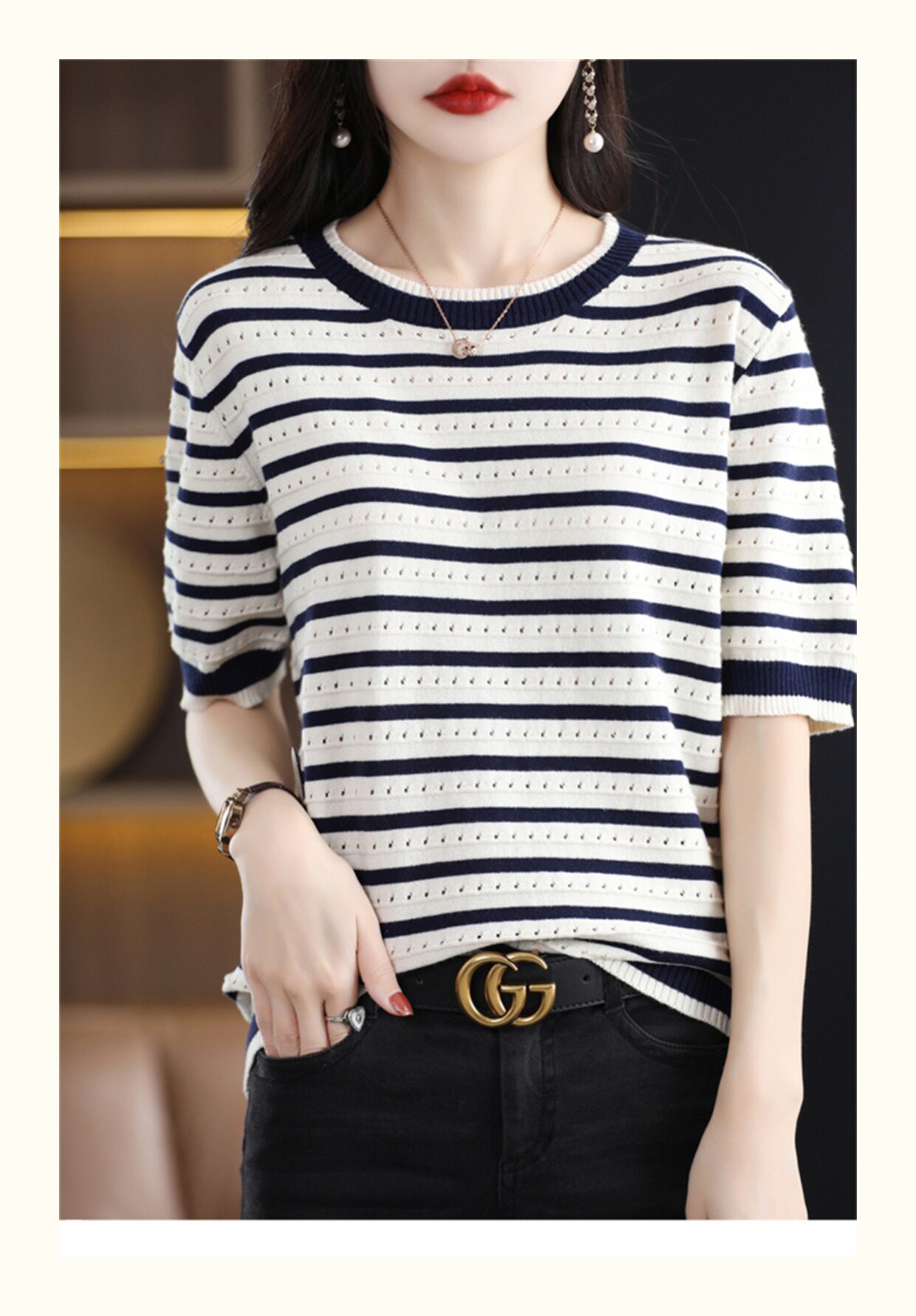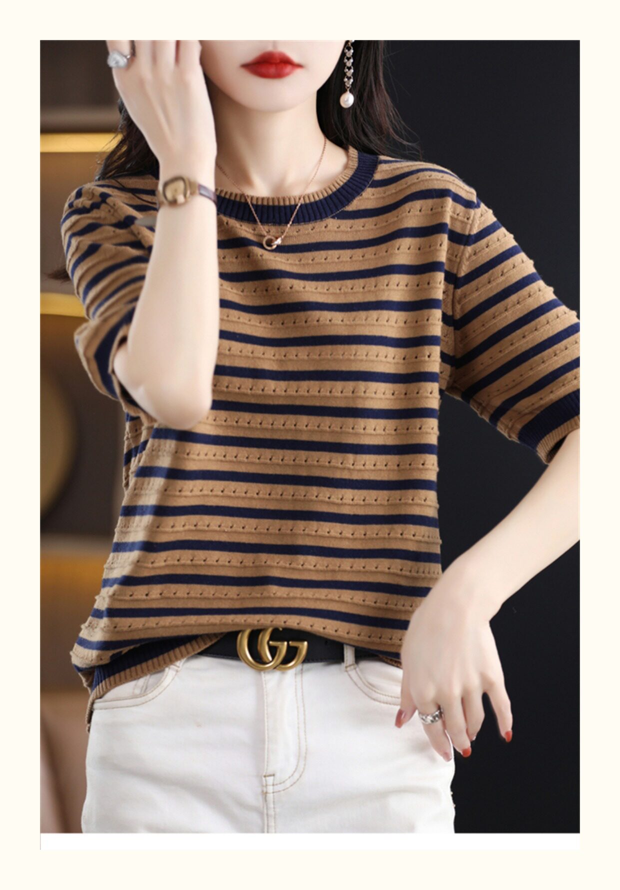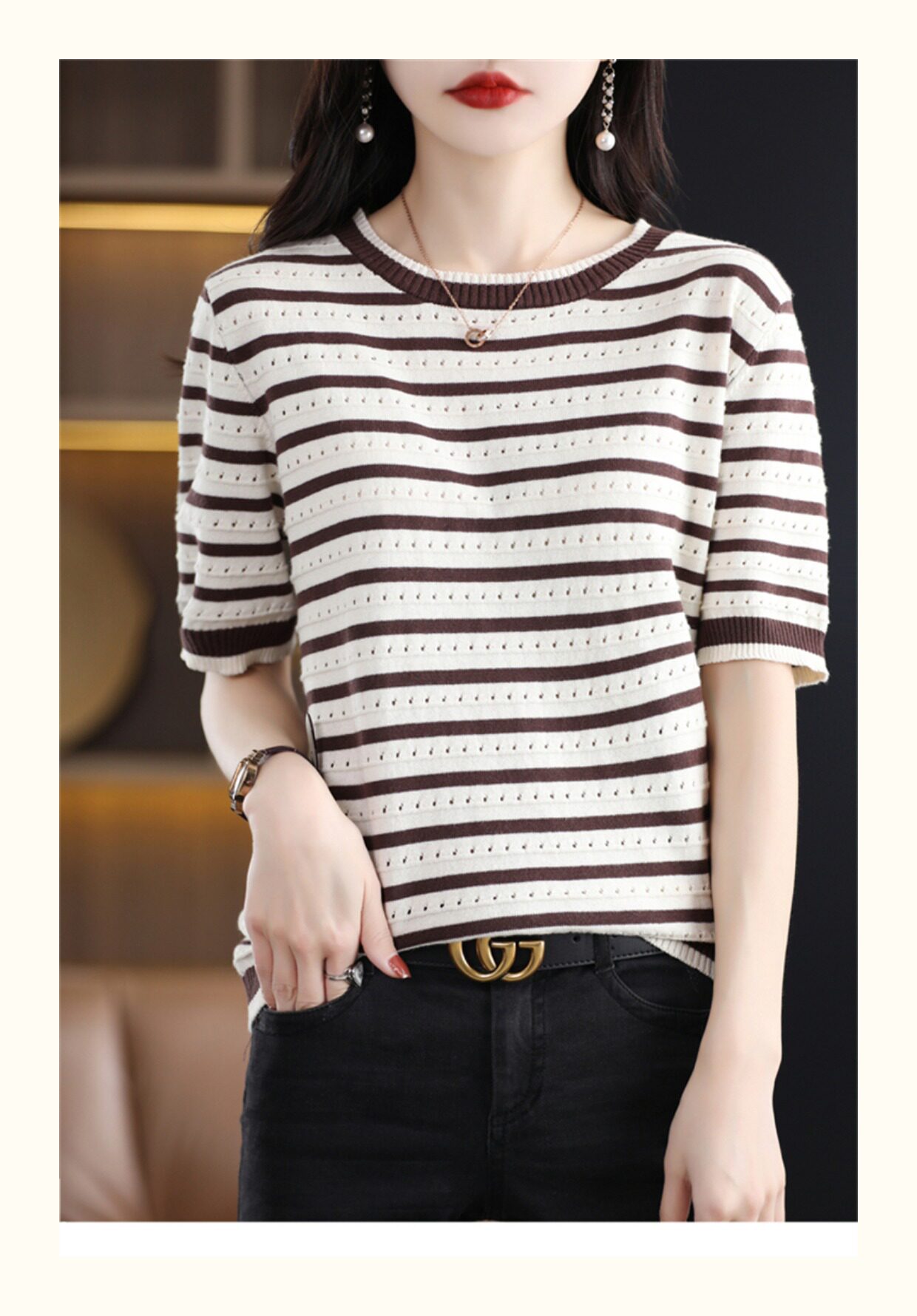 Хлопковые трикотажные нарукавники с круглым воротником, футболка, короткий рукав, свободный крой