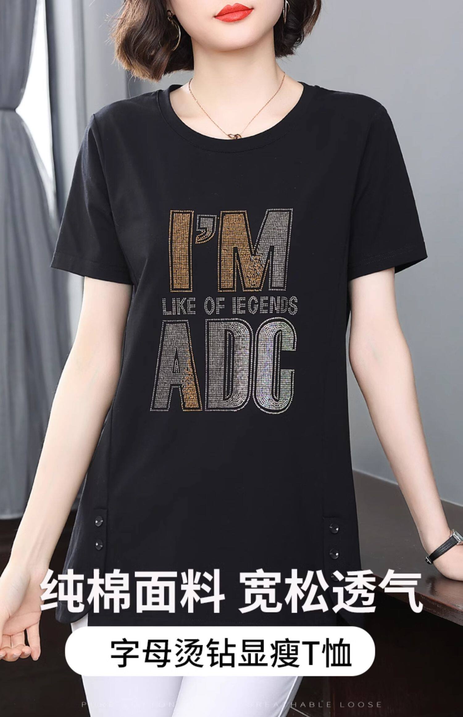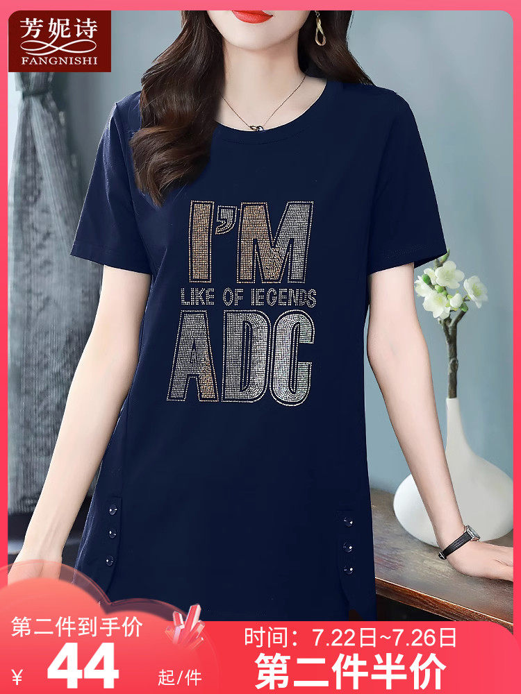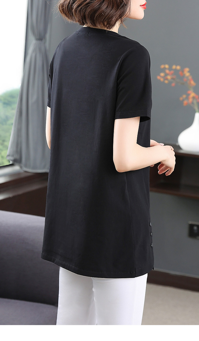 Летняя длинная хлопковая футболка с коротким рукавом, оверсайз, средней длины