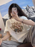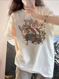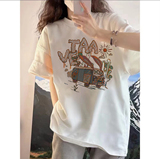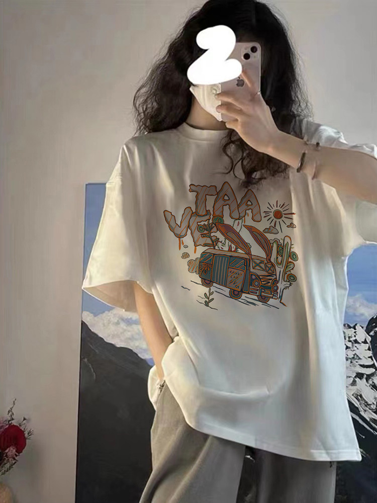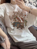 Белая летняя хлопковая футболка, в западном стиле