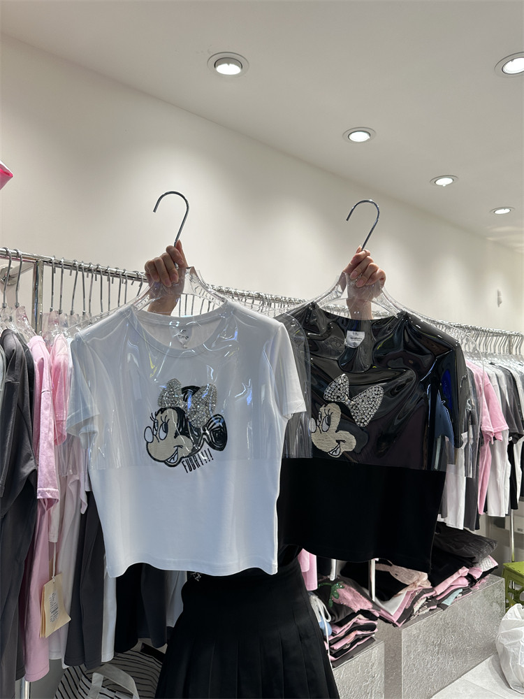 Хлопковая короткая брендовая футболка, с вышивкой, короткий рукав, в обтяжку