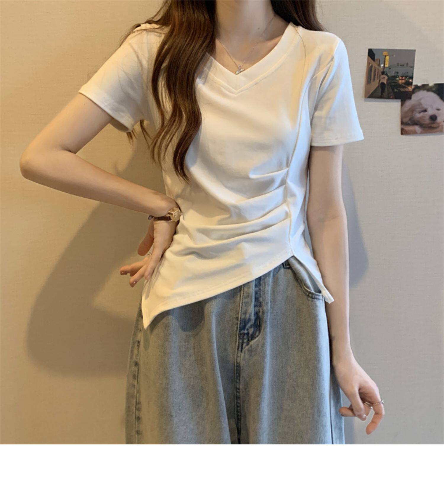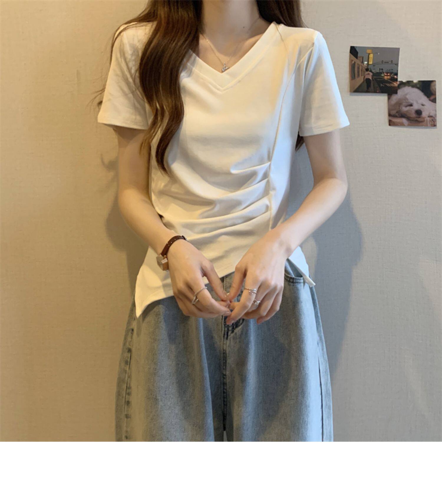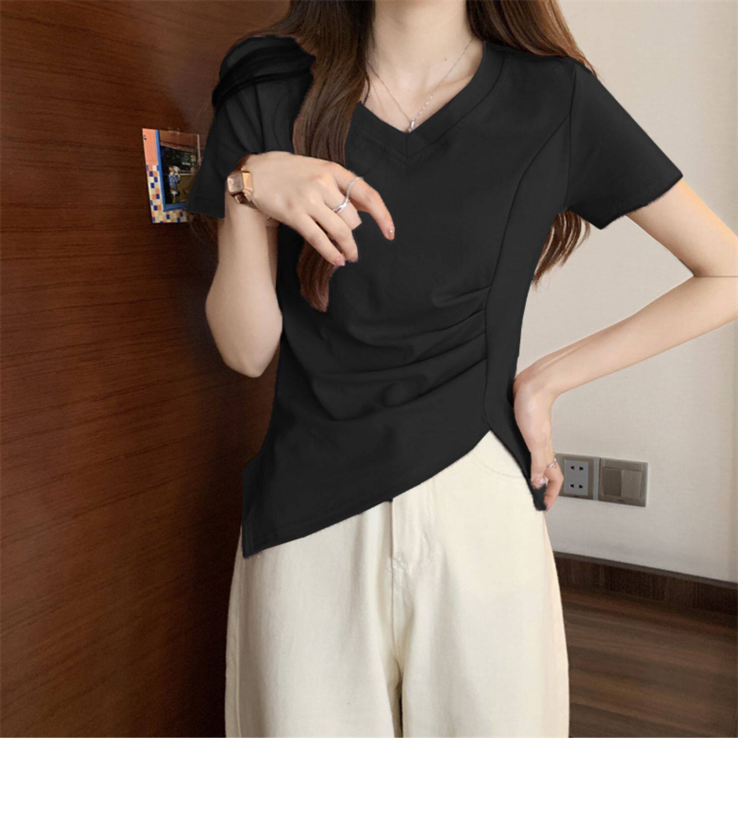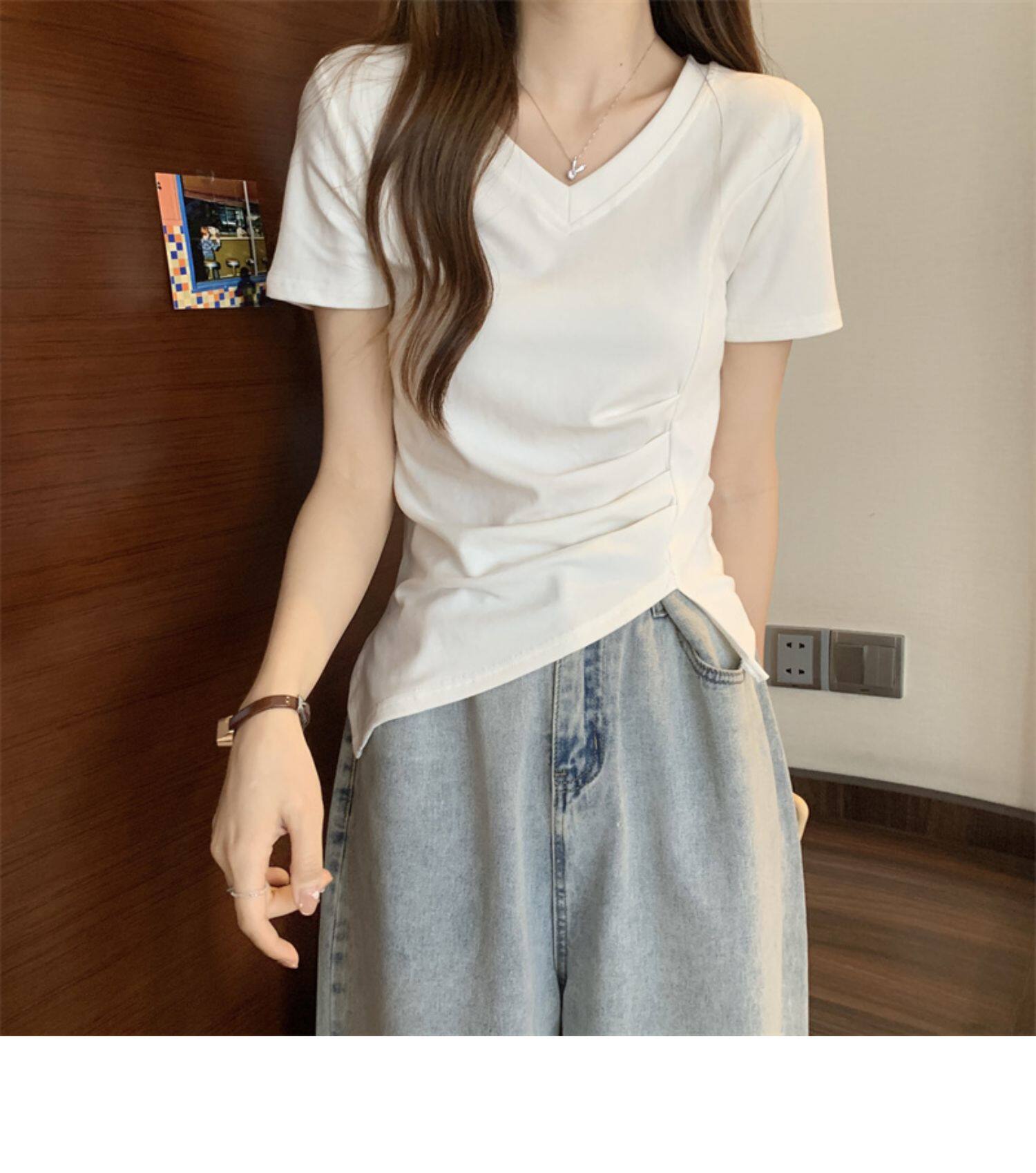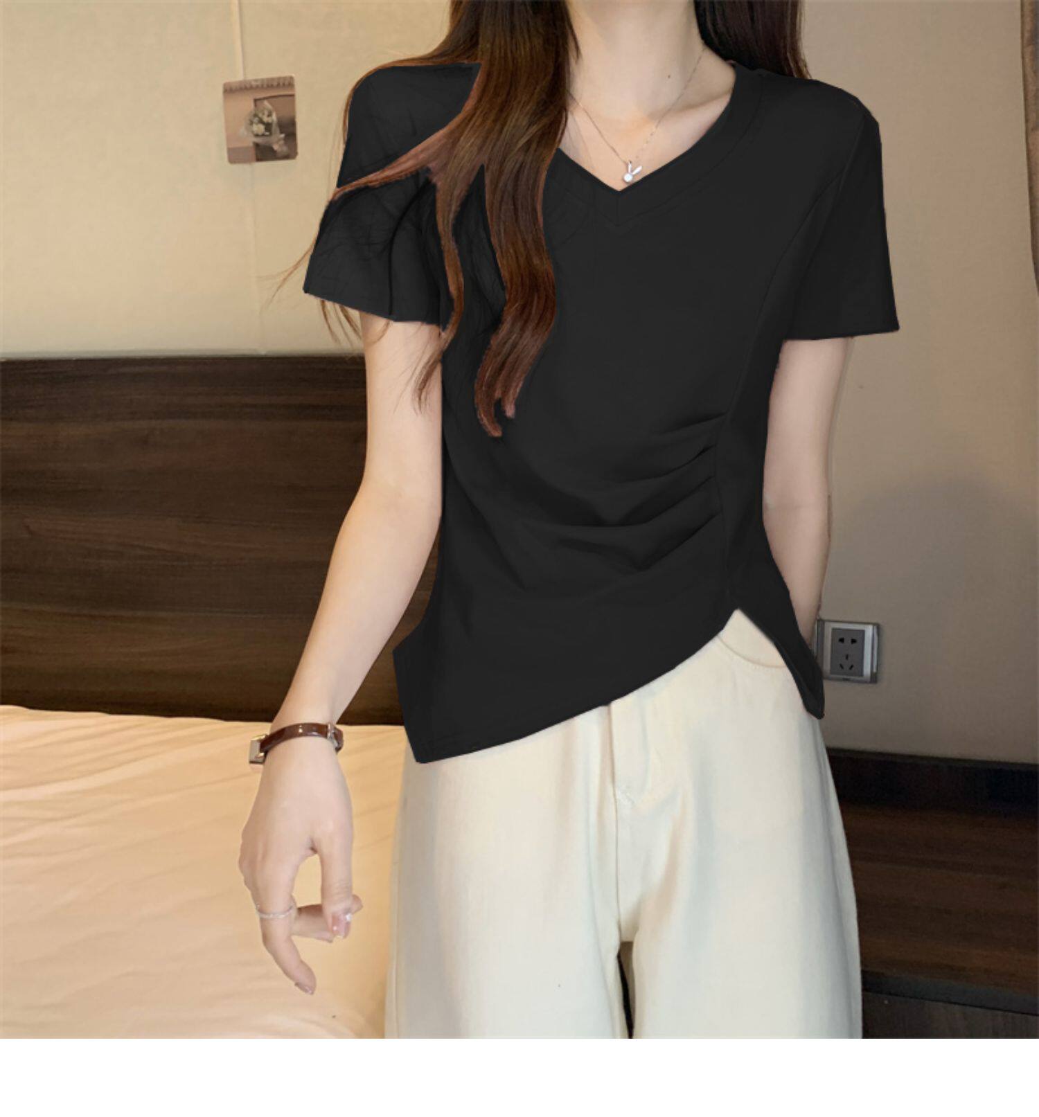 Дизайнерская футболка с коротким рукавом, большой размер, тренд сезона, V-образный вырез