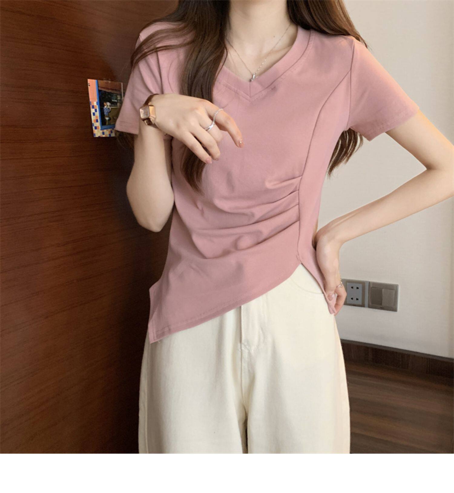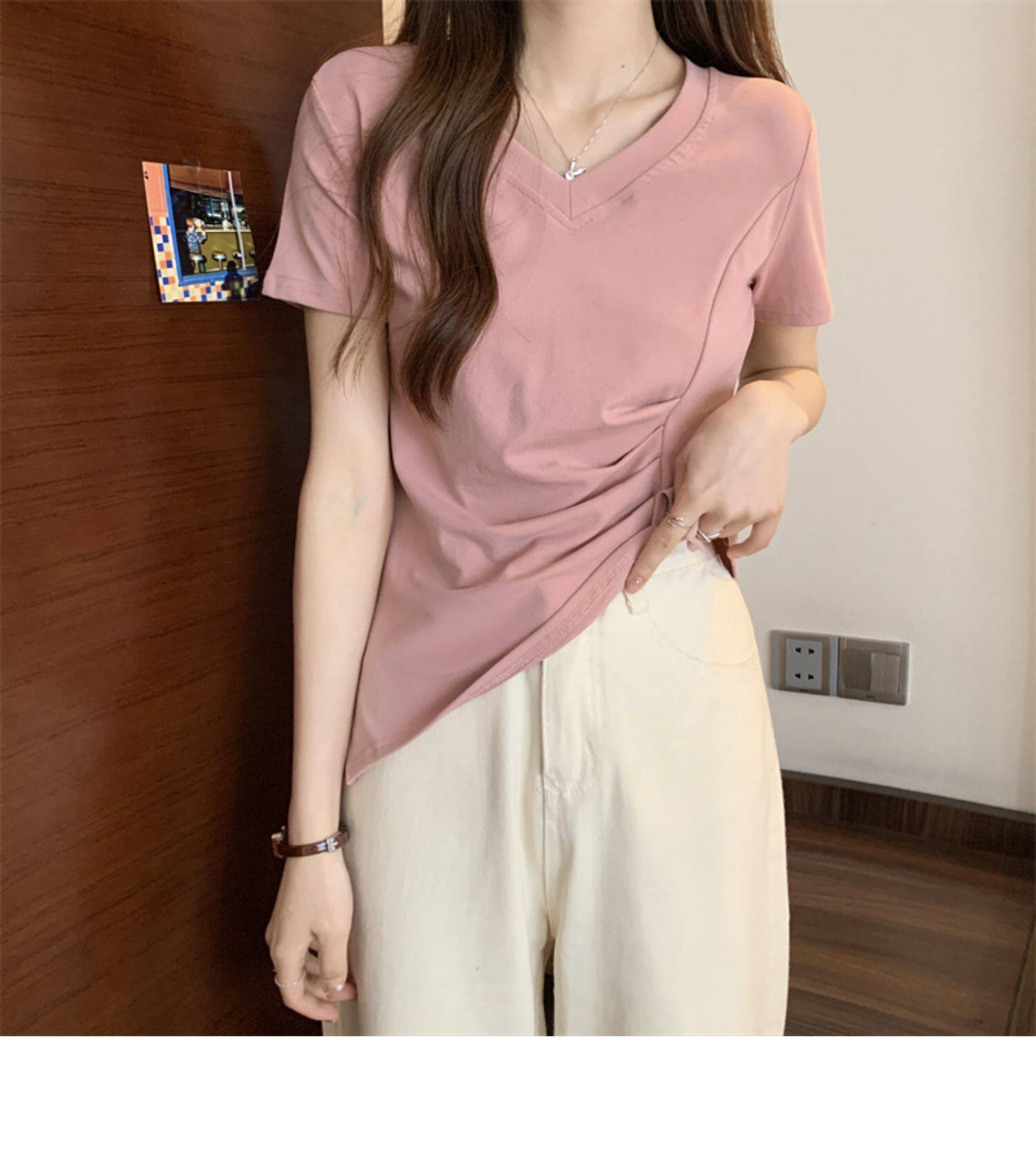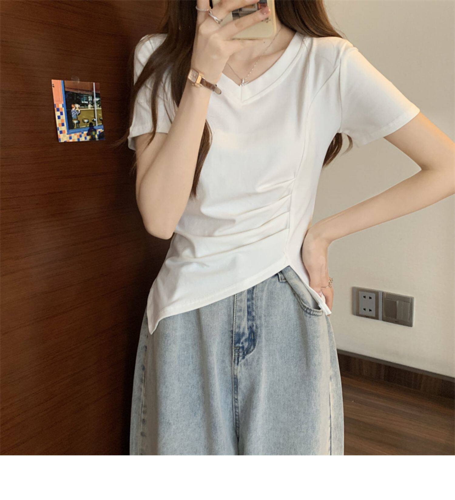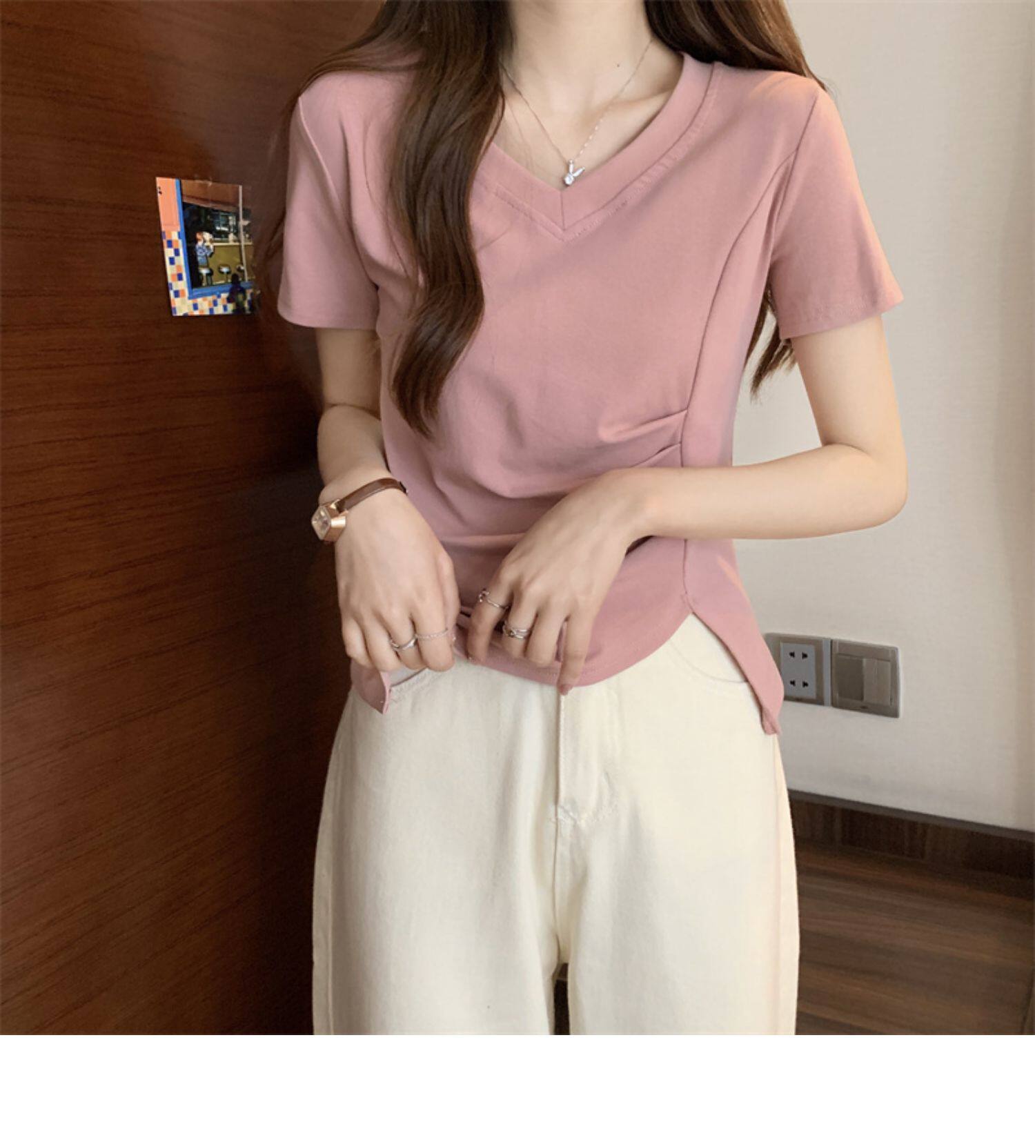 Дизайнерская футболка с коротким рукавом, большой размер, тренд сезона, V-образный вырез