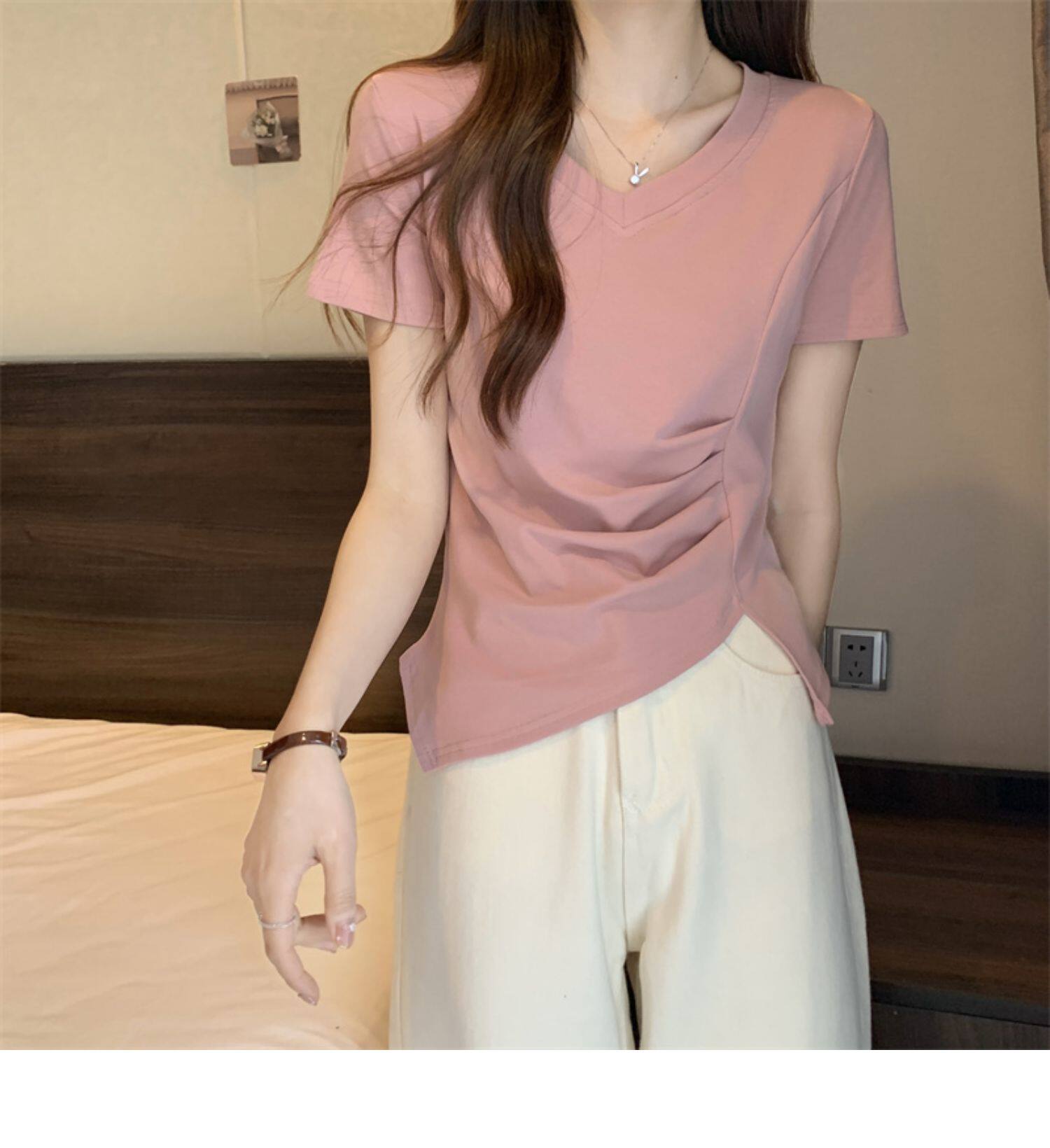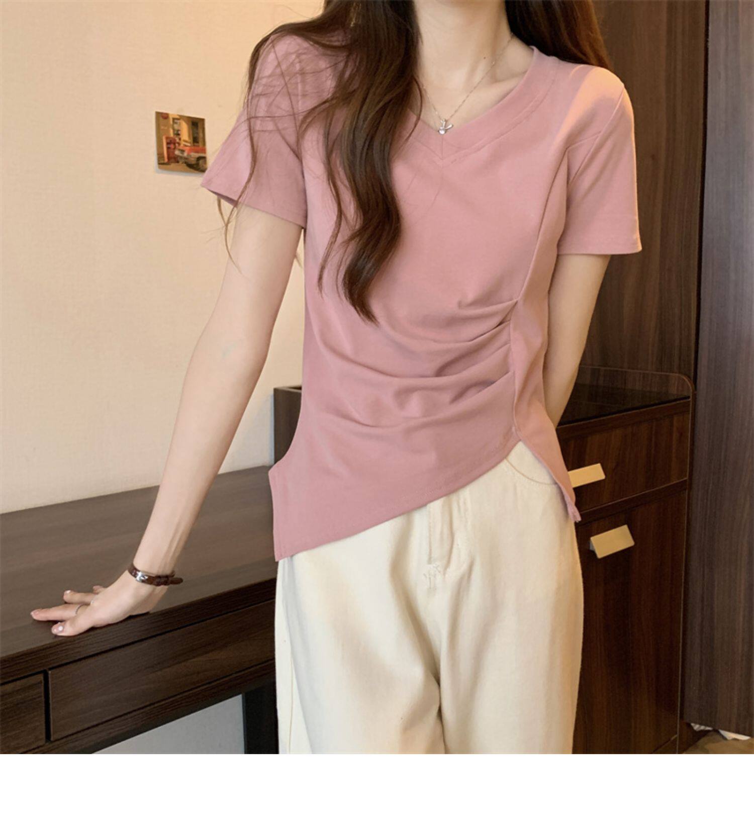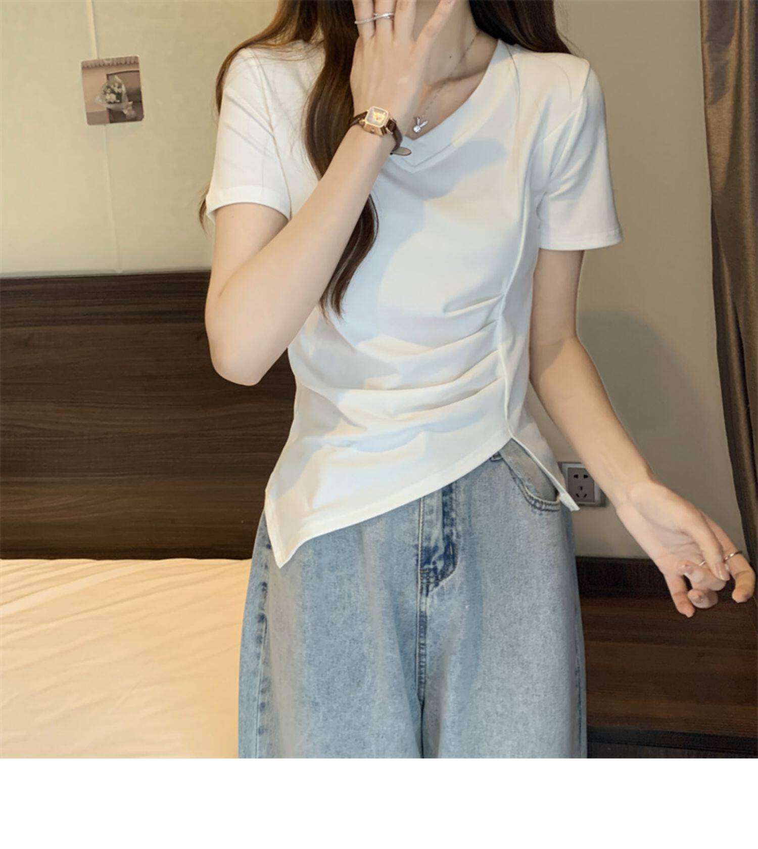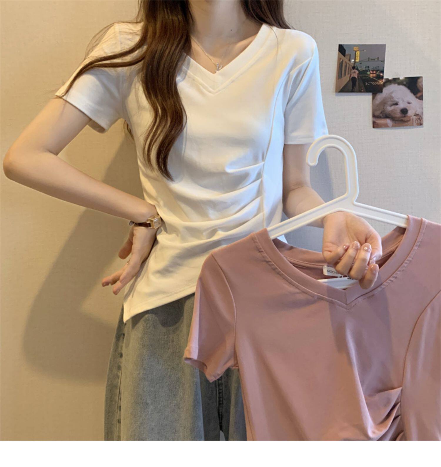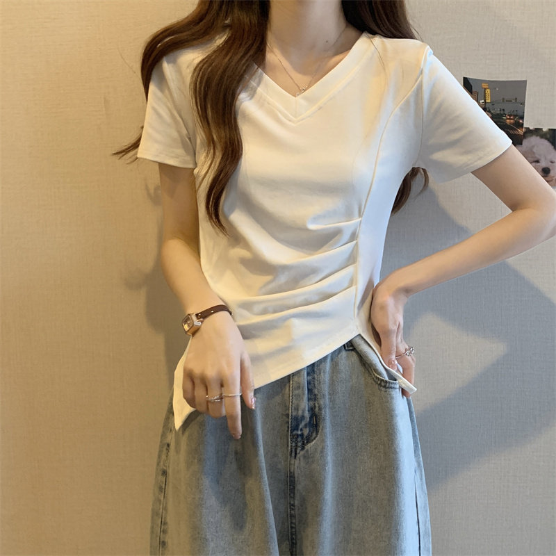 Дизайнерская футболка с коротким рукавом, большой размер, тренд сезона, V-образный вырез