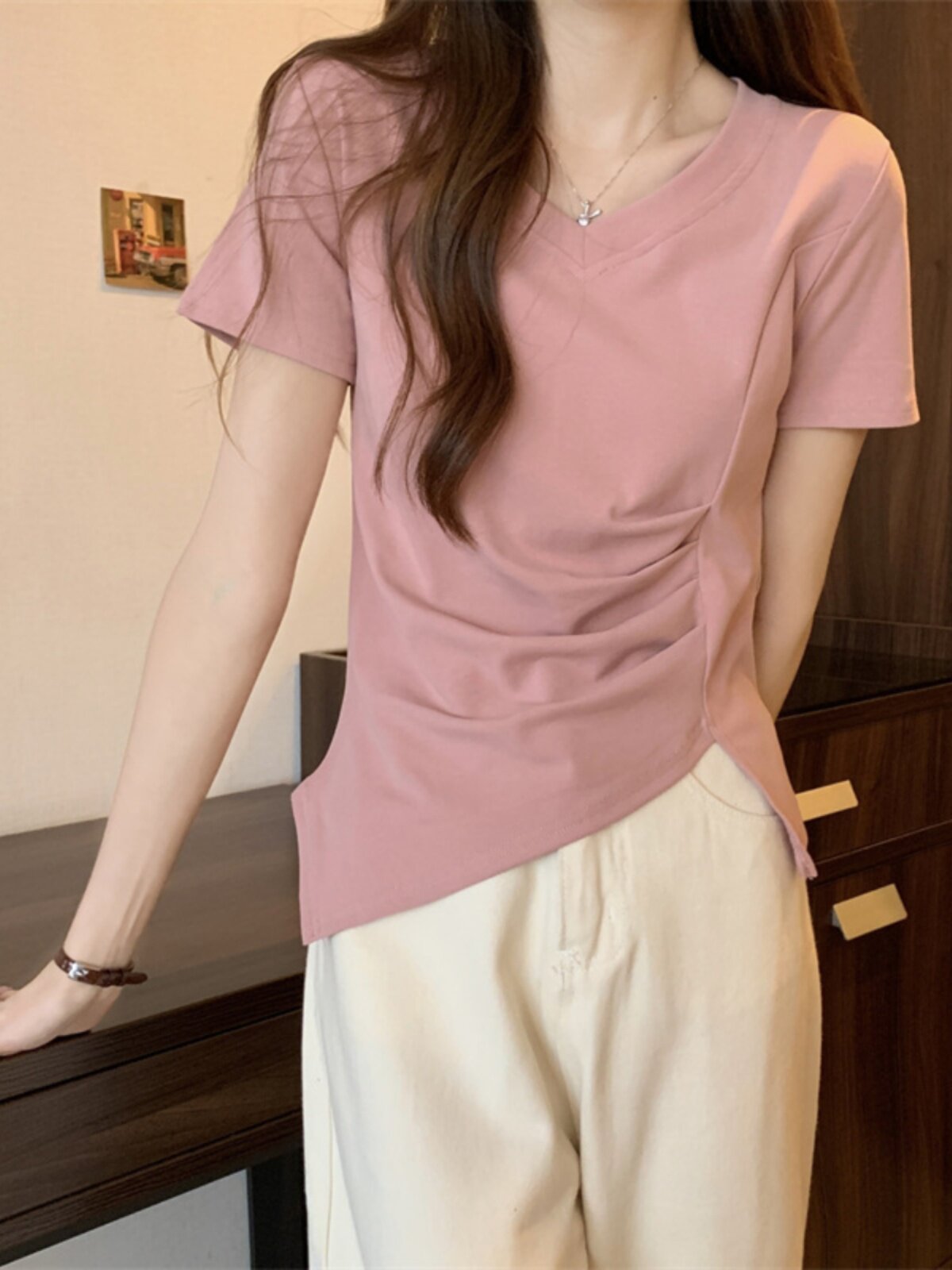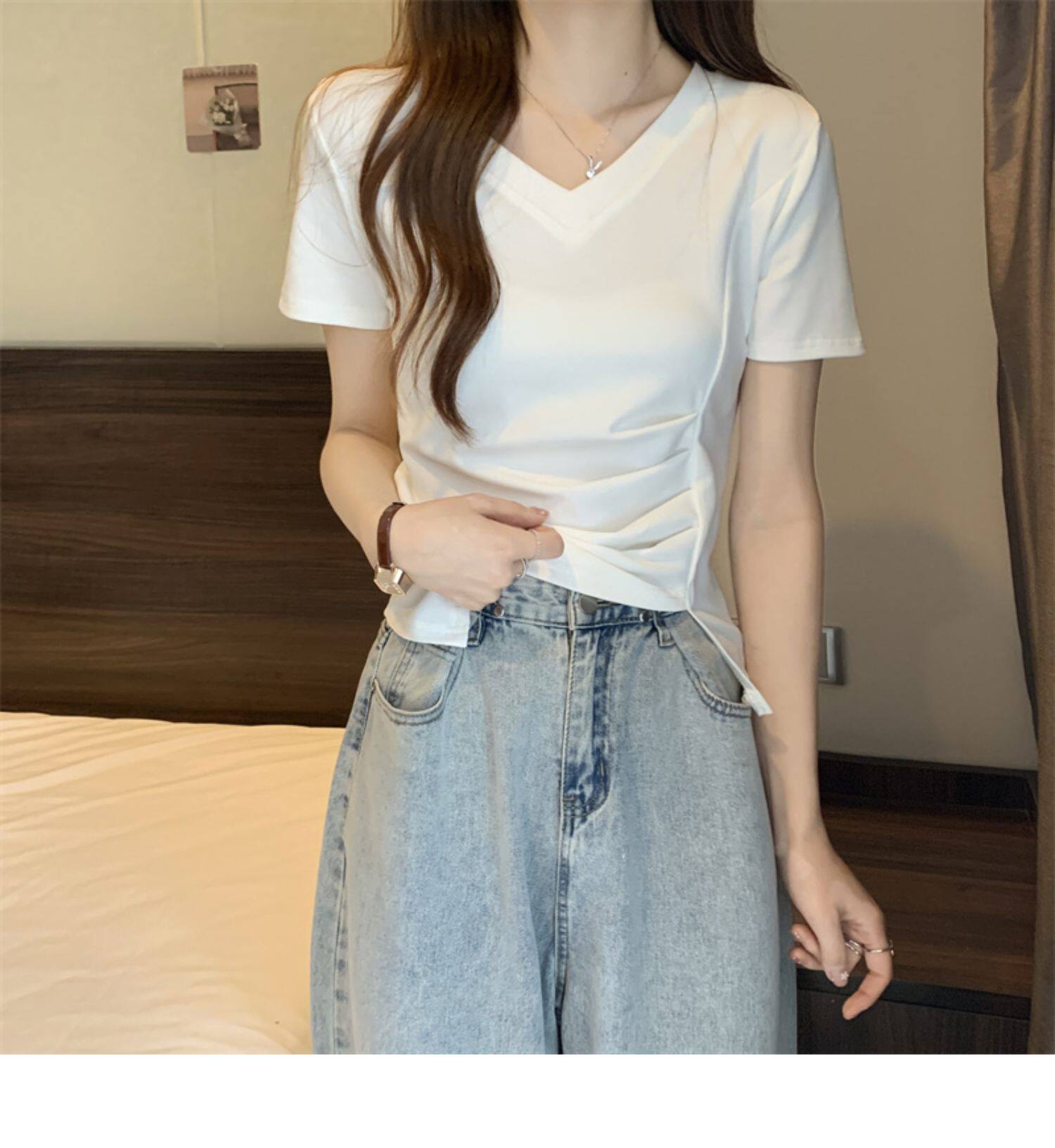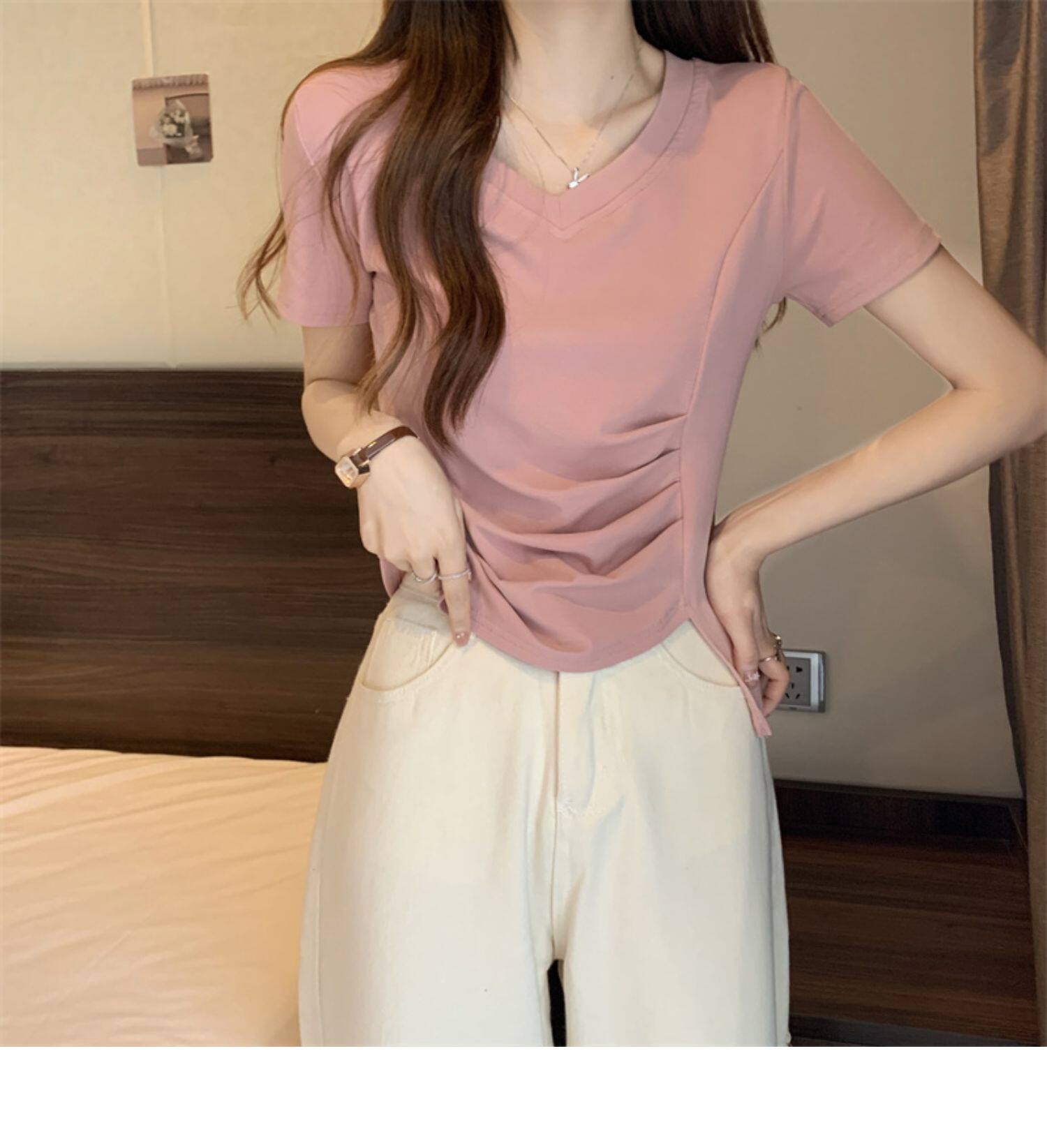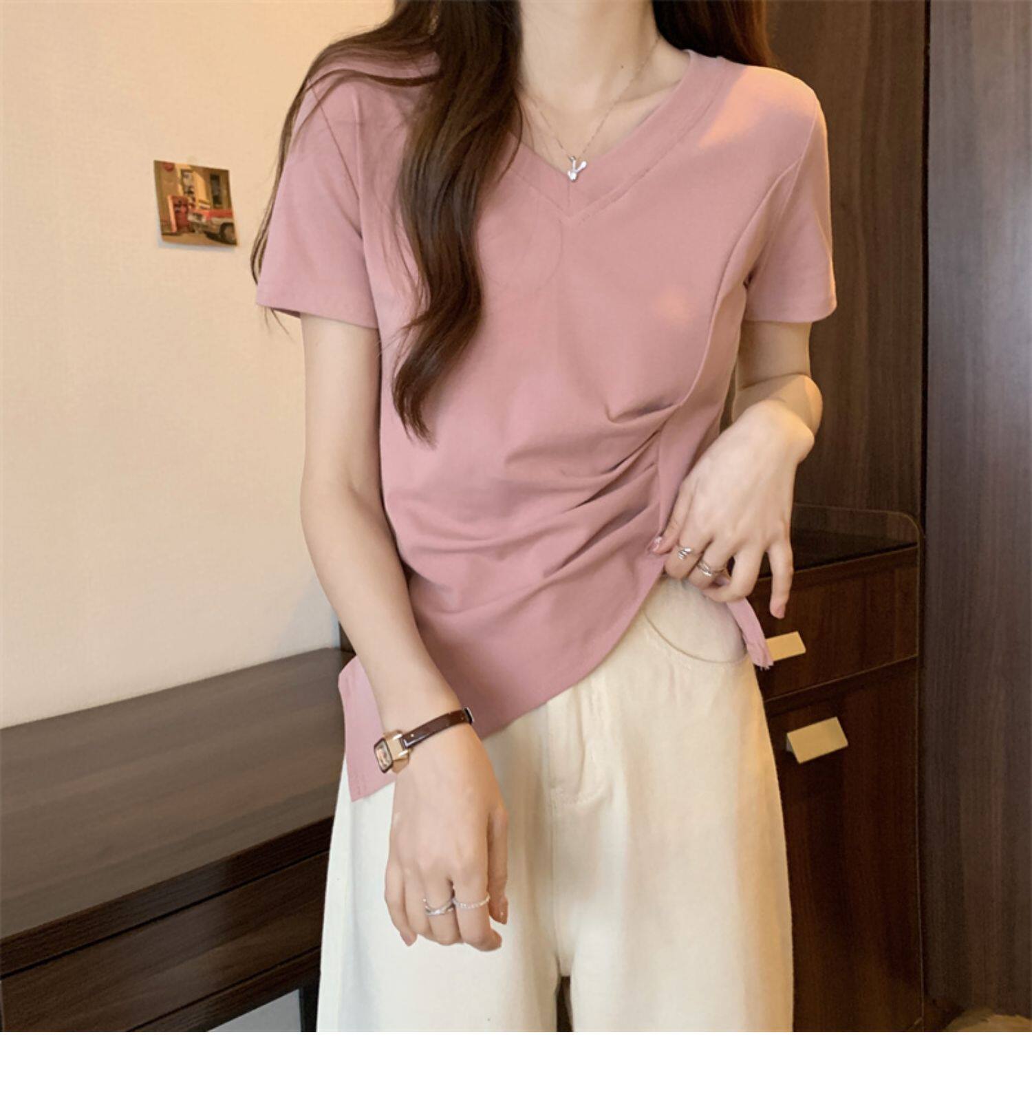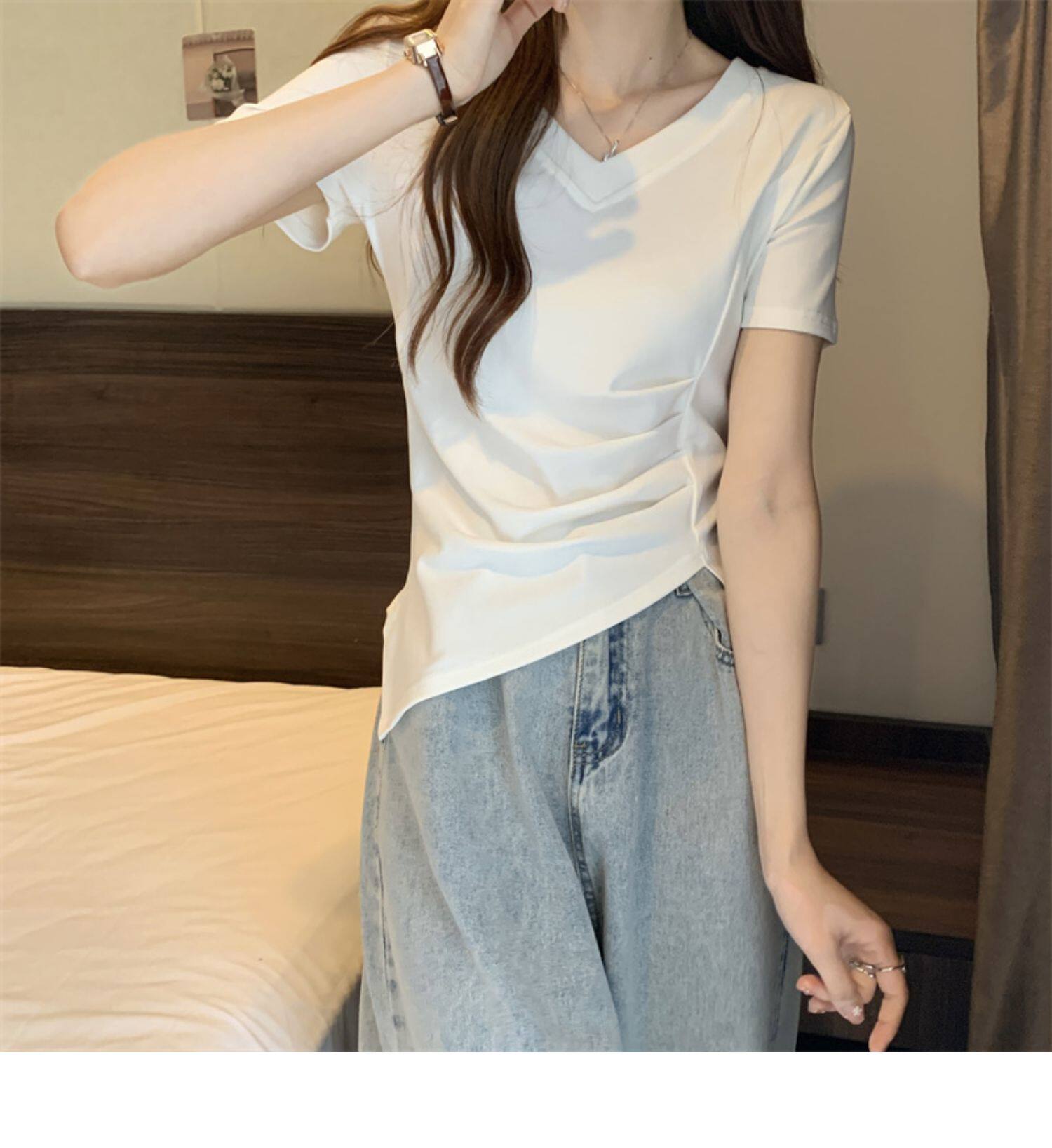 Дизайнерская футболка с коротким рукавом, большой размер, тренд сезона, V-образный вырез
