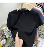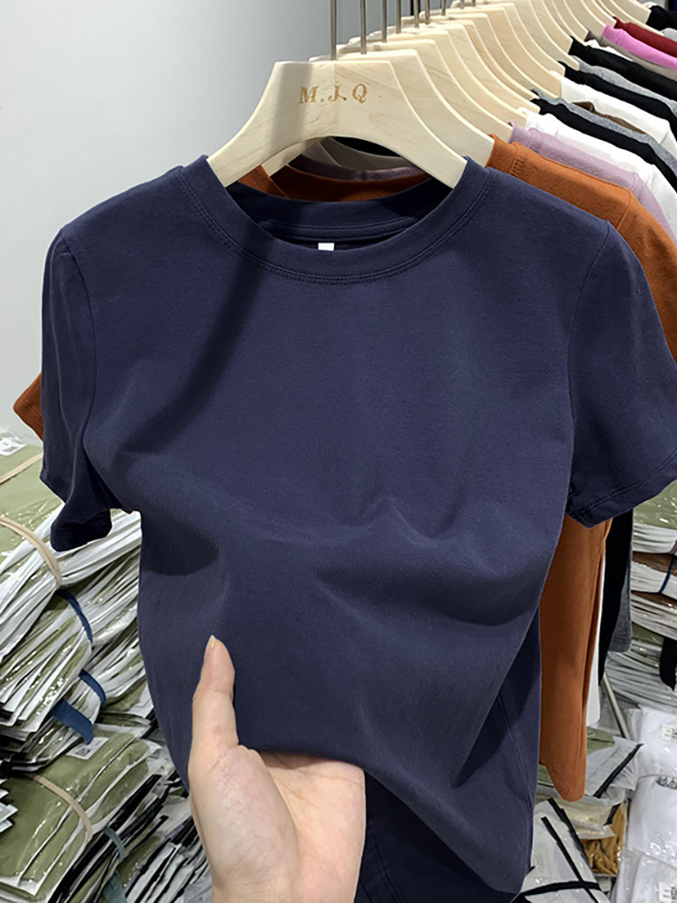 Весенняя летняя хлопковая базовая приятная телу футболка с коротким рукавом, оверсайз
