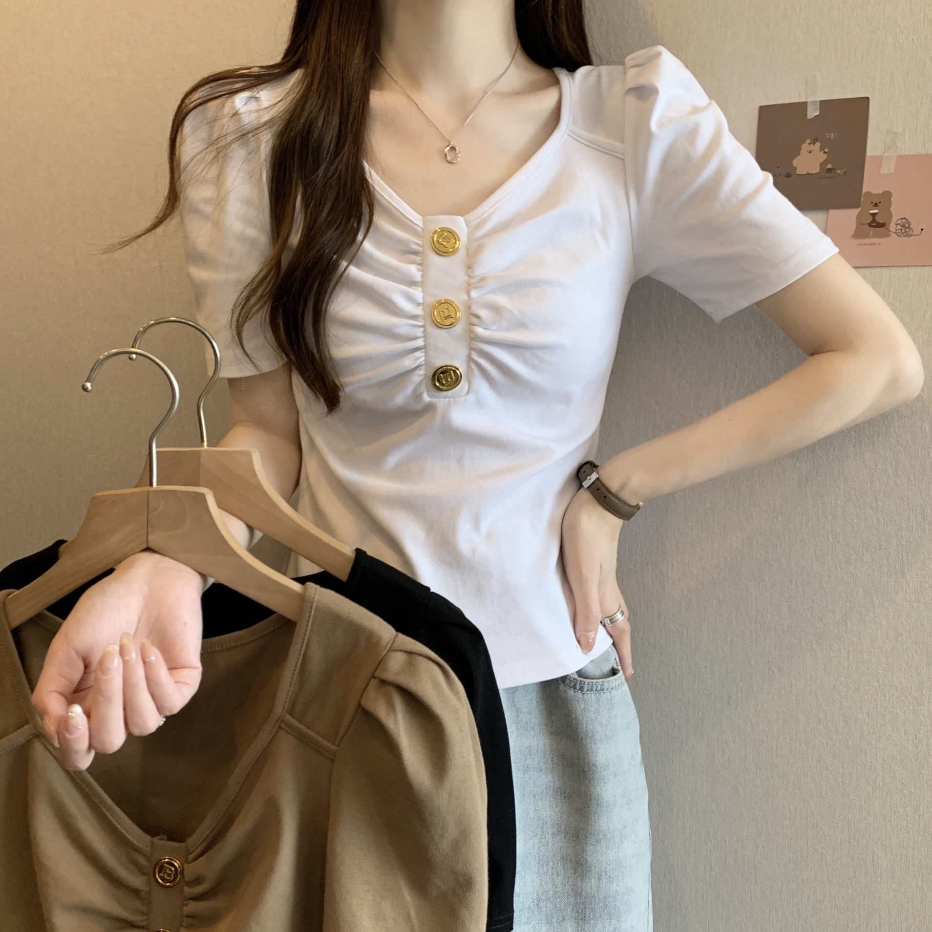 Летняя небольшая дизайнерская футболка, большой размер, тренд сезона, рукава фонарики