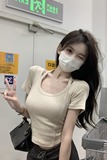 Абрикосовая летняя короткая футболка с коротким рукавом, облегающий крой