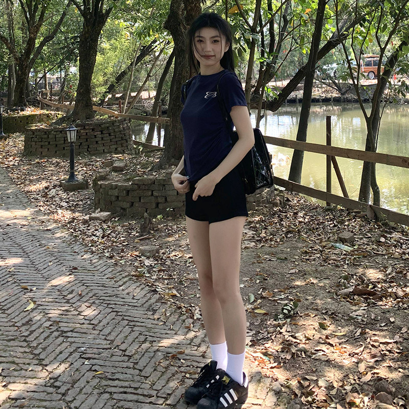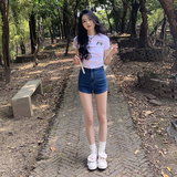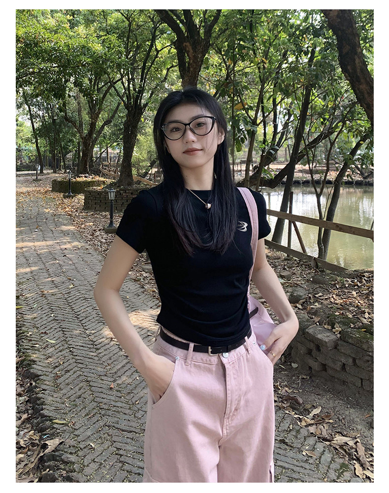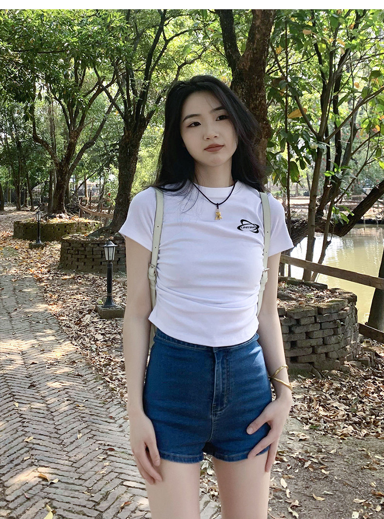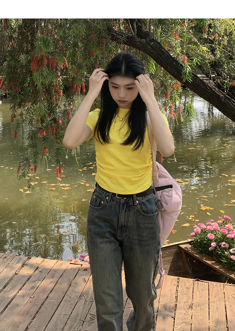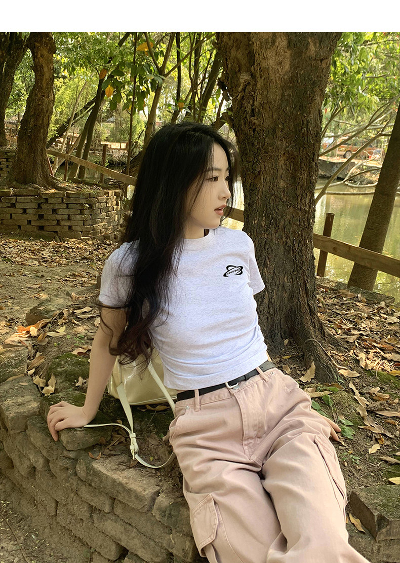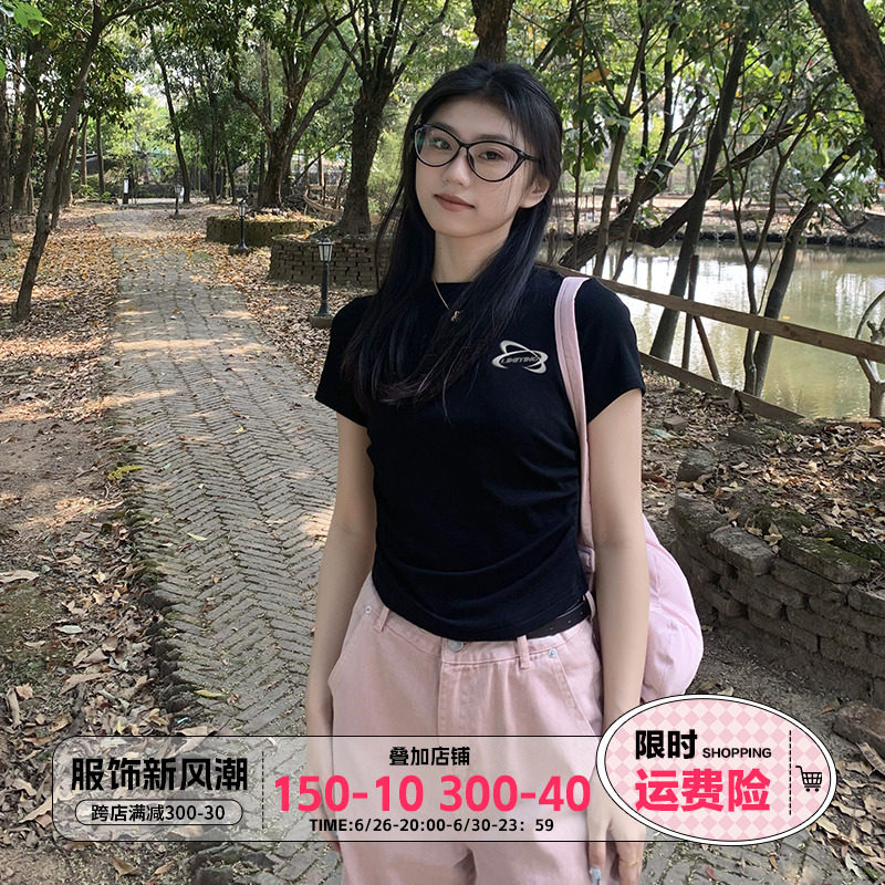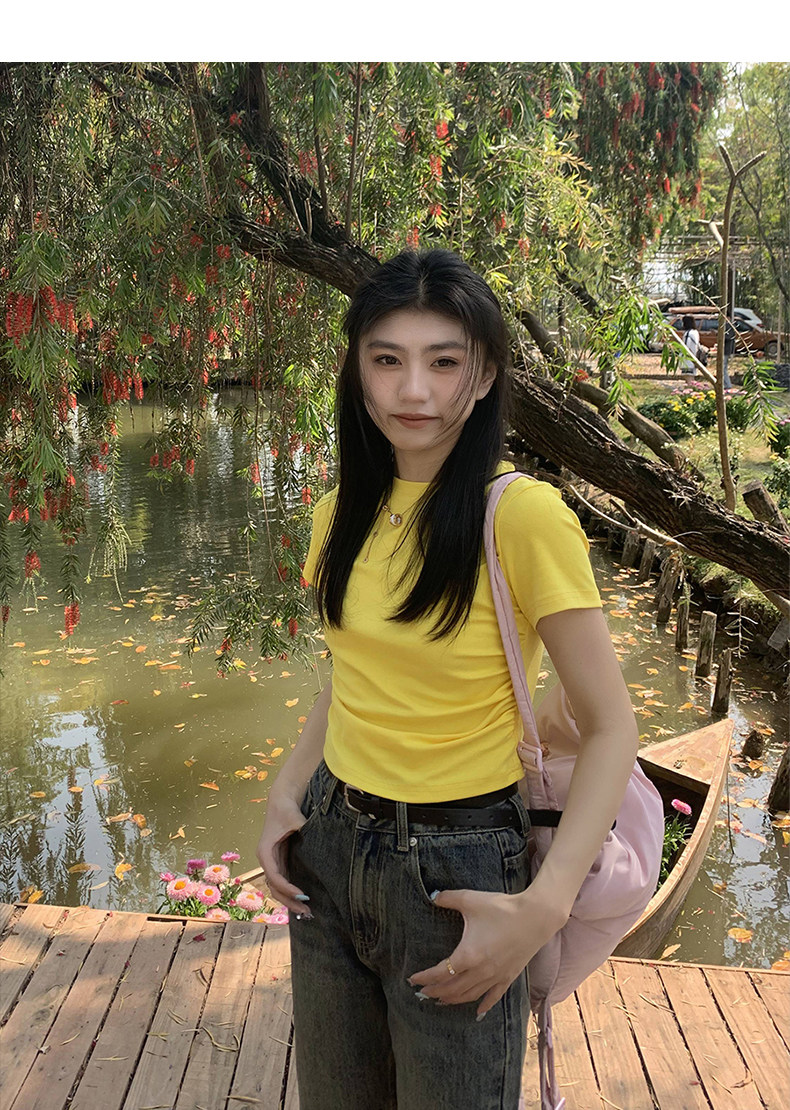 [Распродажа] Где апельсиновое дерево, короткая футболка с открытыми плечами для девочек, женский летний тонкий топ с круглым вырезом и короткими рукавами