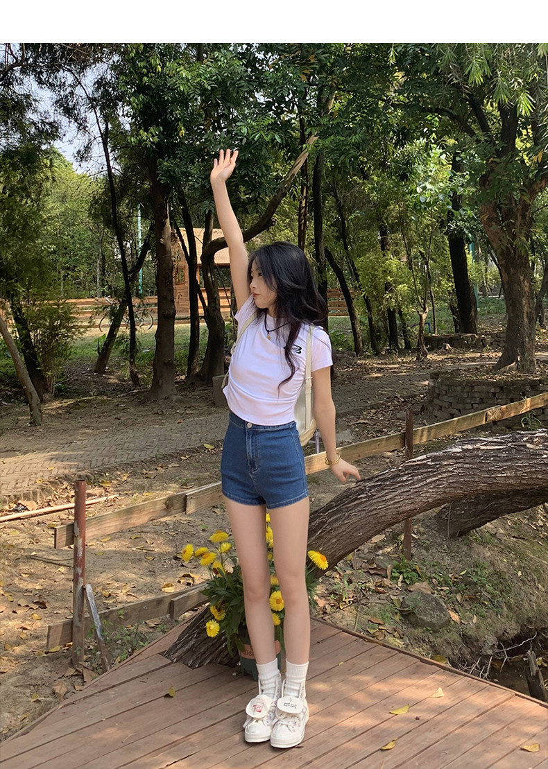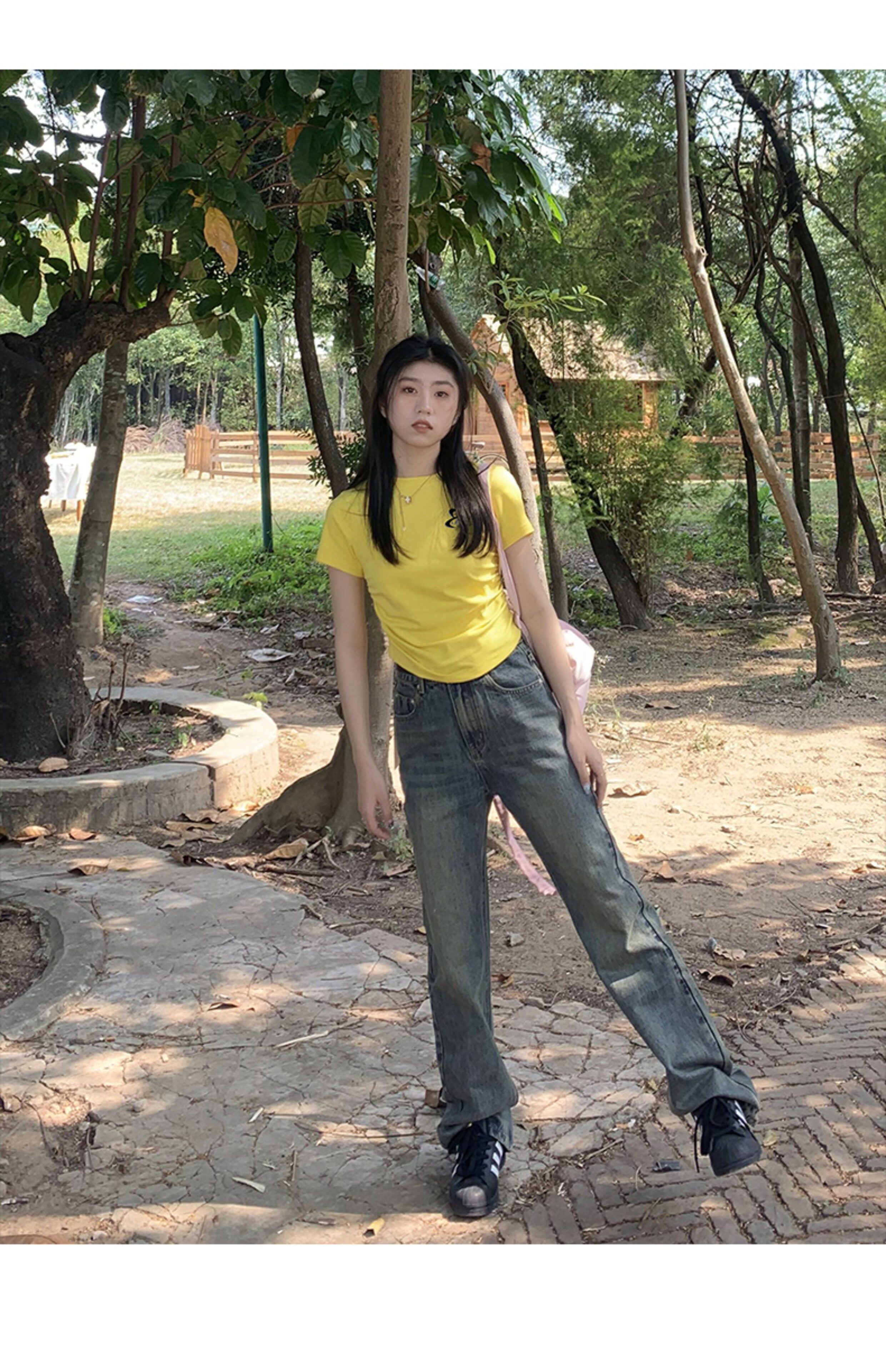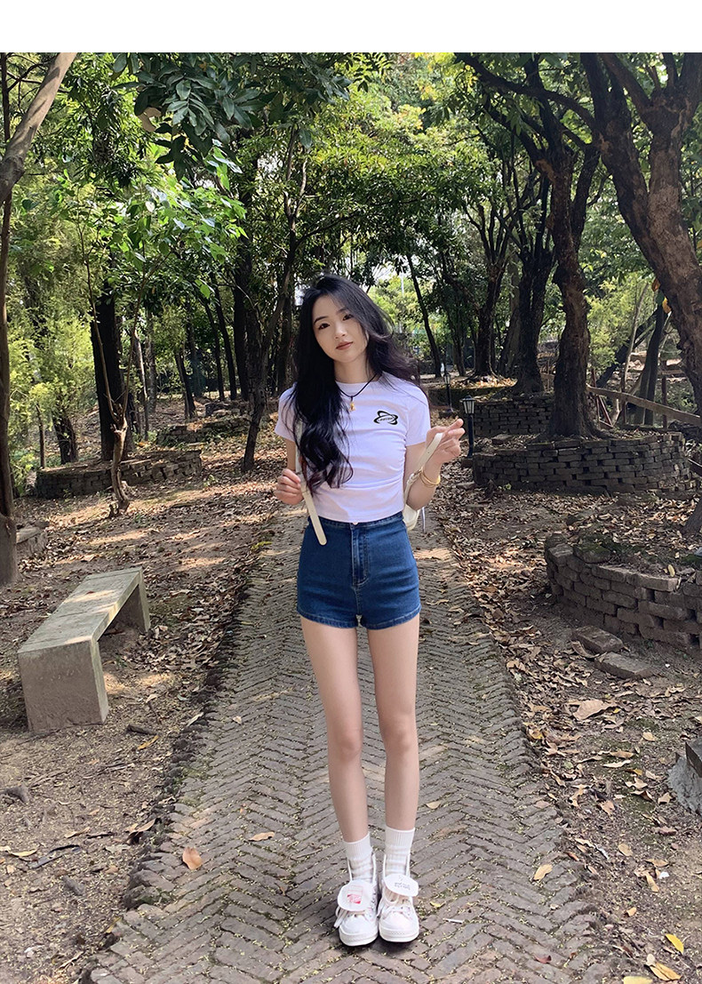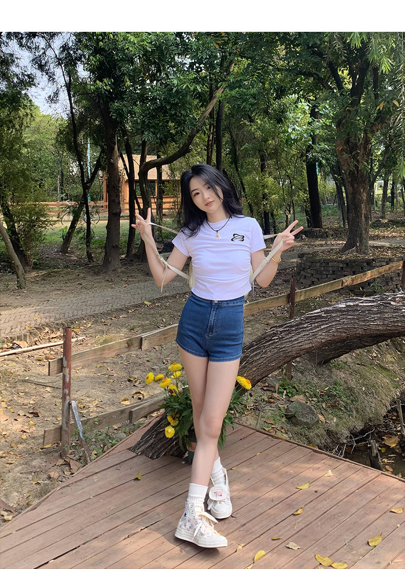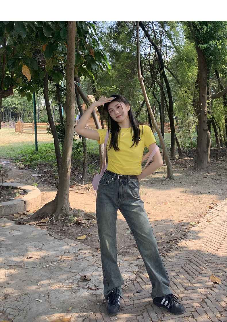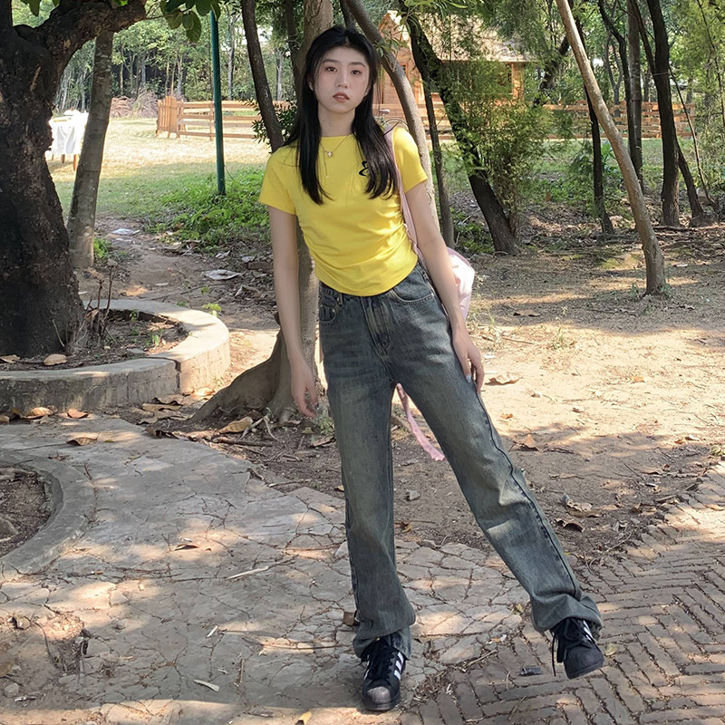 [Распродажа] Где апельсиновое дерево, короткая футболка с открытыми плечами для девочек, женский летний тонкий топ с круглым вырезом и короткими рукавами