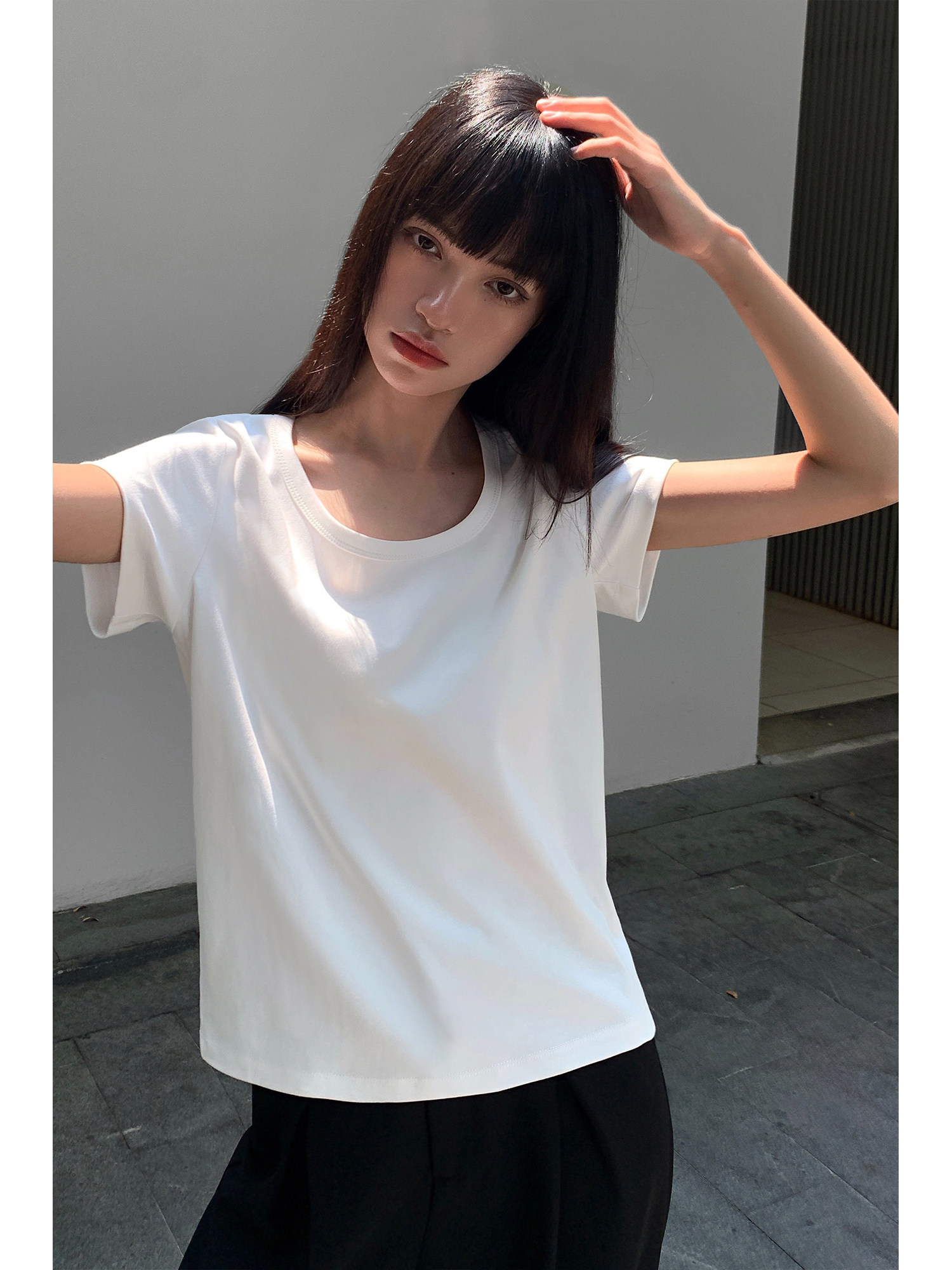 Белая летняя хлопковая футболка, свободный крой, в корейском стиле