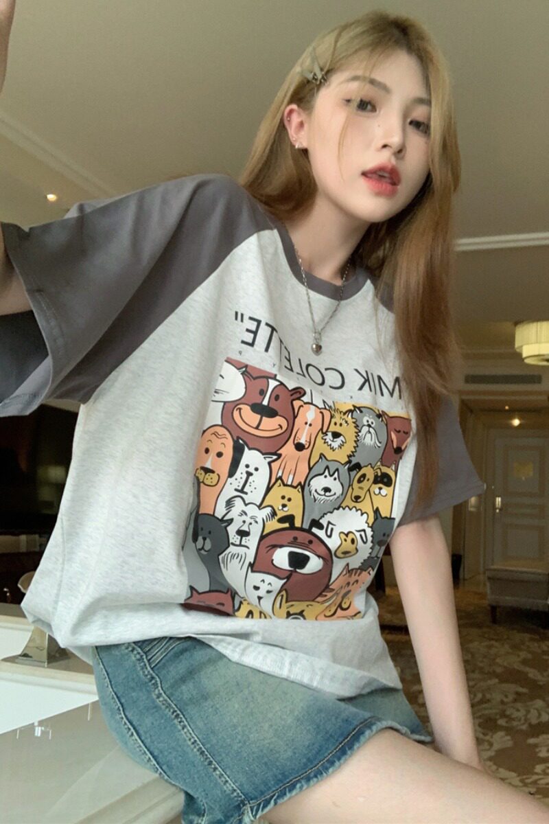 Летняя приятная телу футболка с круглым воротником для отдыха, свободный крой, в западном стиле