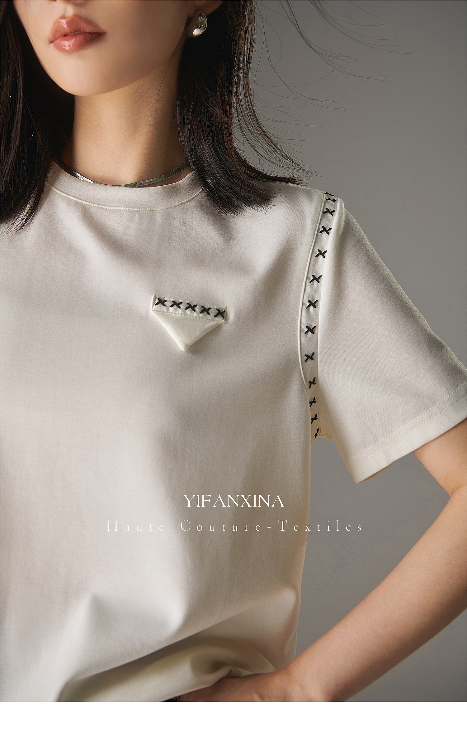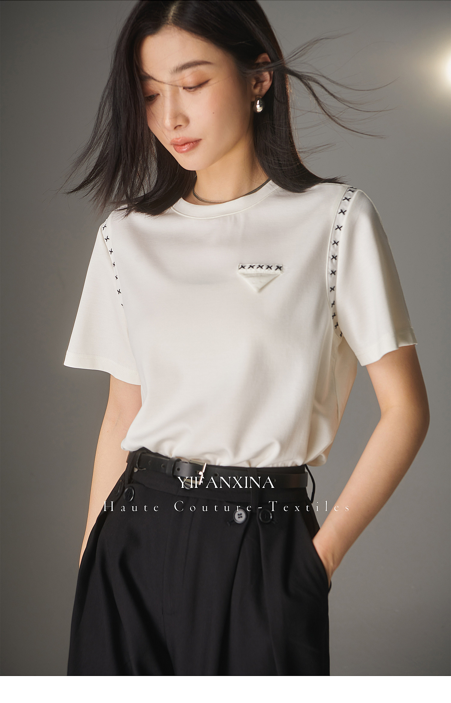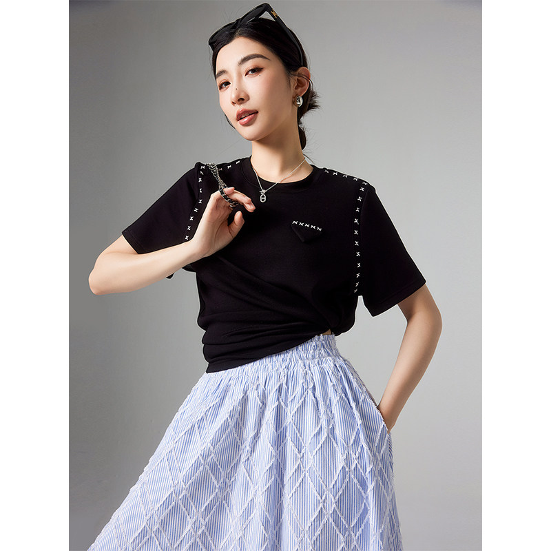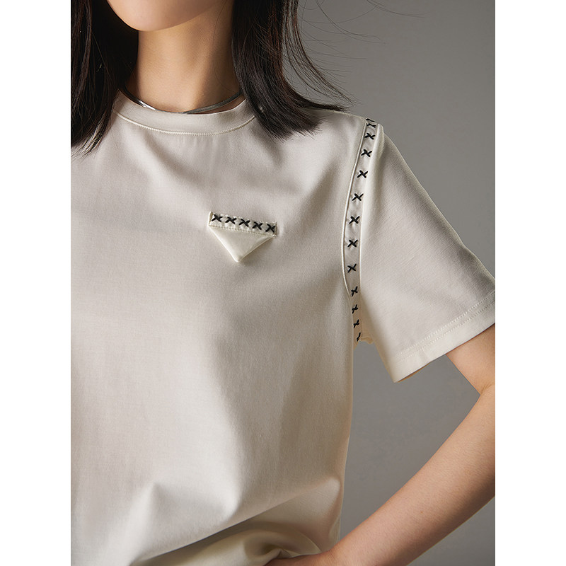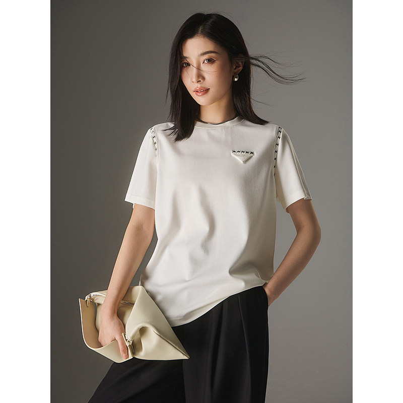 Белая летняя дизайнерская футболка с круглым воротником, короткий рукав