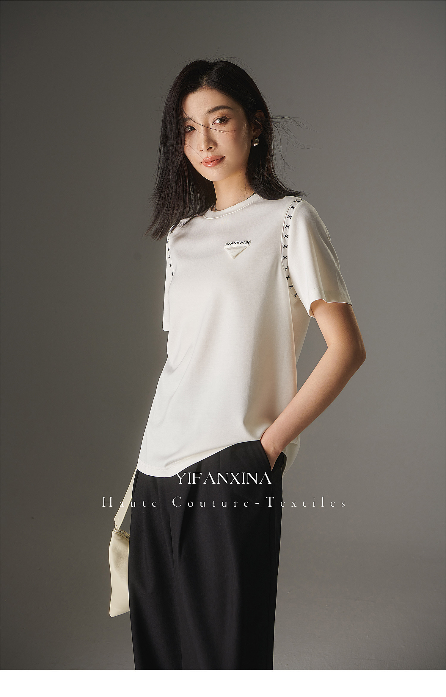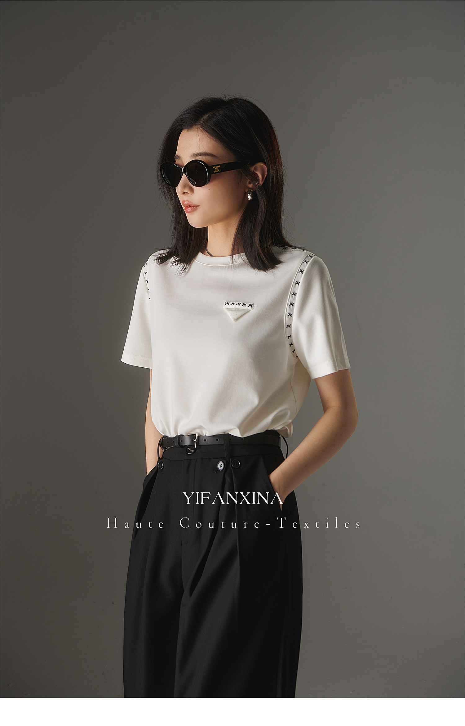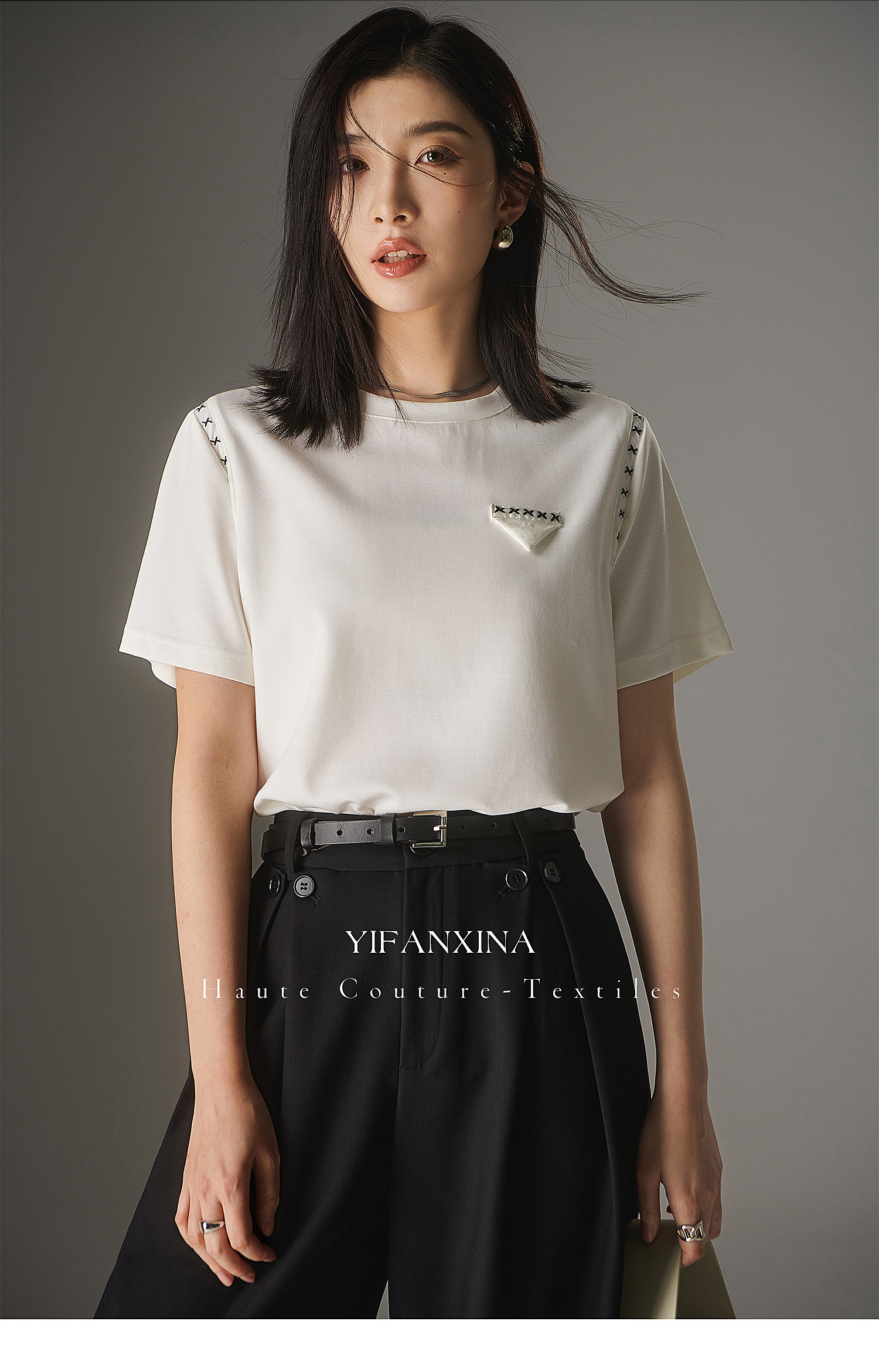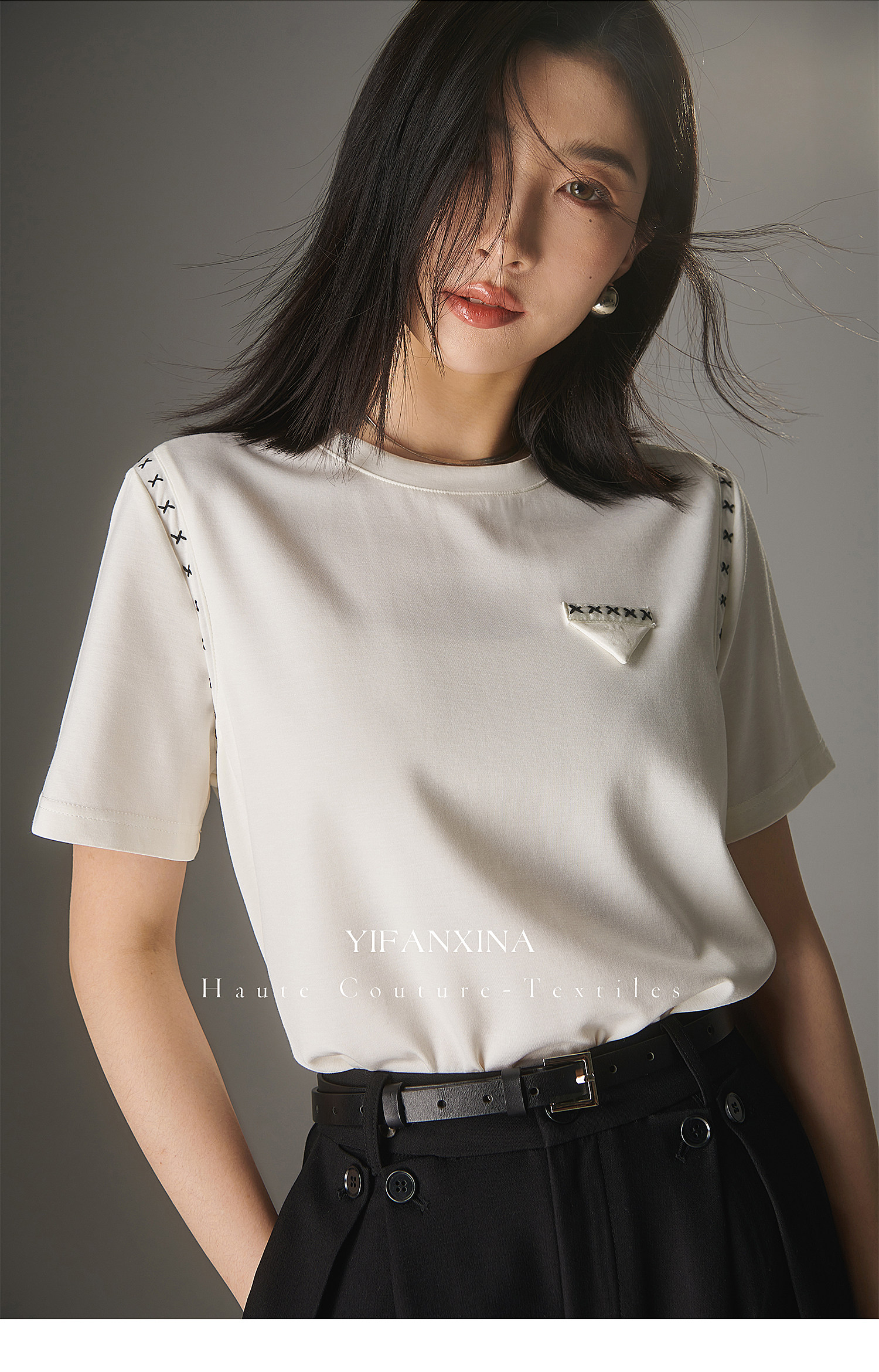 Белая летняя дизайнерская футболка с круглым воротником, короткий рукав