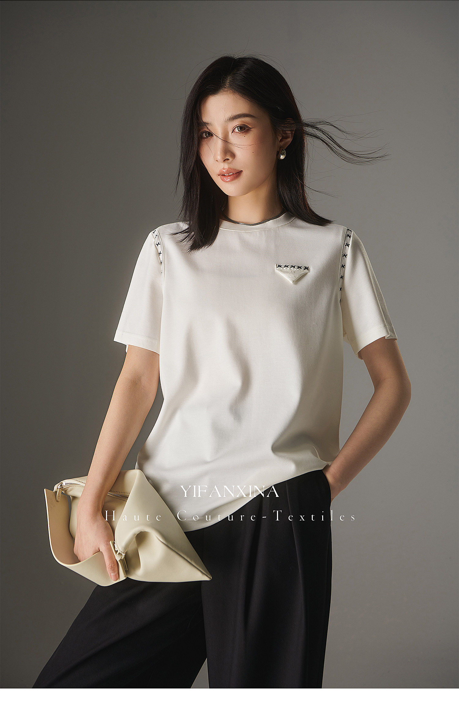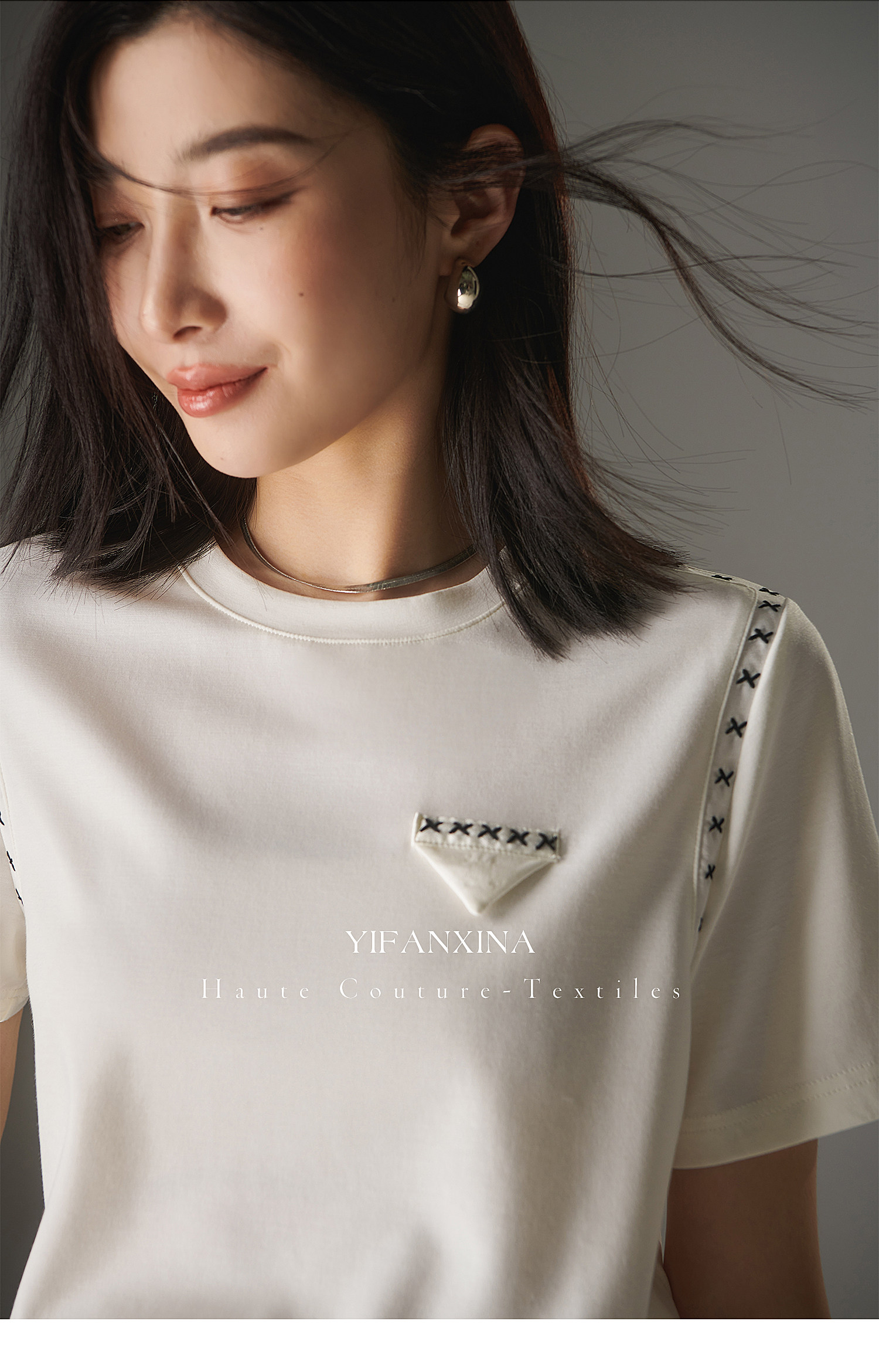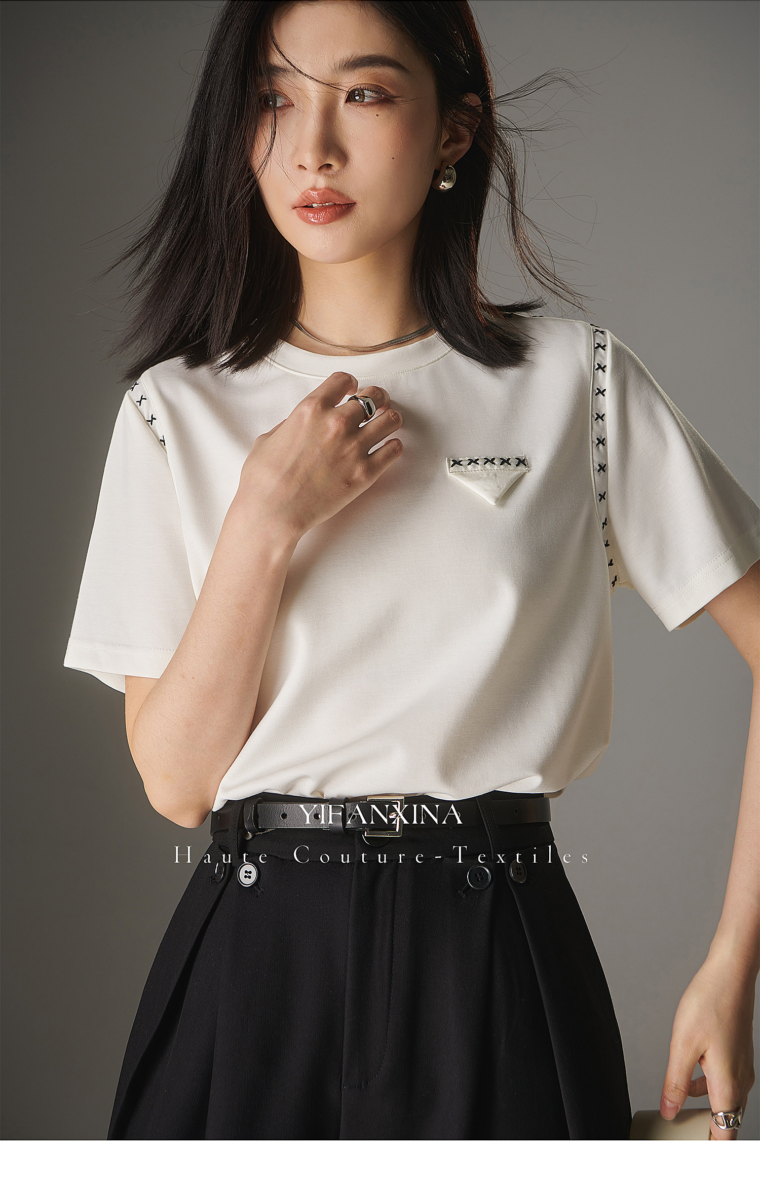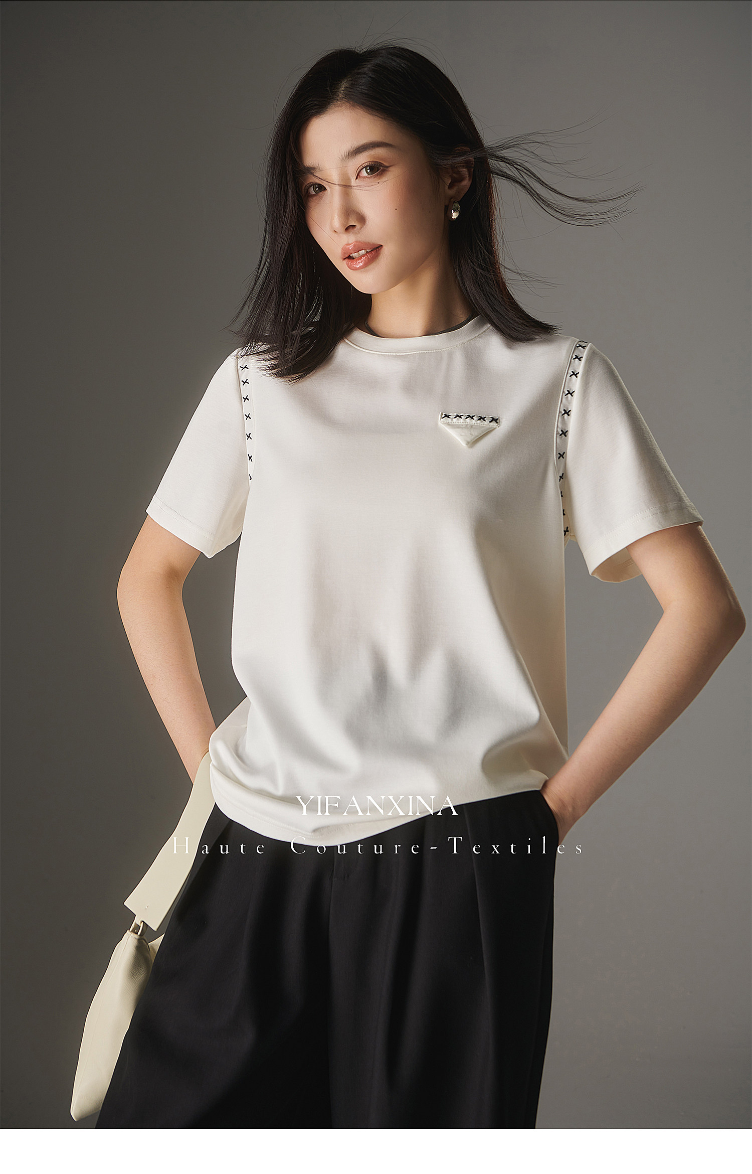 Белая летняя дизайнерская футболка с круглым воротником, короткий рукав