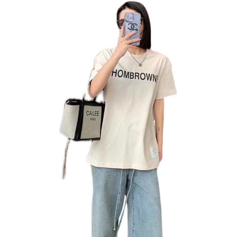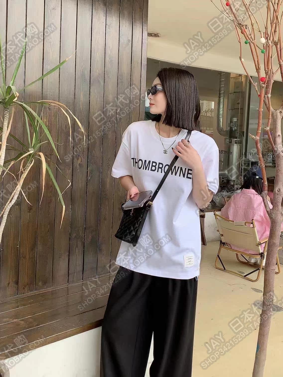 Thom Browne Японская летняя футболка с круглым воротником подходит для мужчин и женщин, с печатью вашего логотипа, короткий рукав