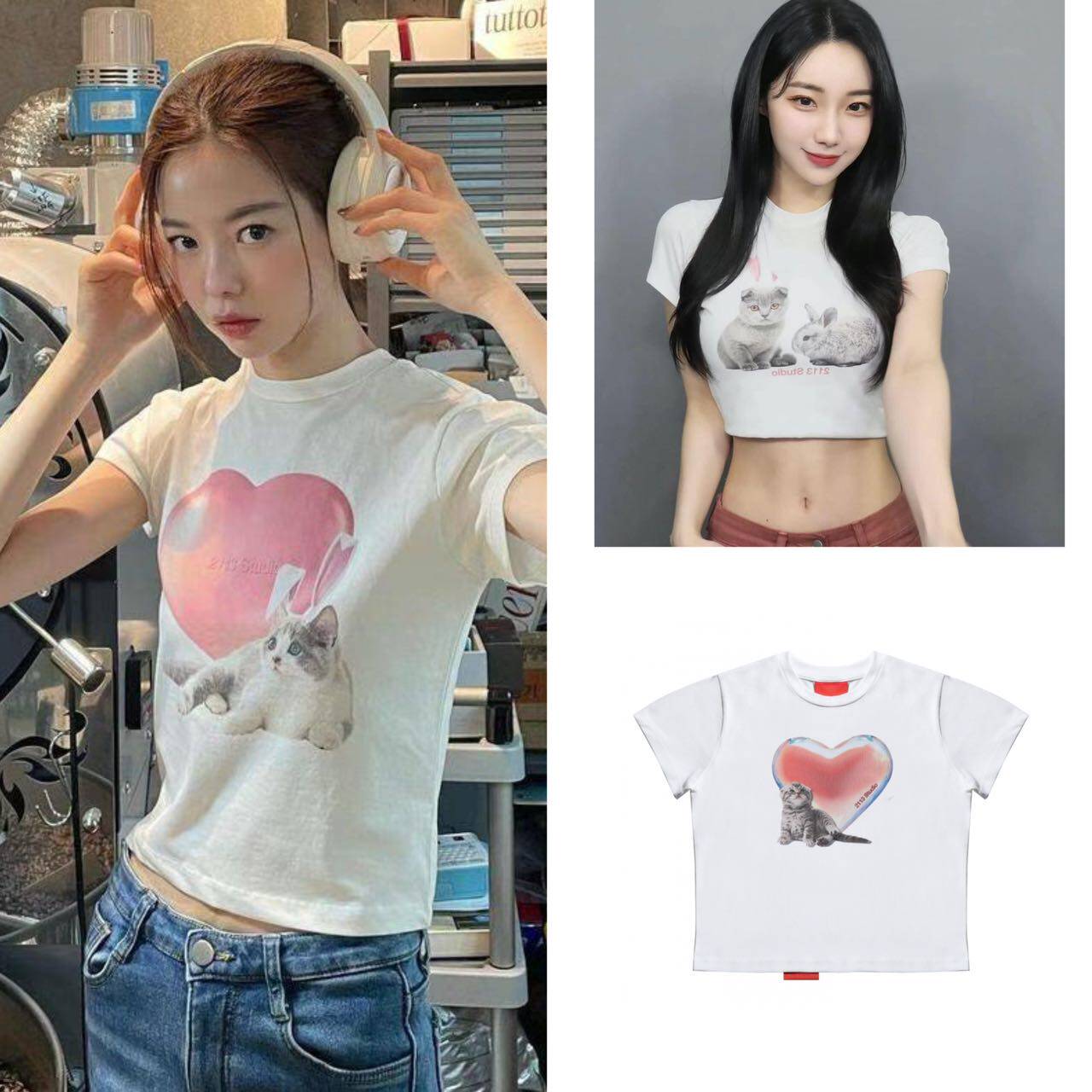 【Скидка Специальная цена】 Стандартная корейская столовая подлинная покупка 2113Studio Летняя футболка с половинами