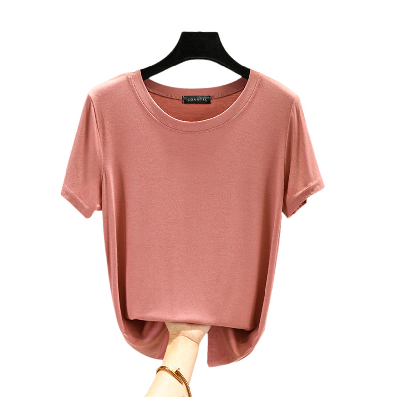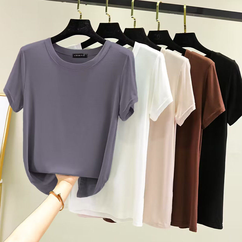 Тонкая базовая приятная телу цветная футболка с коротким рукавом, большой размер