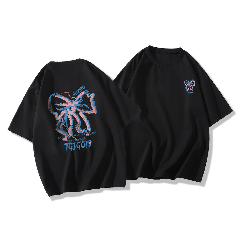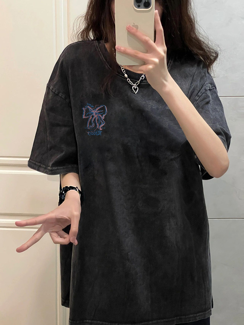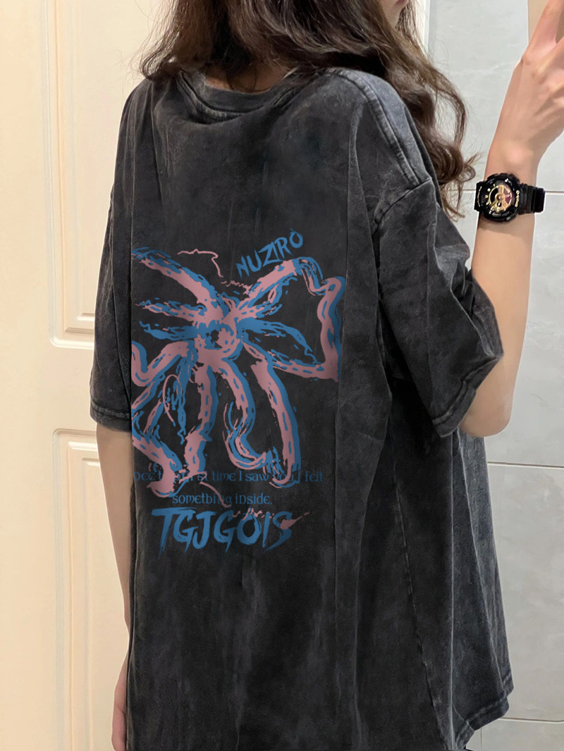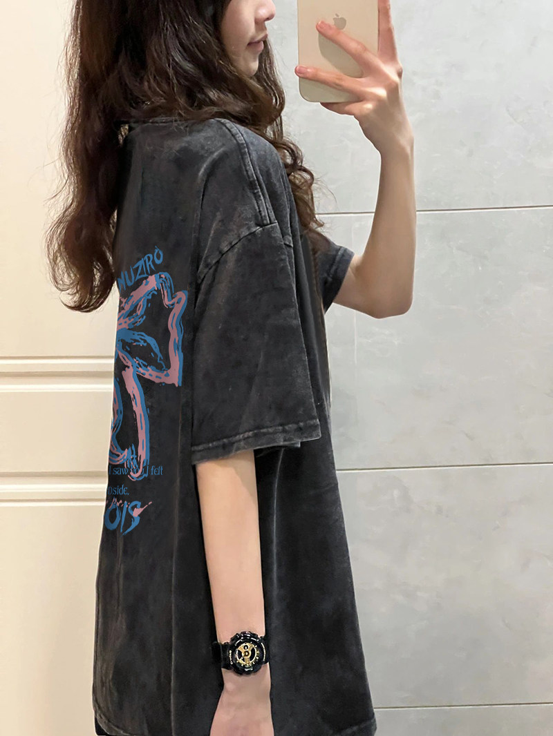 Хлопковая ретро футболка с коротким рукавом в стиле хип-хоп, в американском стиле, оверсайз