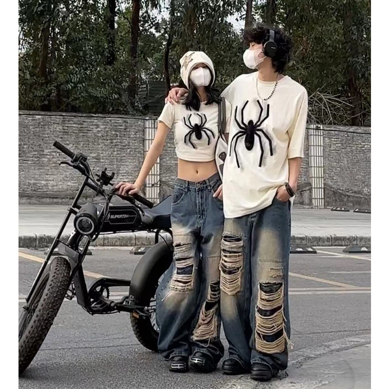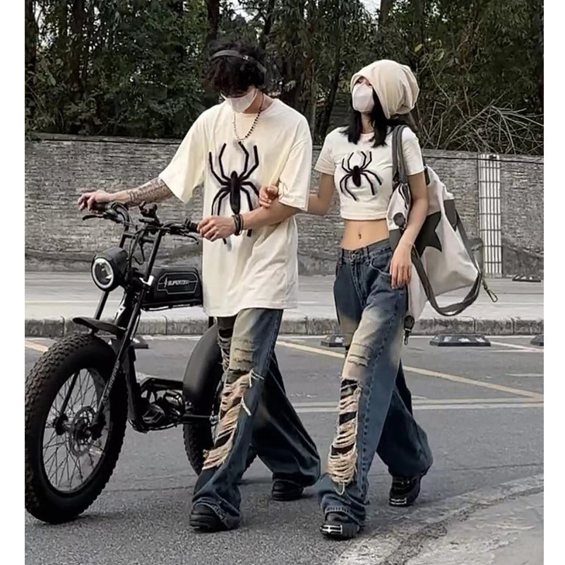 Ретро парная одежда, летняя короткая футболка с коротким рукавом, этнический стиль, в американском стиле, для влюбленных