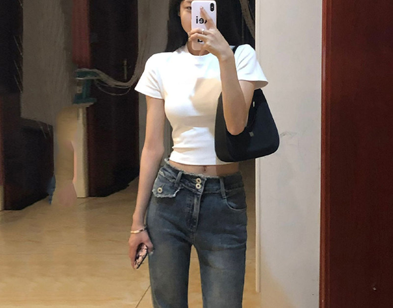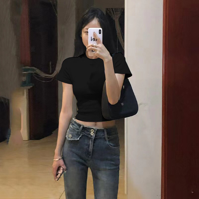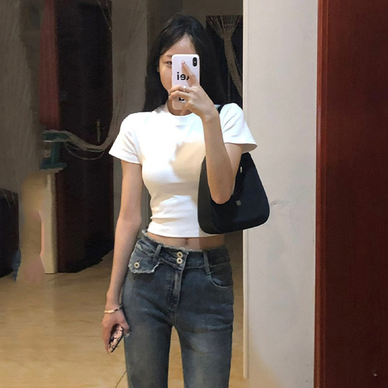 Сексуальная летняя приталенная белая футболка с коротким рукавом, в американском стиле, высокая талия, 2025 года