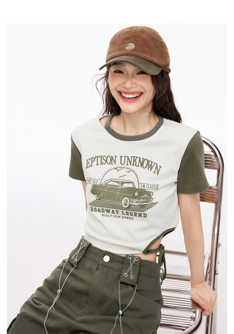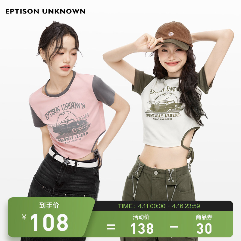 [Ограниченное время и ограниченное количество] eptisont короткая рубашка для рубашки женская ретро короткая горячая девушка Slim Print Top Top