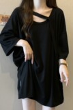 Черная летняя длинная футболка, большой размер, средней длины