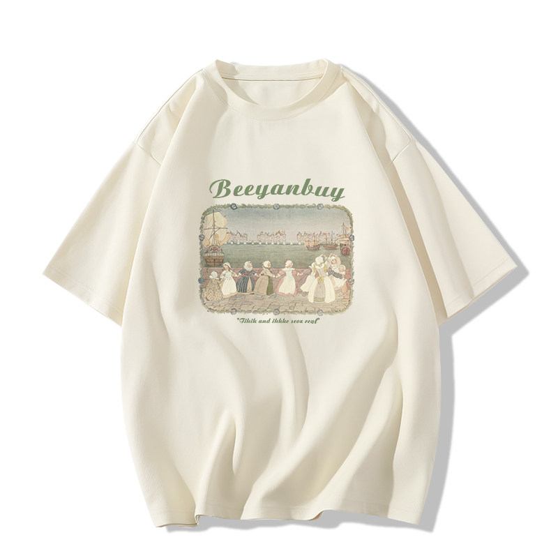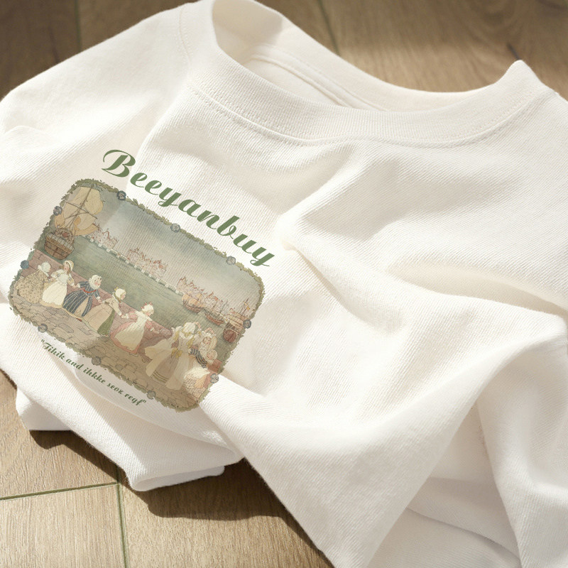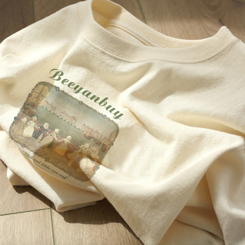 Хлопковая летняя дизайнерская ретро футболка с коротким рукавом, тренд сезона, свободный крой