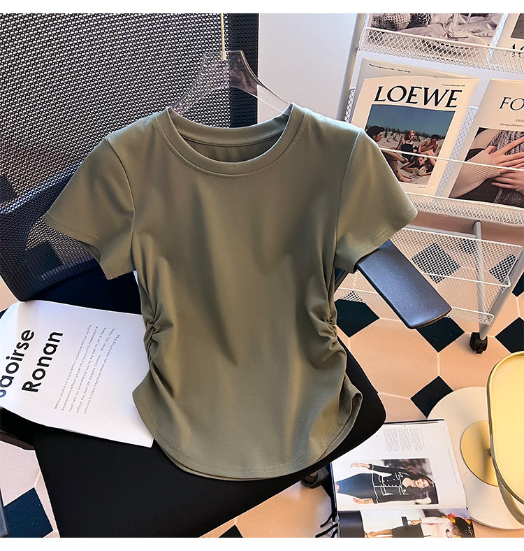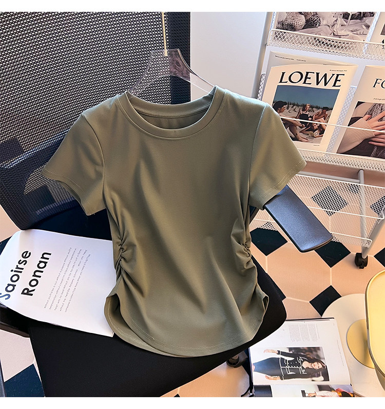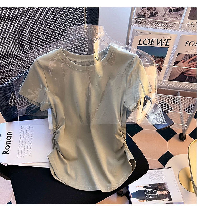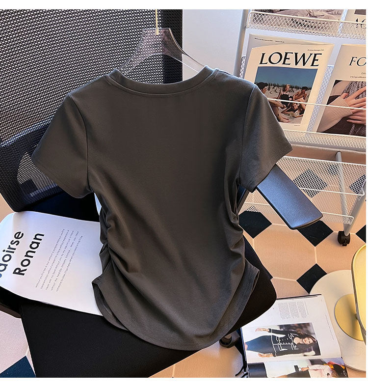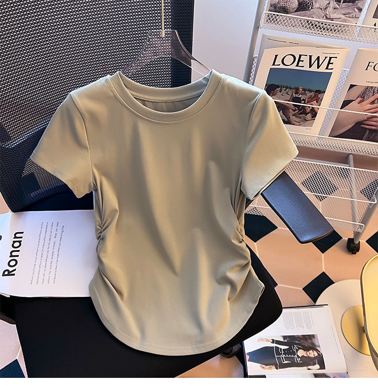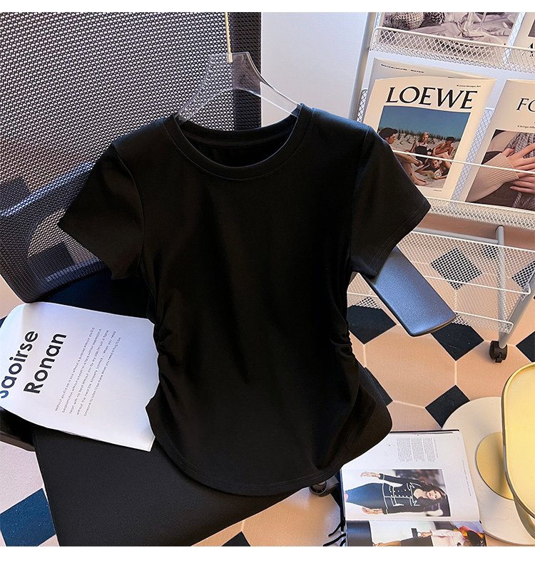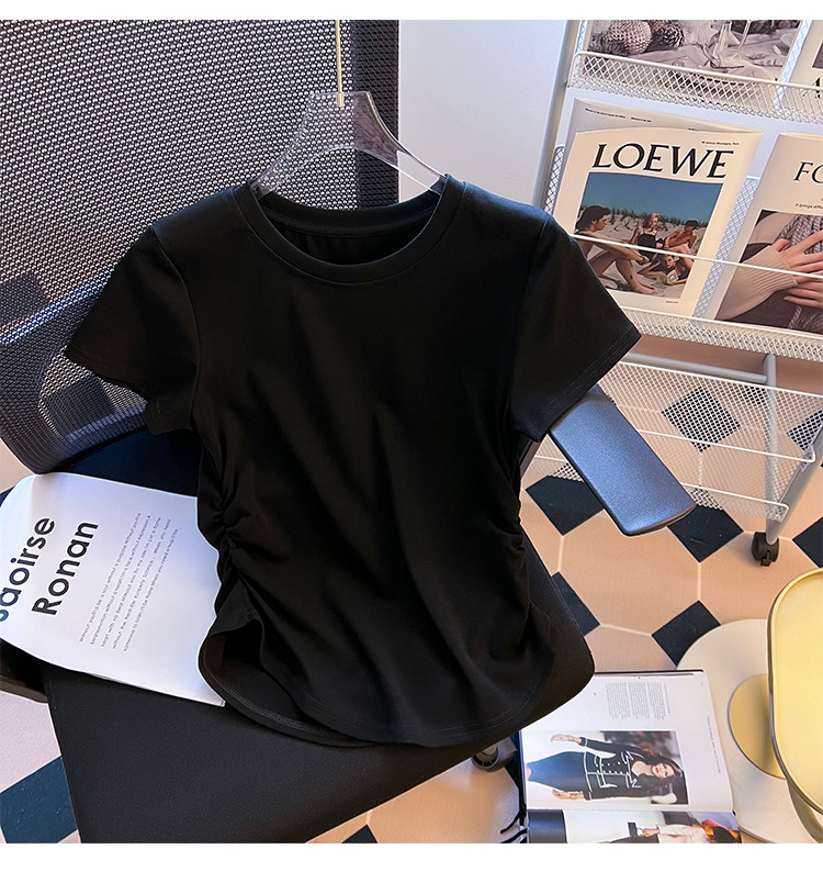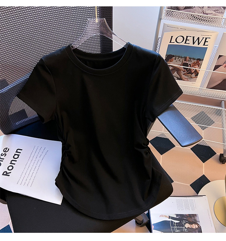 Хлопковая летняя дизайнерская футболка с коротким рукавом, изогнутый корсет, тренд сезона